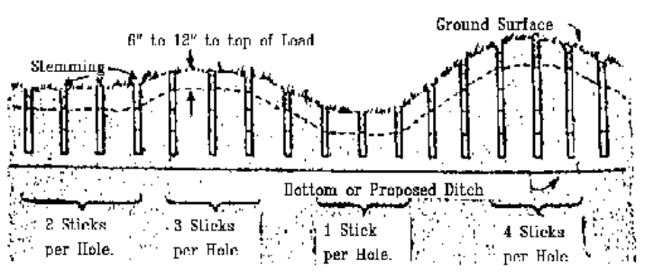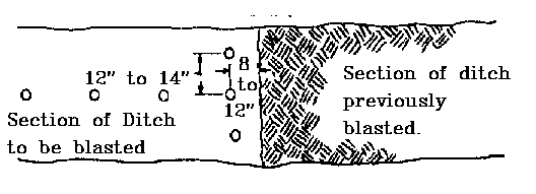 Each row of charges should throw a considerable amount of material from the excavation. The remainder