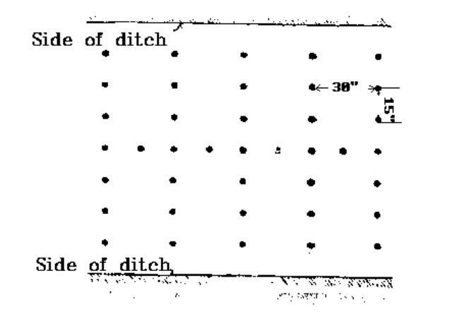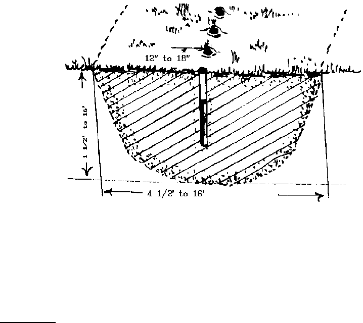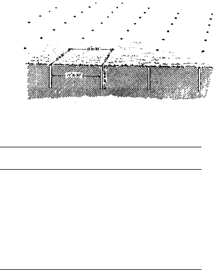 excavation six feet deep in the average clay soil, holes would be spaced about four feet apart in a row, and