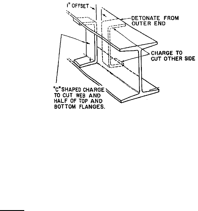 reinforced concrete beams and columns, may be demolished by placing breaching charges inside the