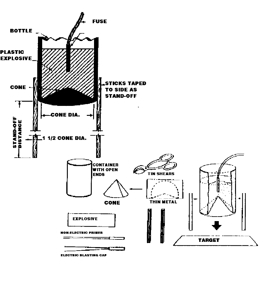 Smaller masonry or concrete buildings may be destroyed by “Breaching Charges” placed on the inside