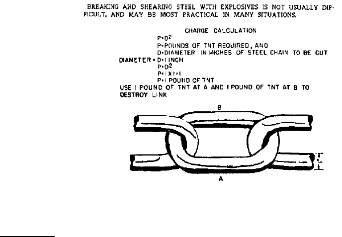 several kinds of steel and timber-cutting charges. A table showing charges for breaching concrete and