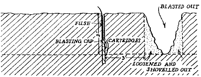 can save much labor and time. Excavating in rock is a little more difficult, and requires drilling