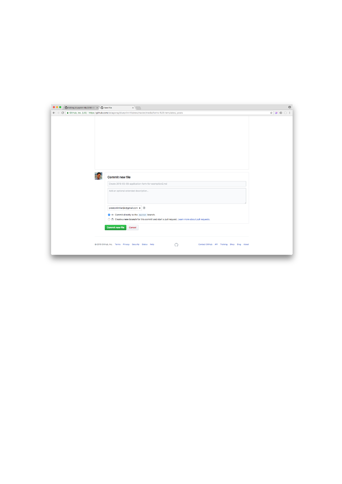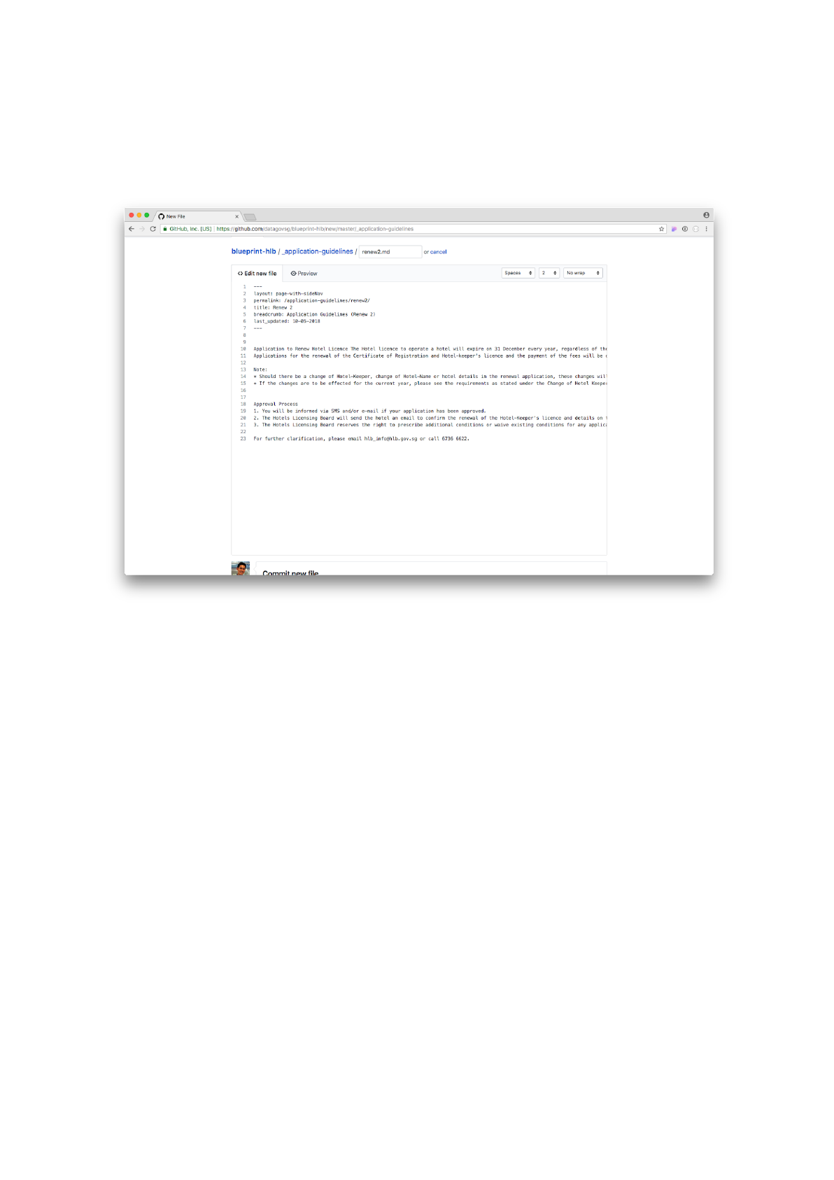 Scroll down and click on the Commit new file button to save your post.