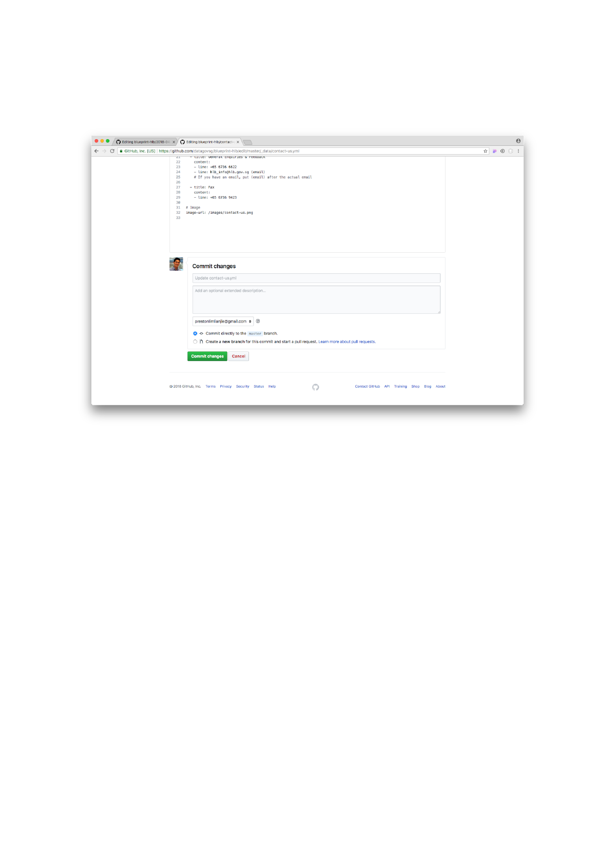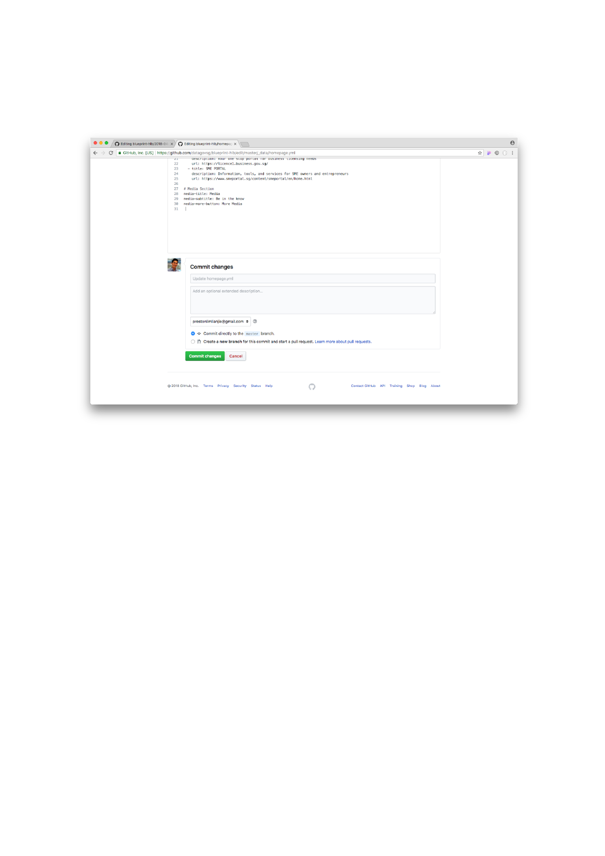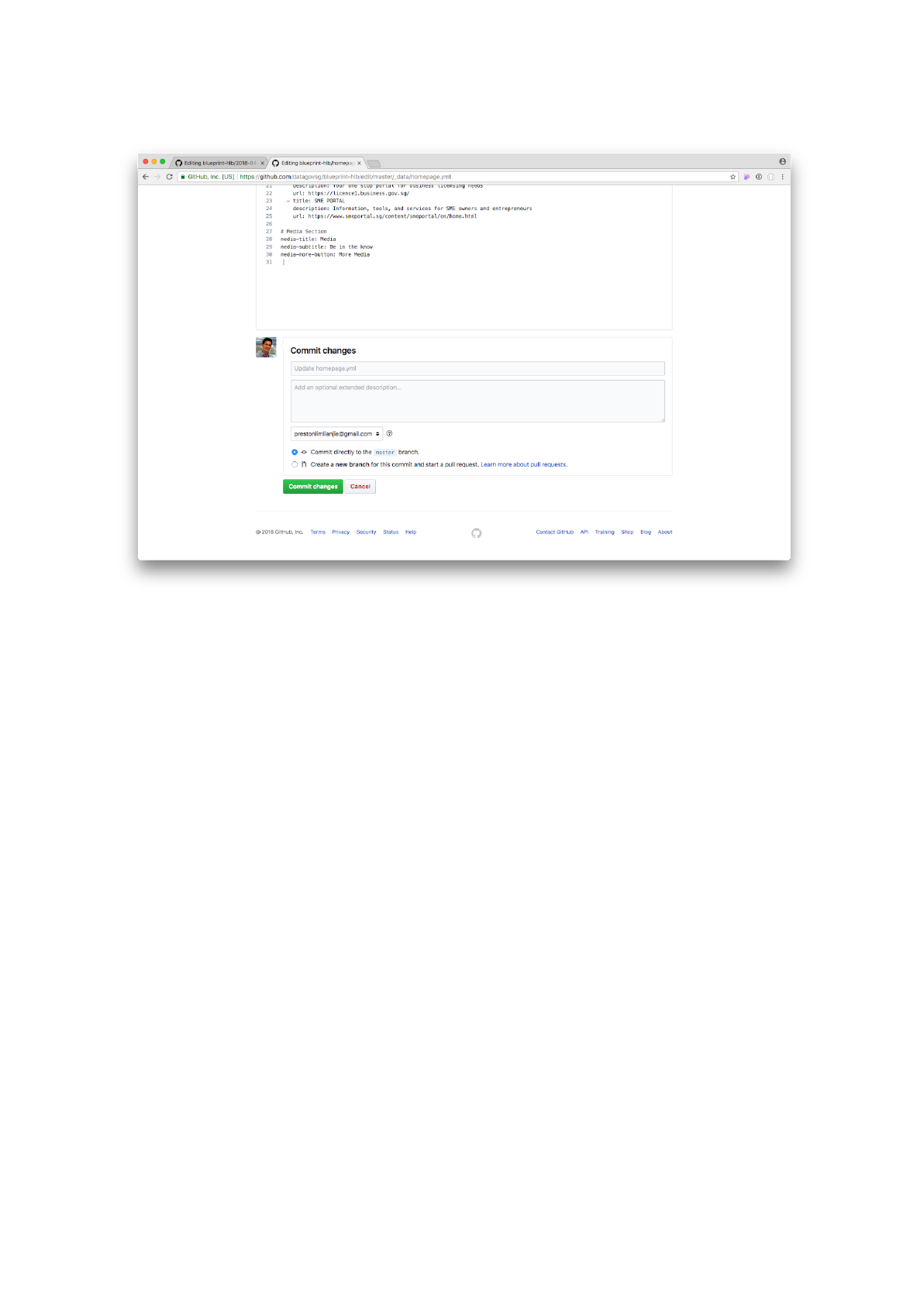 on the Commit changes button to save the file.