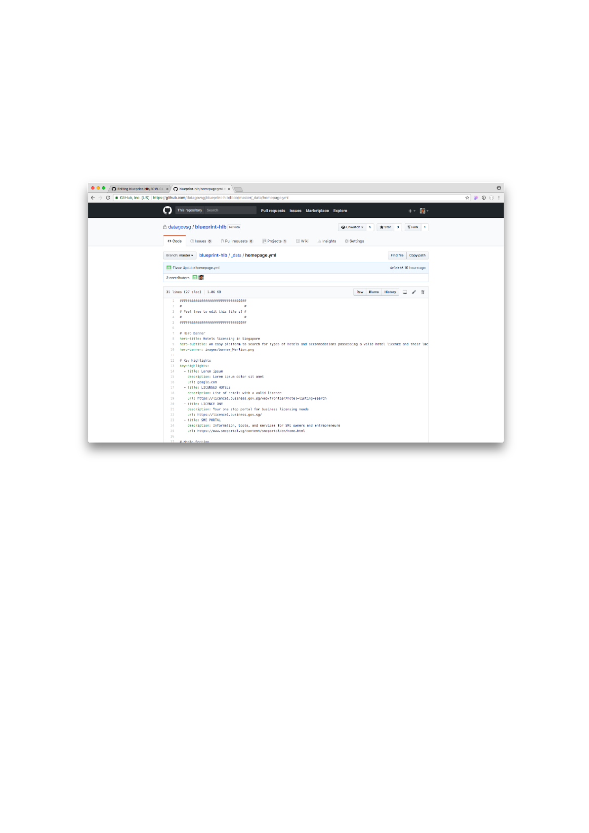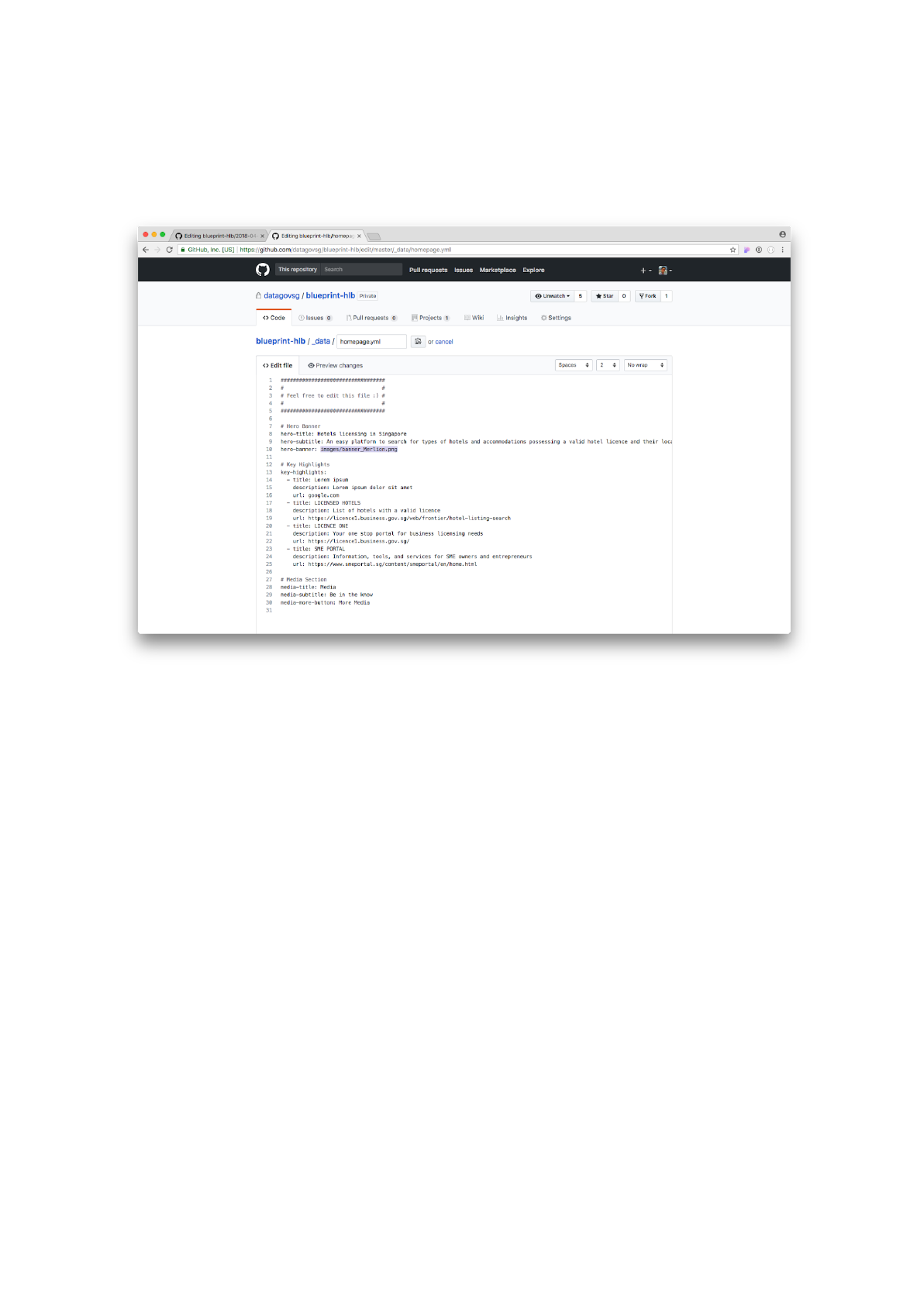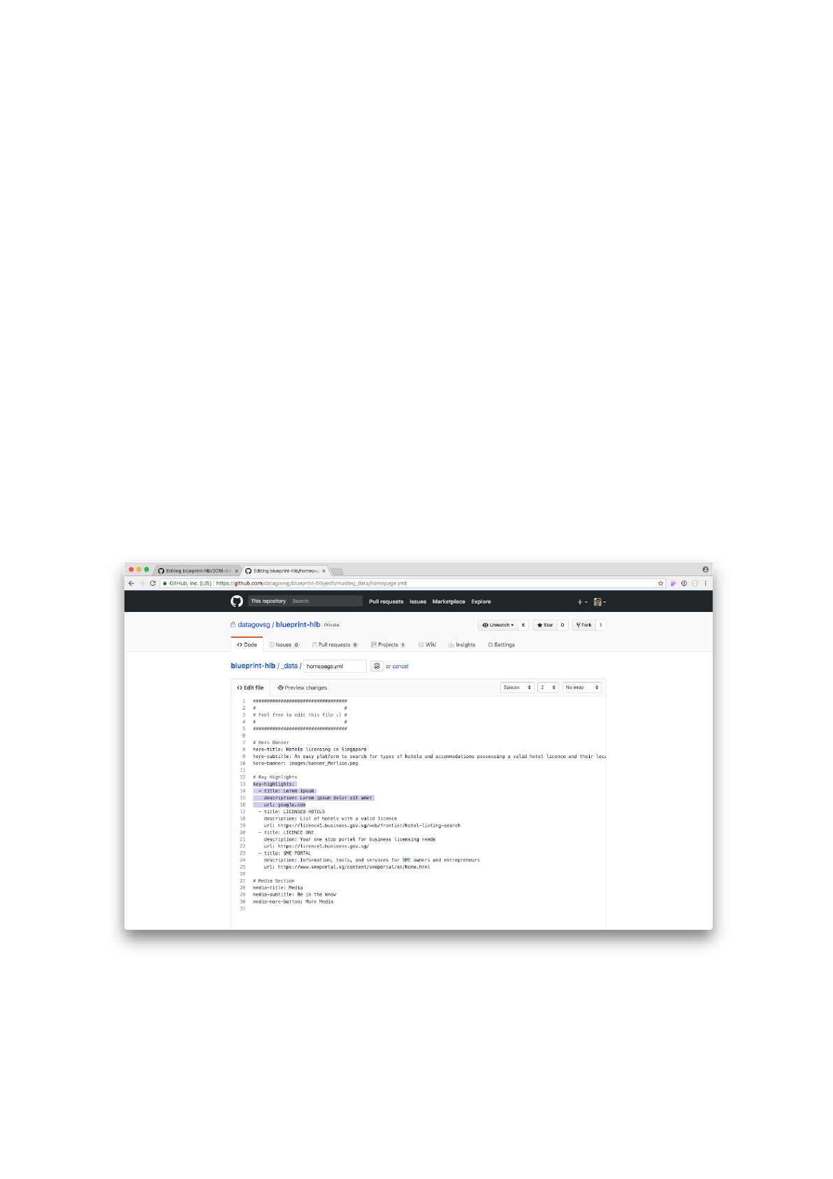 Step 1: Go back to editing the _data/homepage.yml file. Replace the