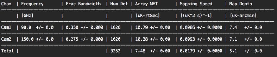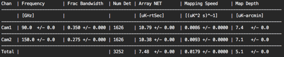 mappingSpeed.py.BoloCalc comes with an example experiment that can be used to get started: