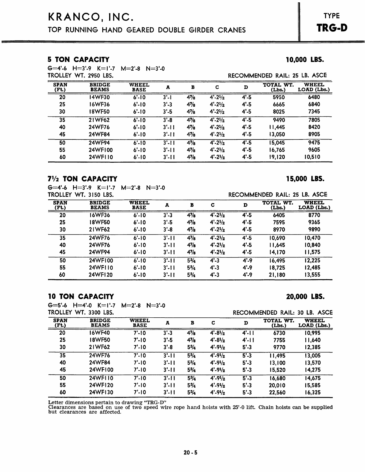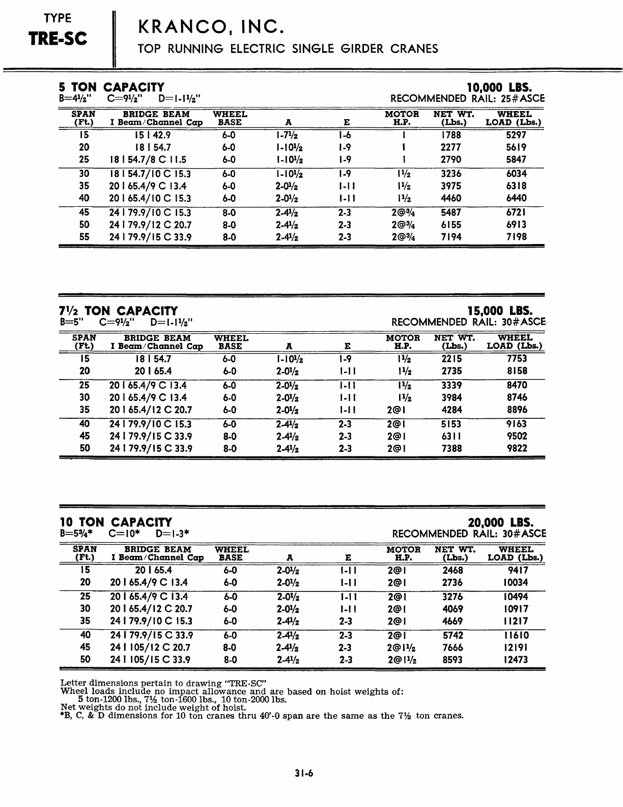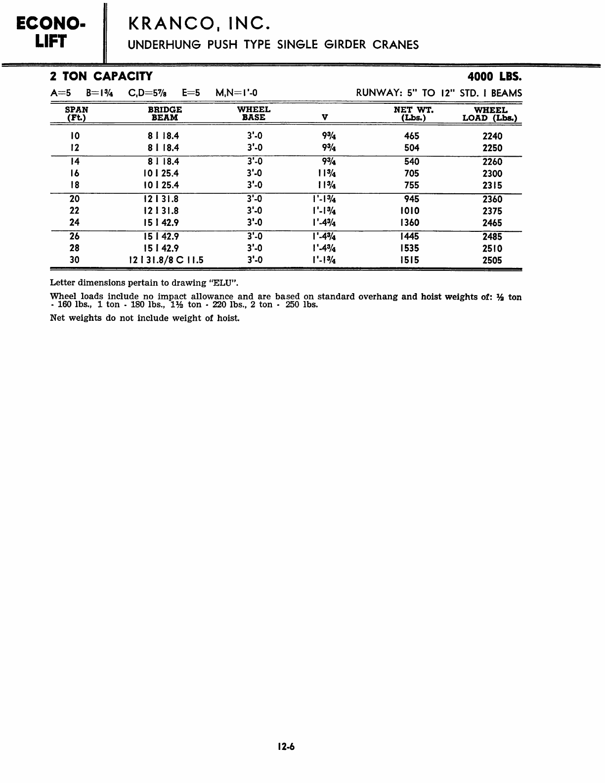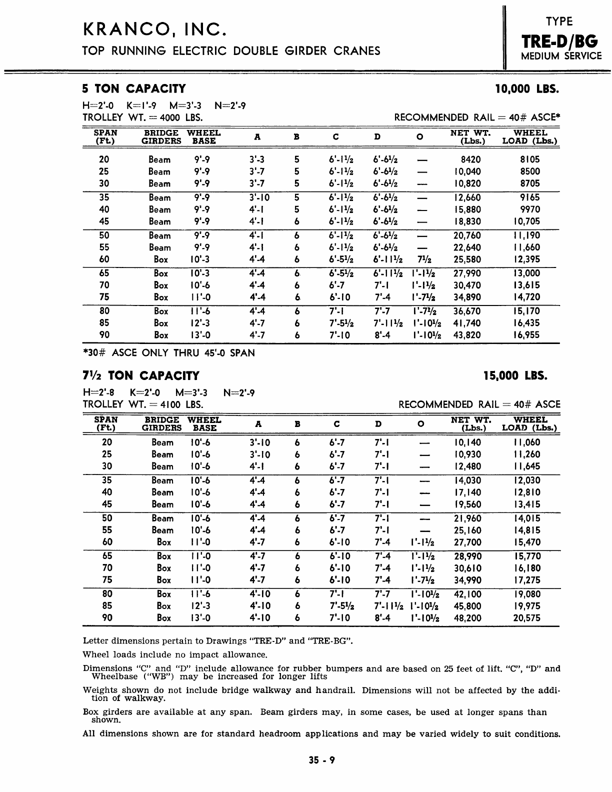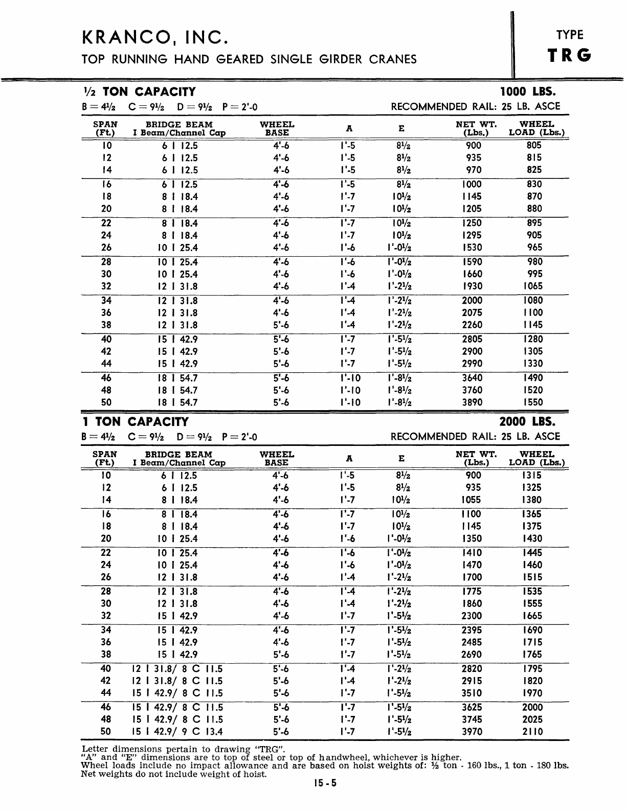 Kranco Overhead Cranes Engineering Data Catalog Bridge Crane With Weights