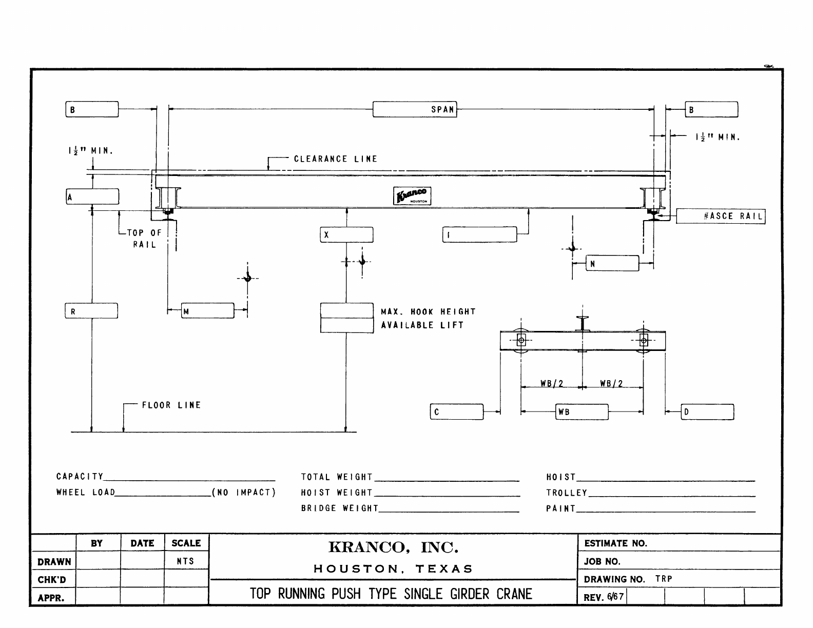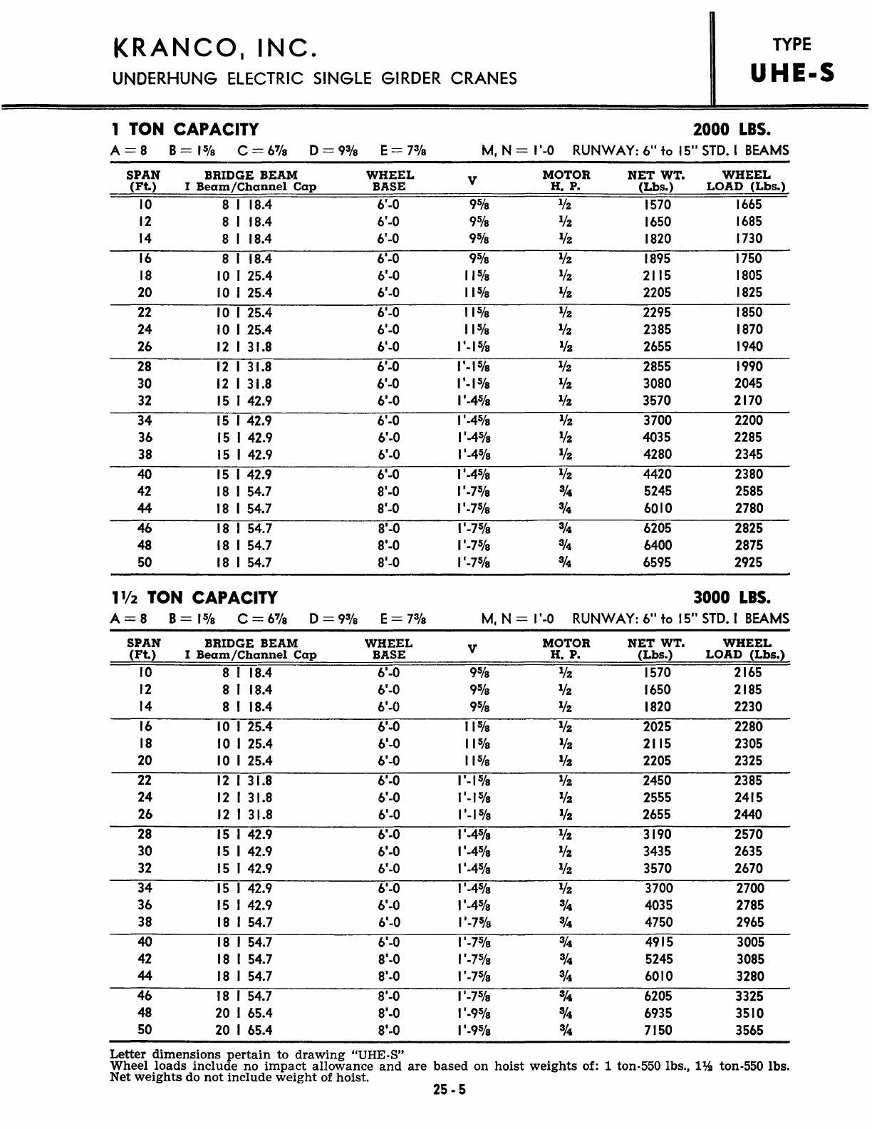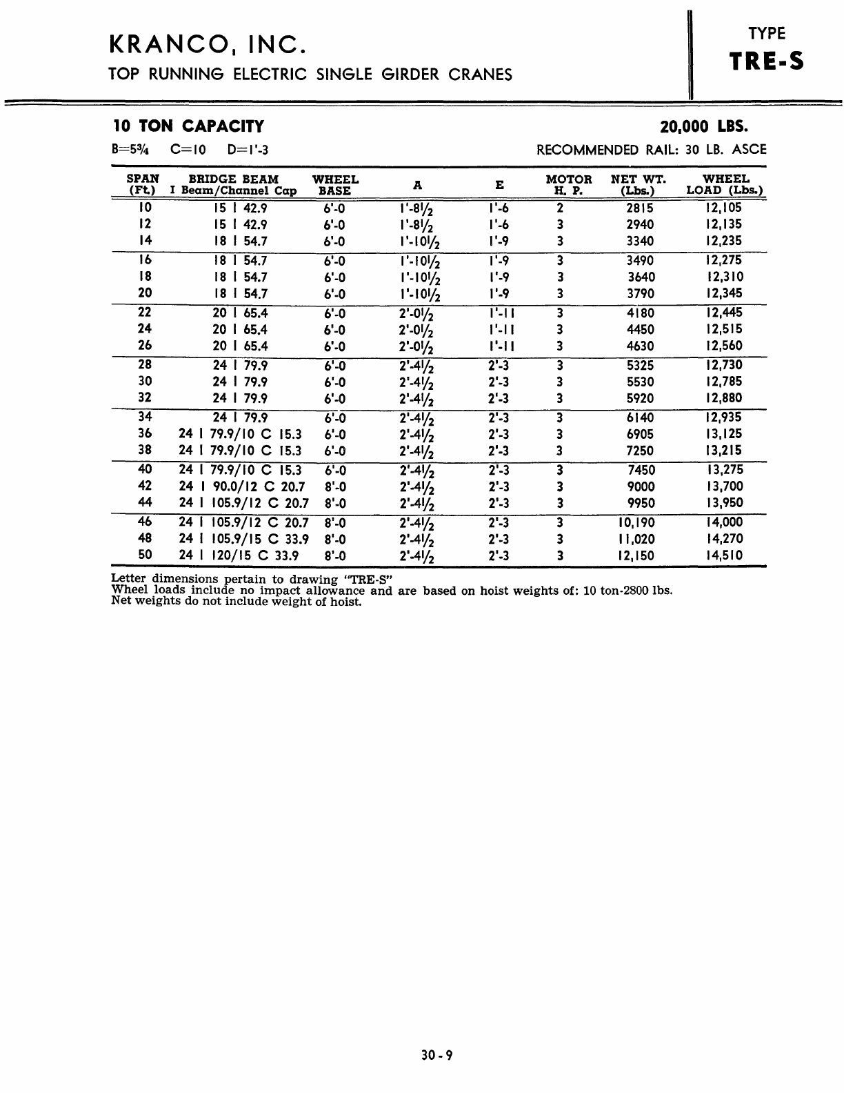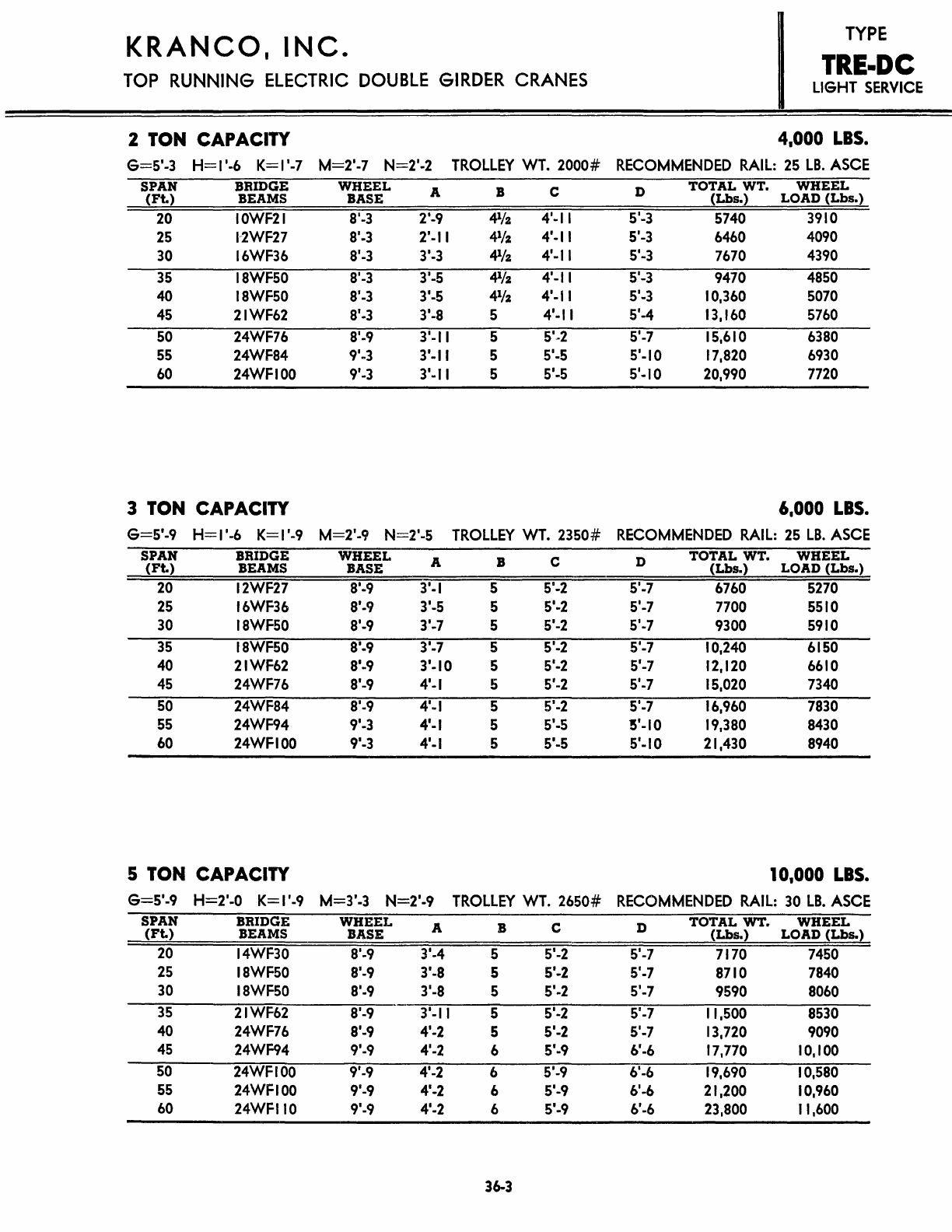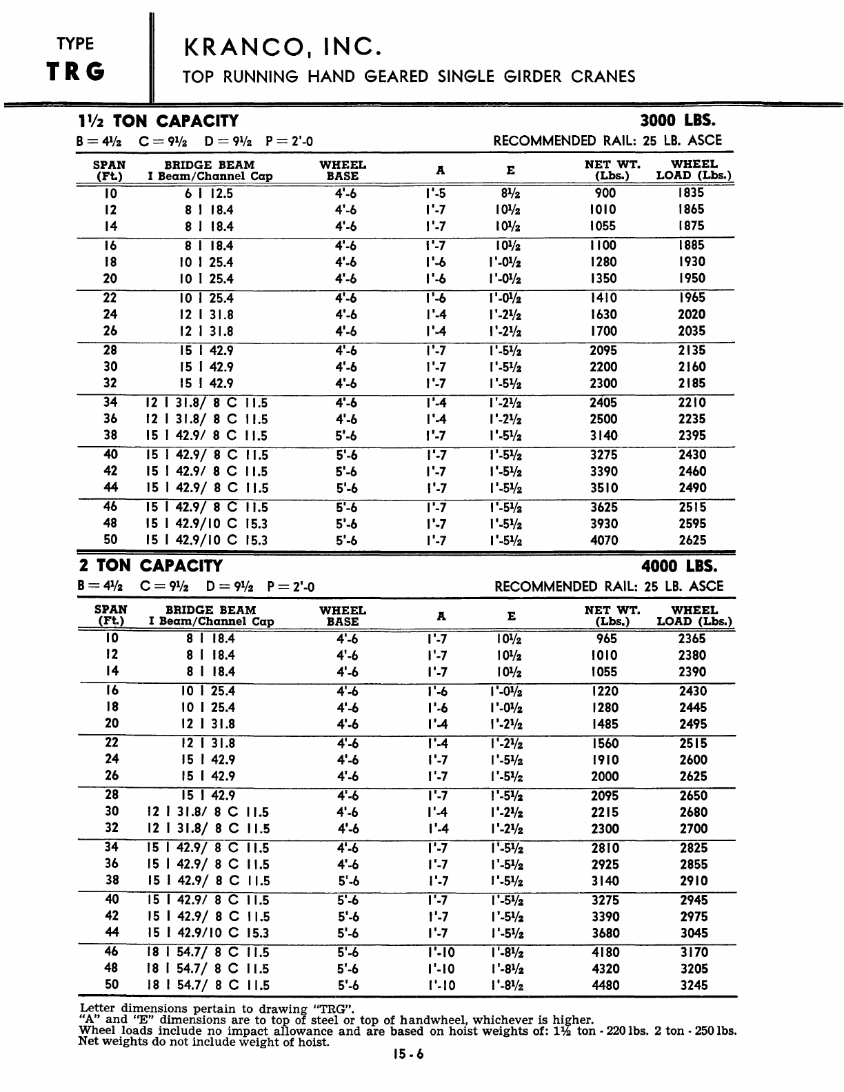 Kranco Overhead Cranes Engineering Data Catalog Bridge Crane With Weights
