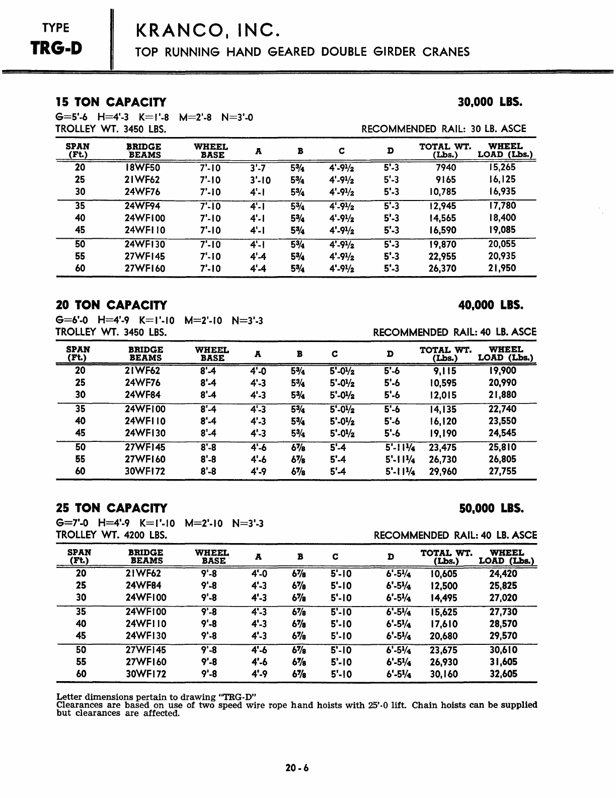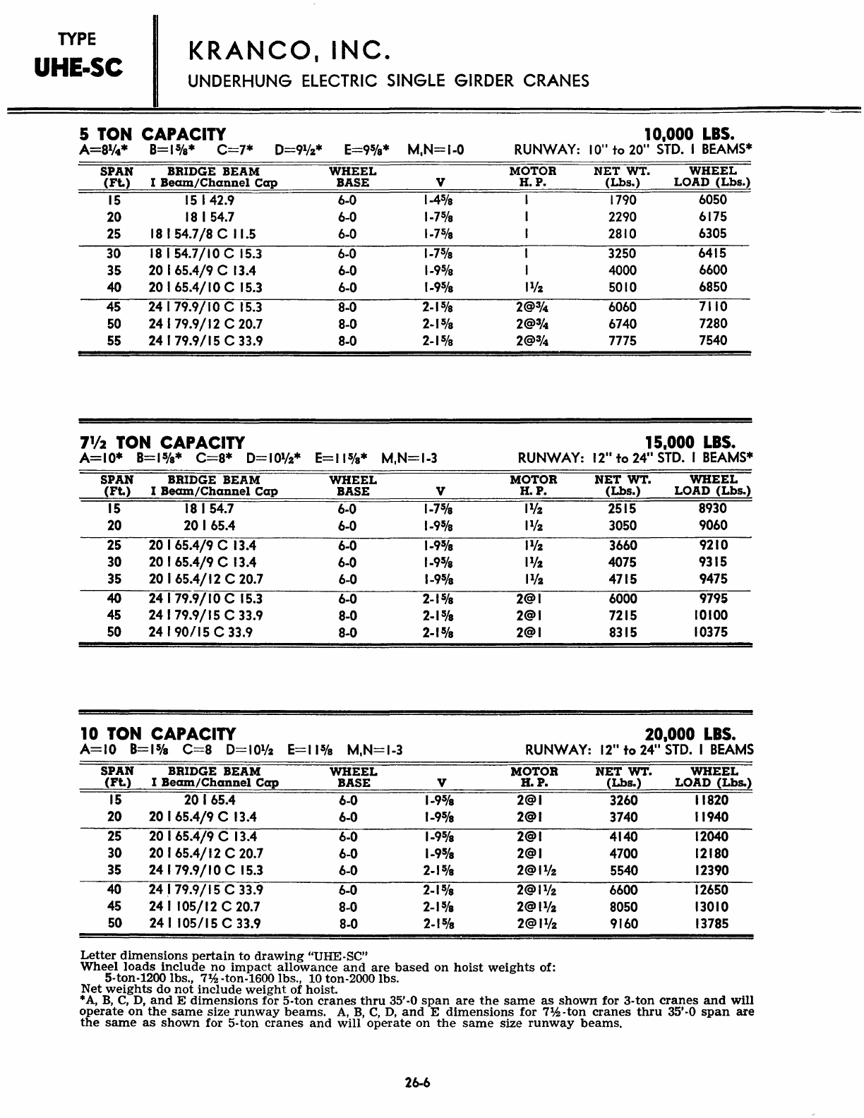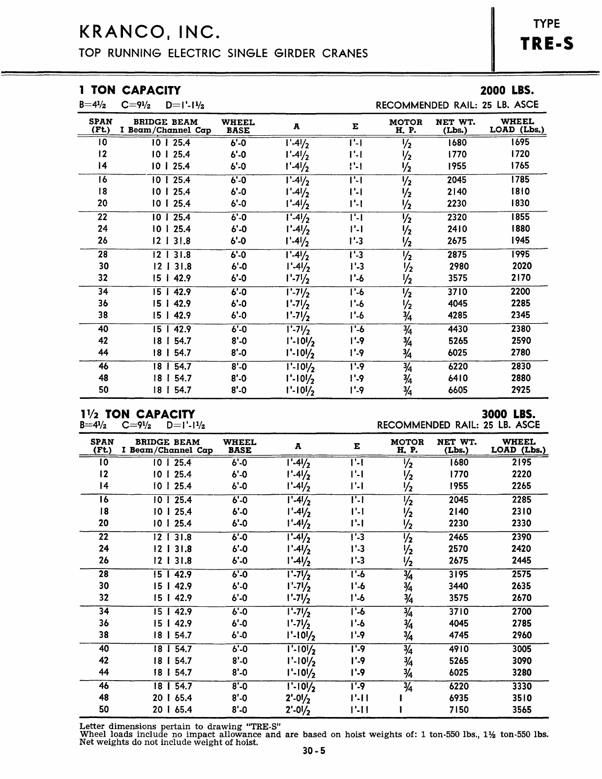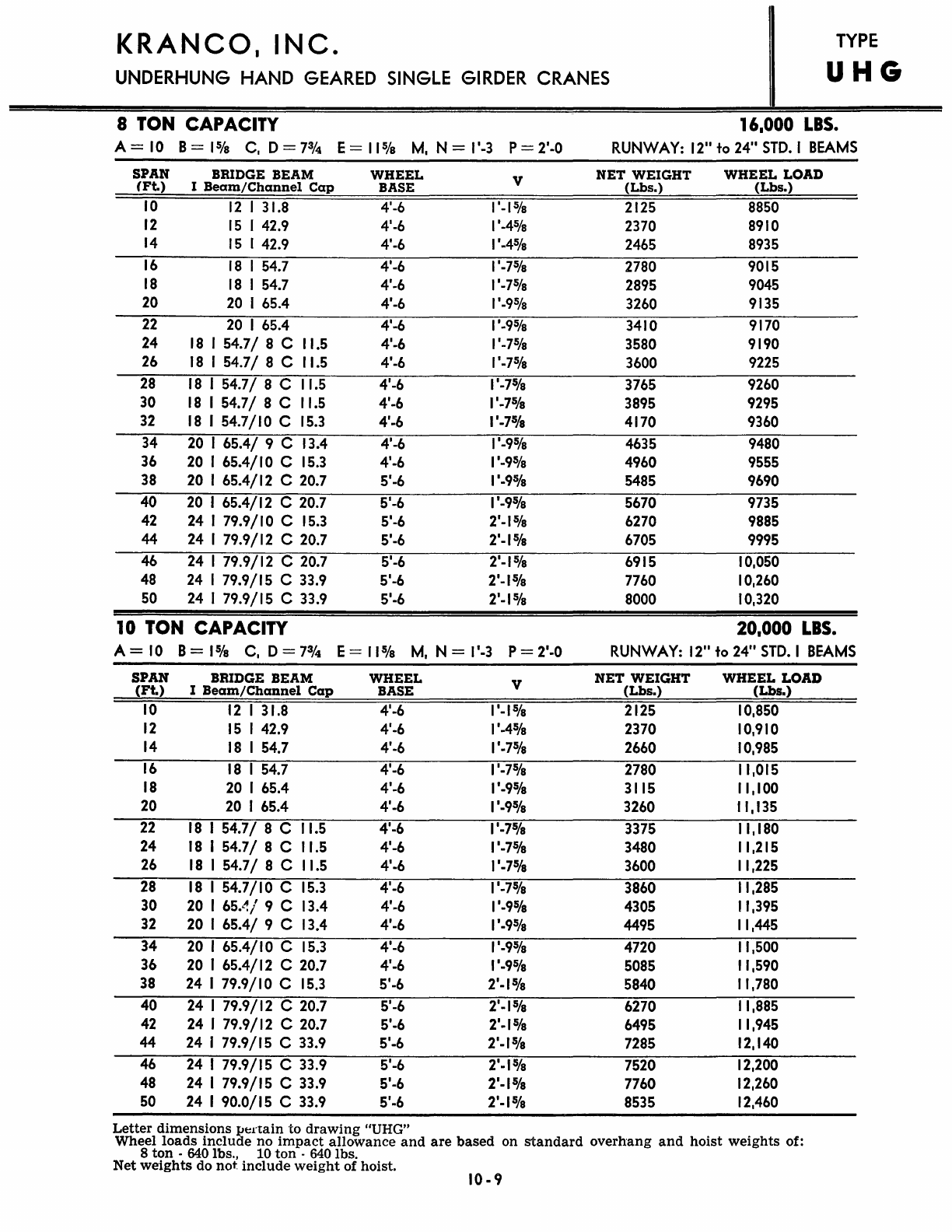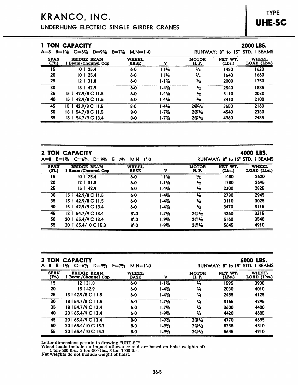 Kranco Overhead Cranes Engineering Data Catalog Bridge Crane With Weights