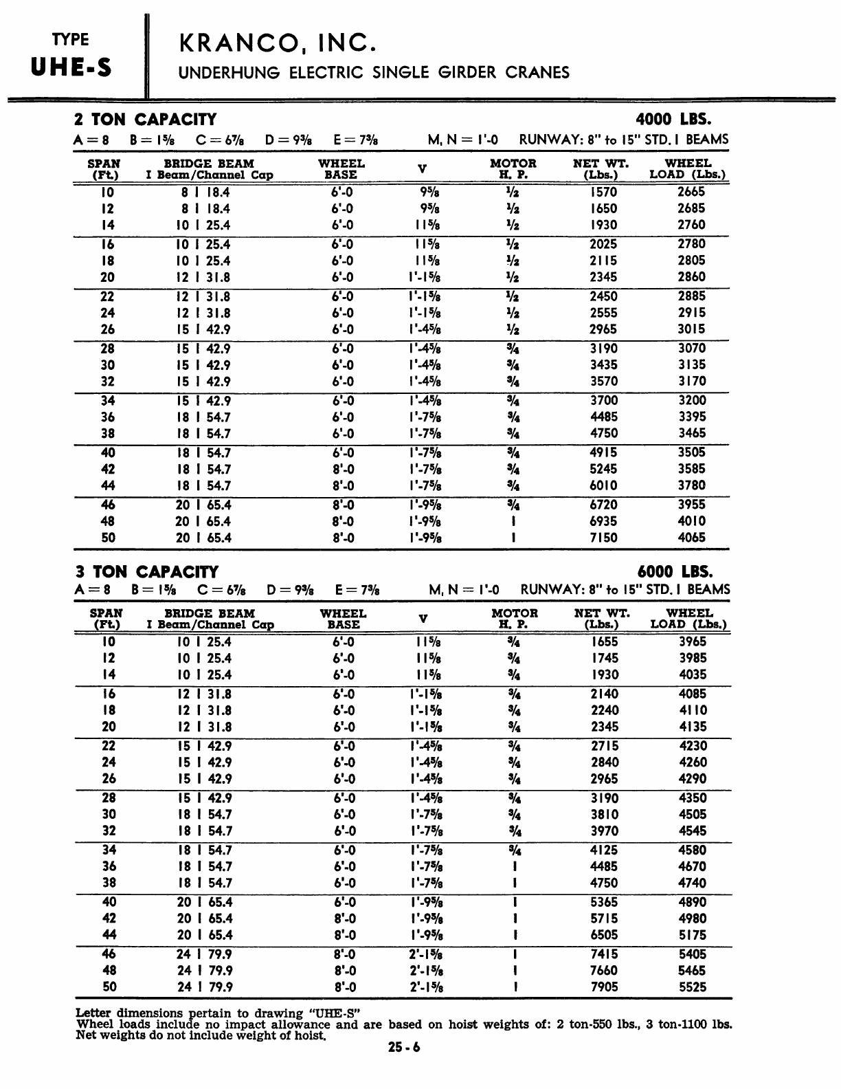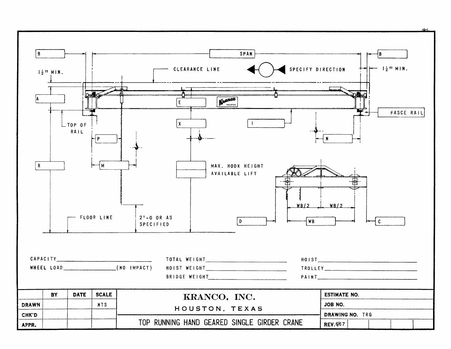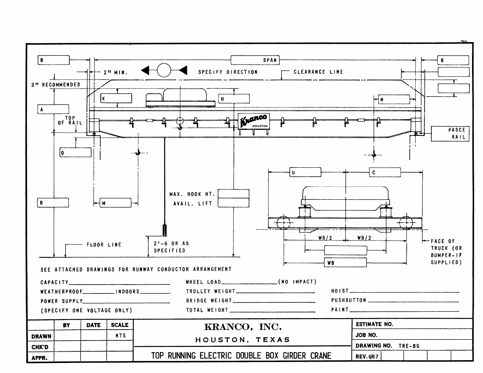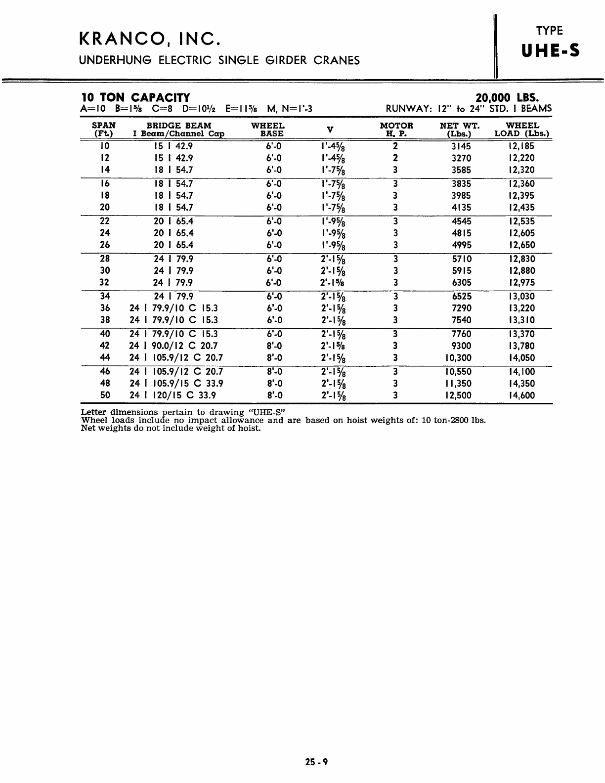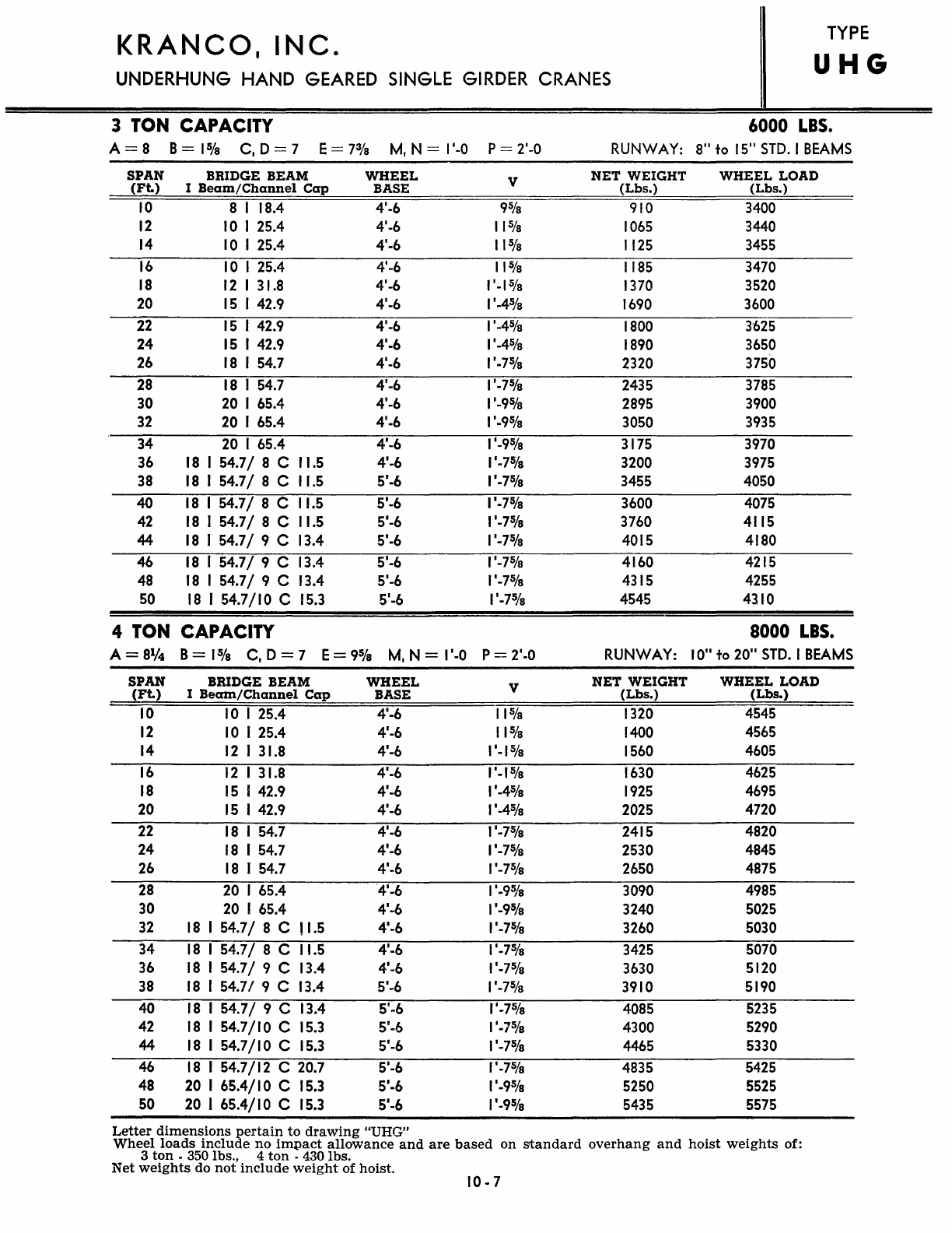 Kranco Overhead Cranes Engineering Data Catalog Bridge Crane With Weights
