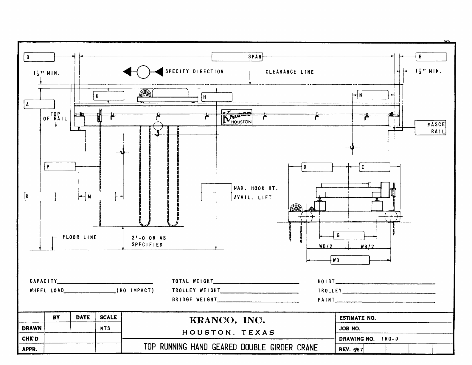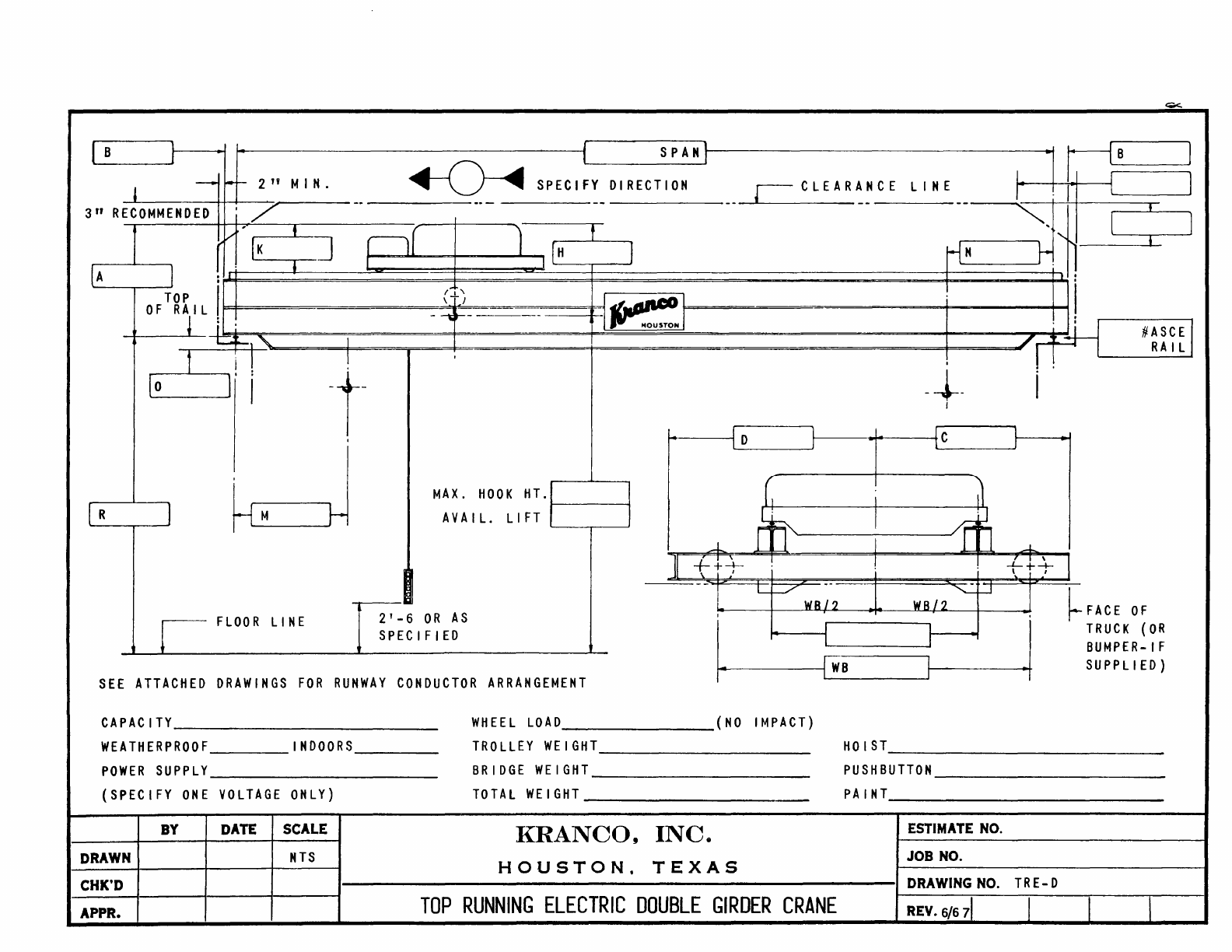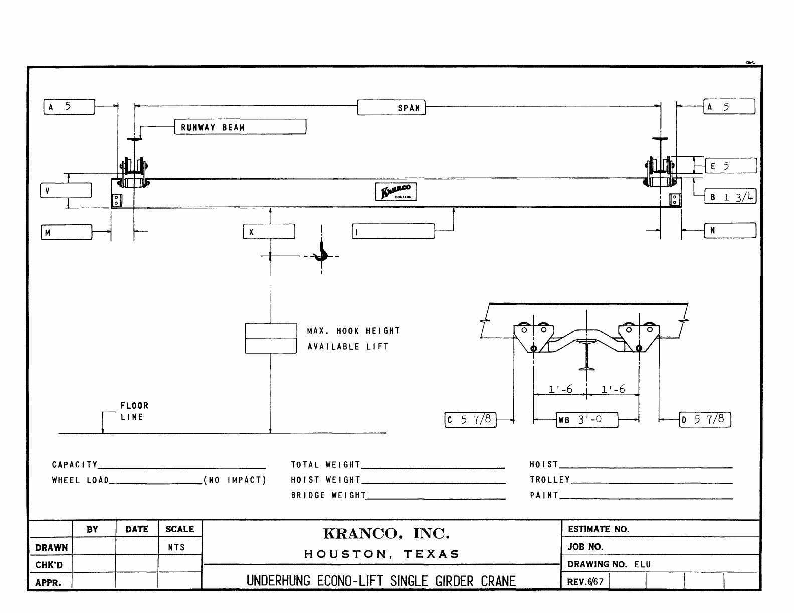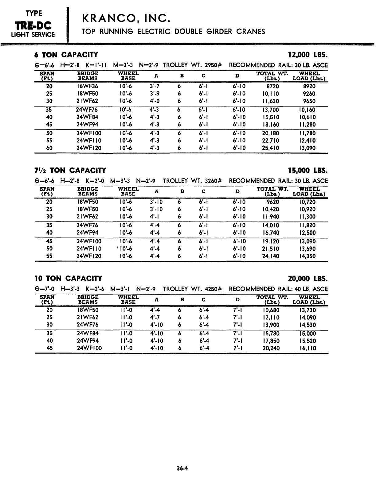 Kranco Overhead Cranes Engineering Data Catalog Bridge Crane With Weights