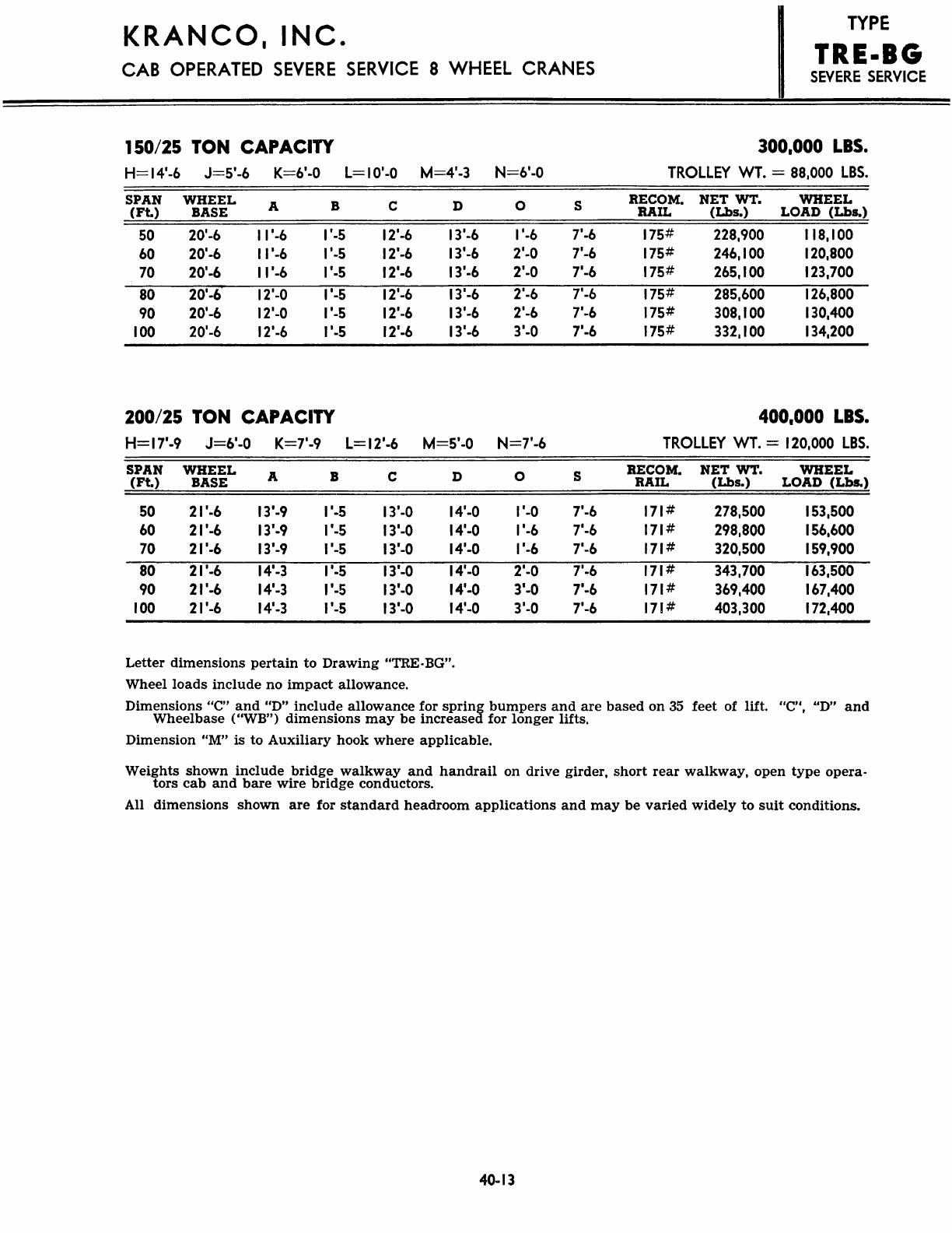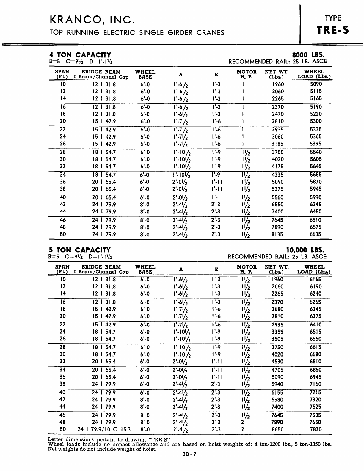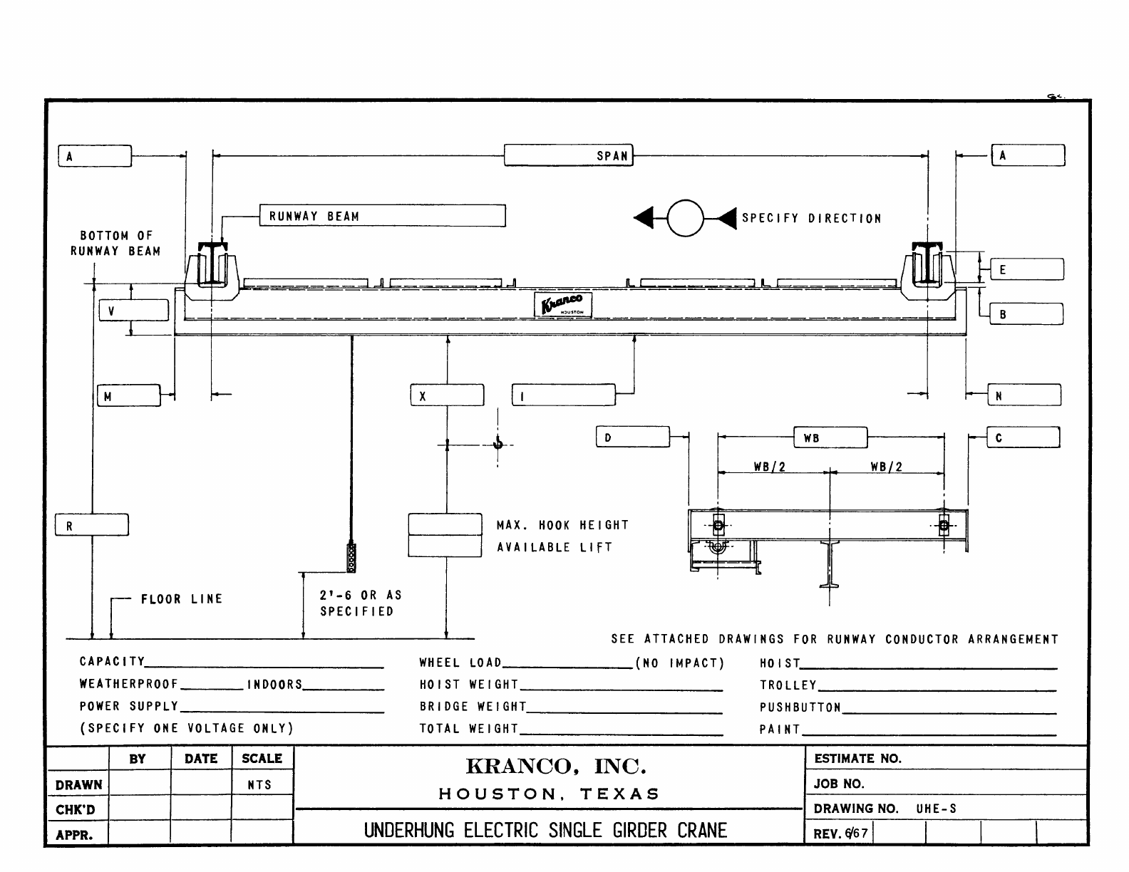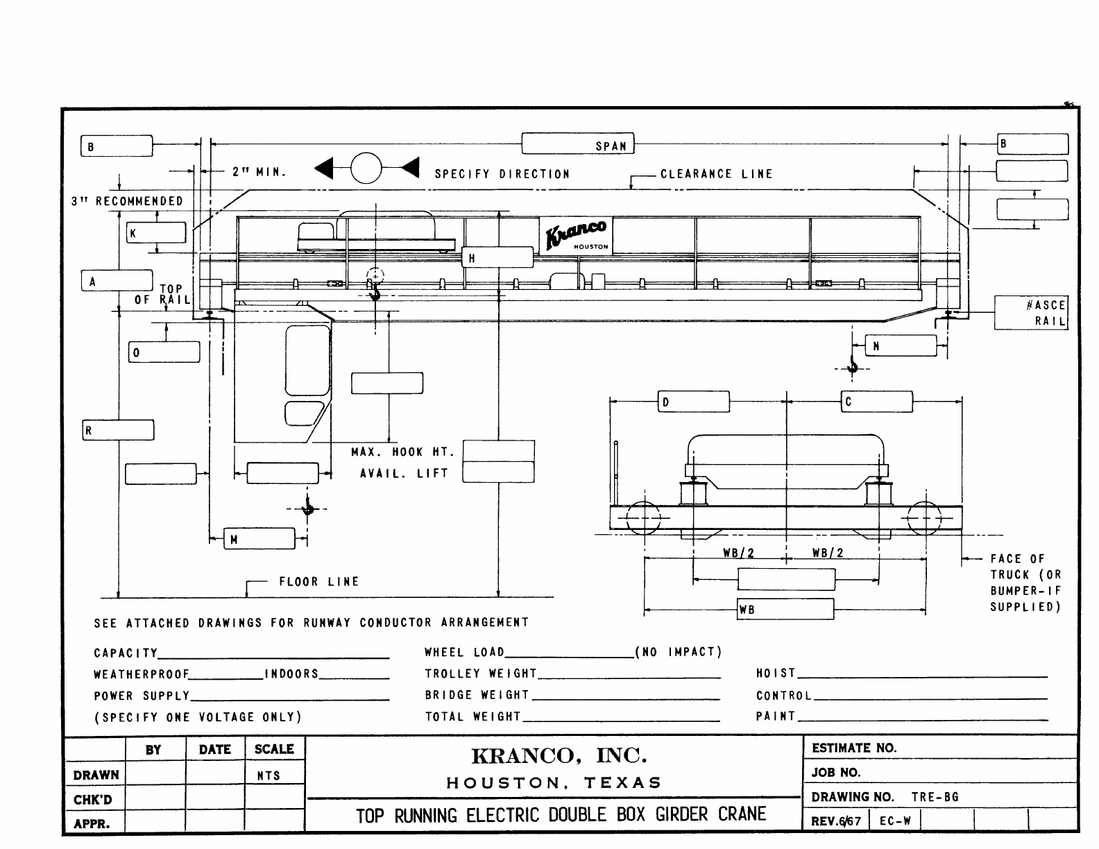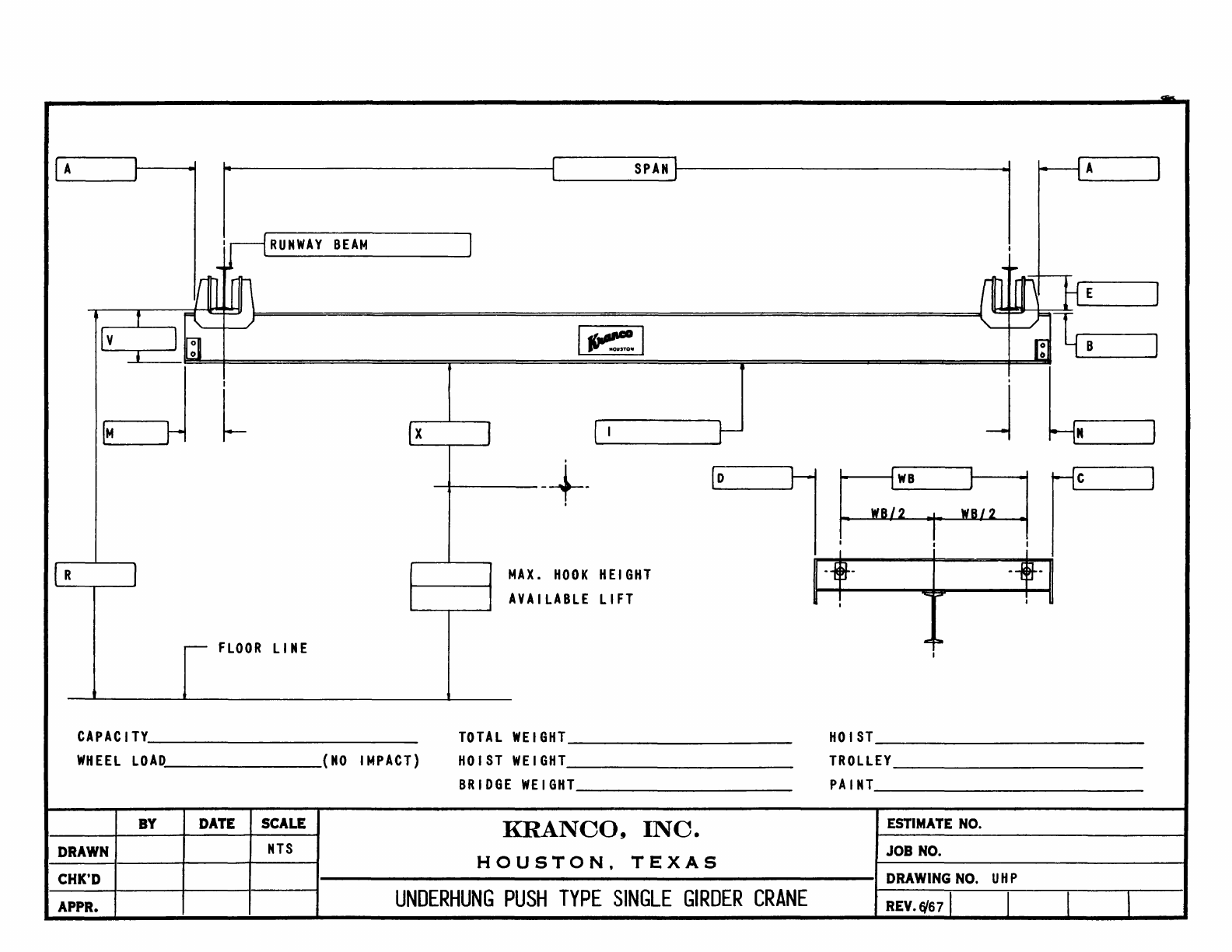 Kranco Overhead Cranes Engineering Data Catalog Bridge Crane With Weights
