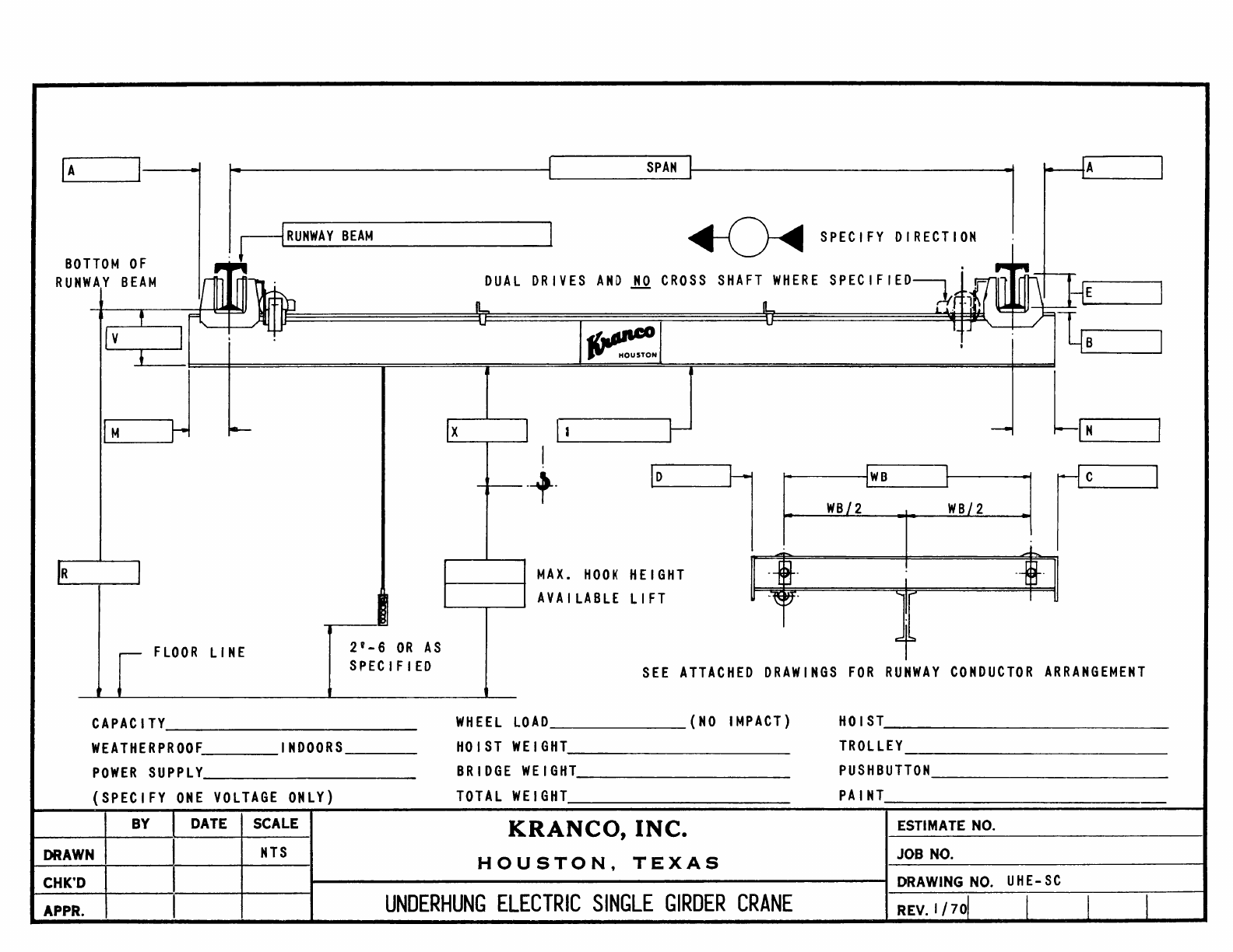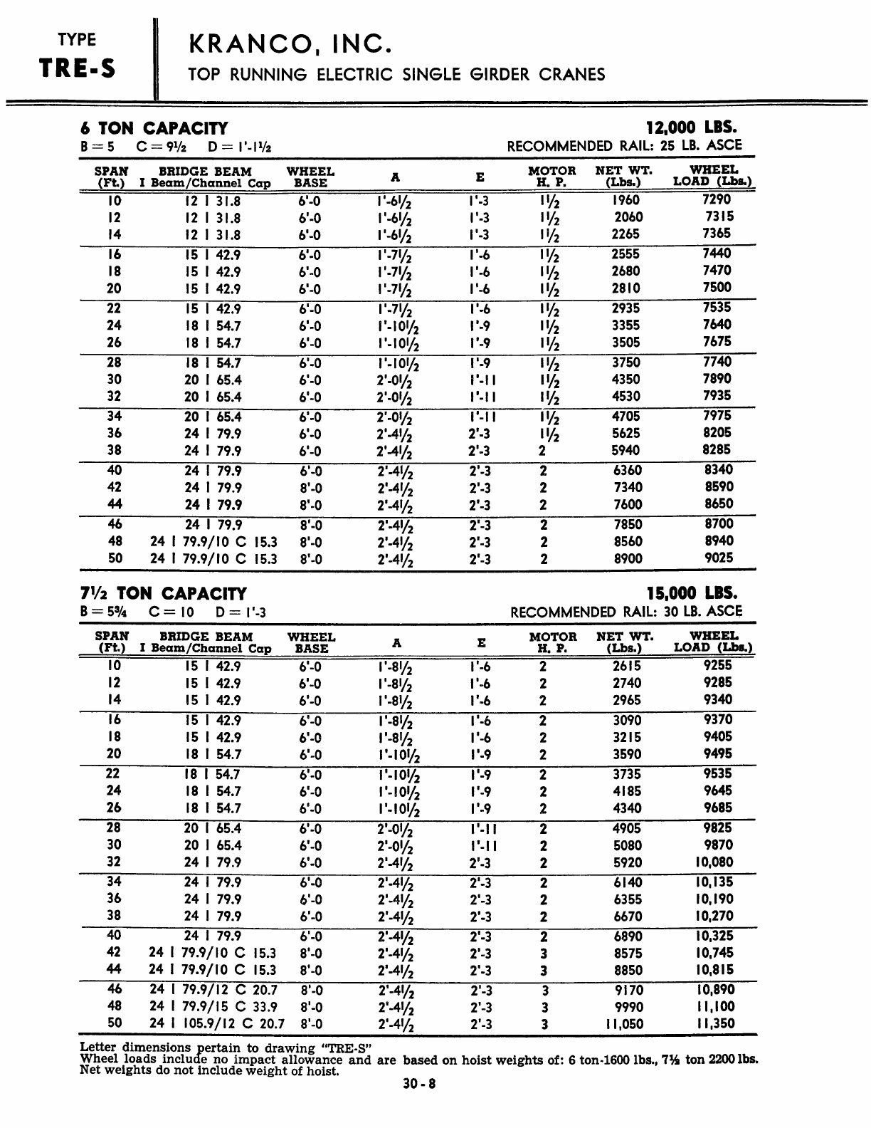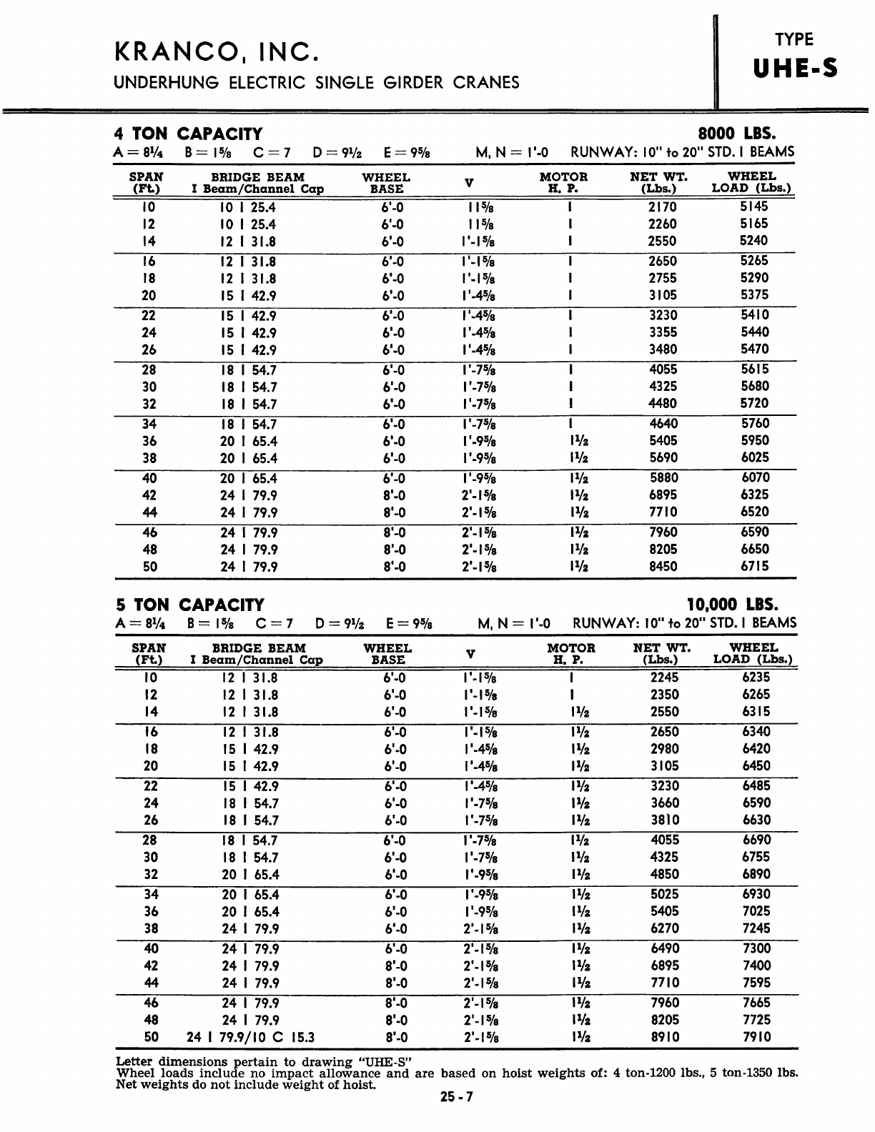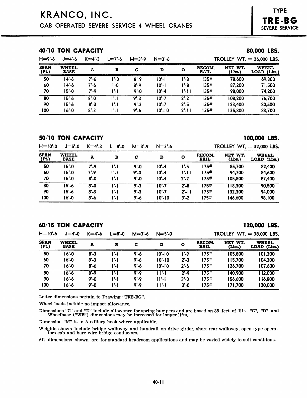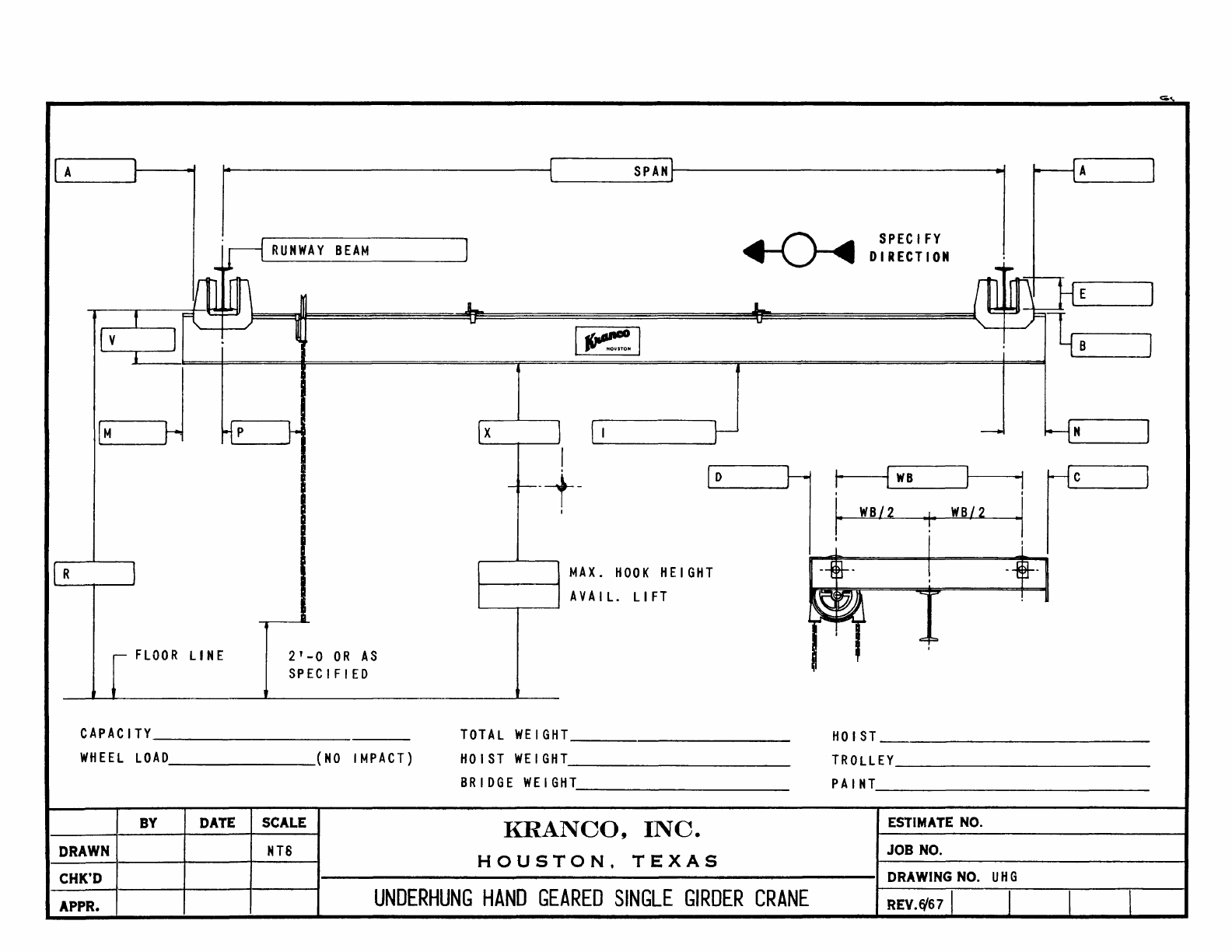 Kranco Overhead Cranes Engineering Data Catalog Bridge Crane With Weights