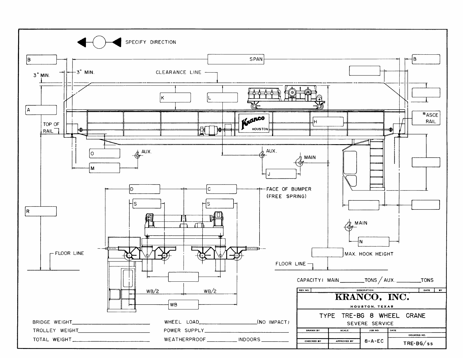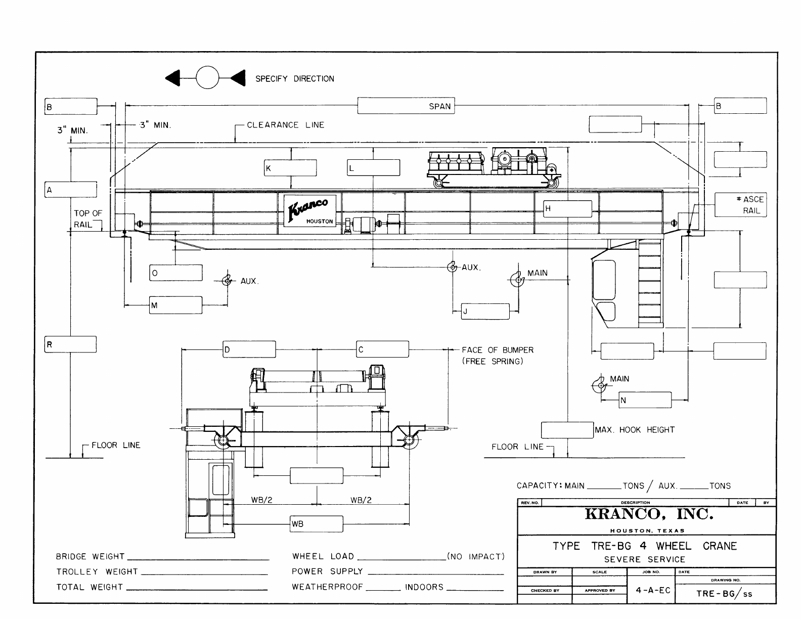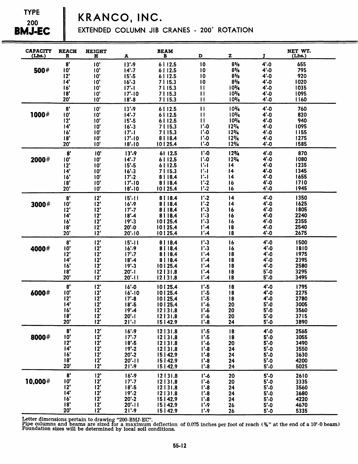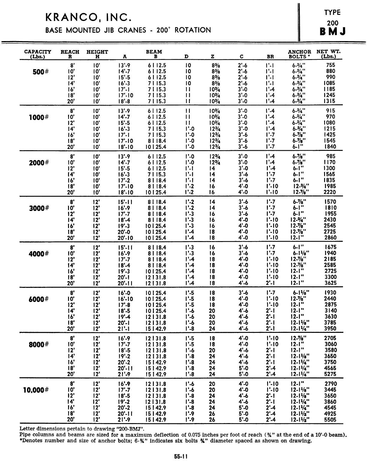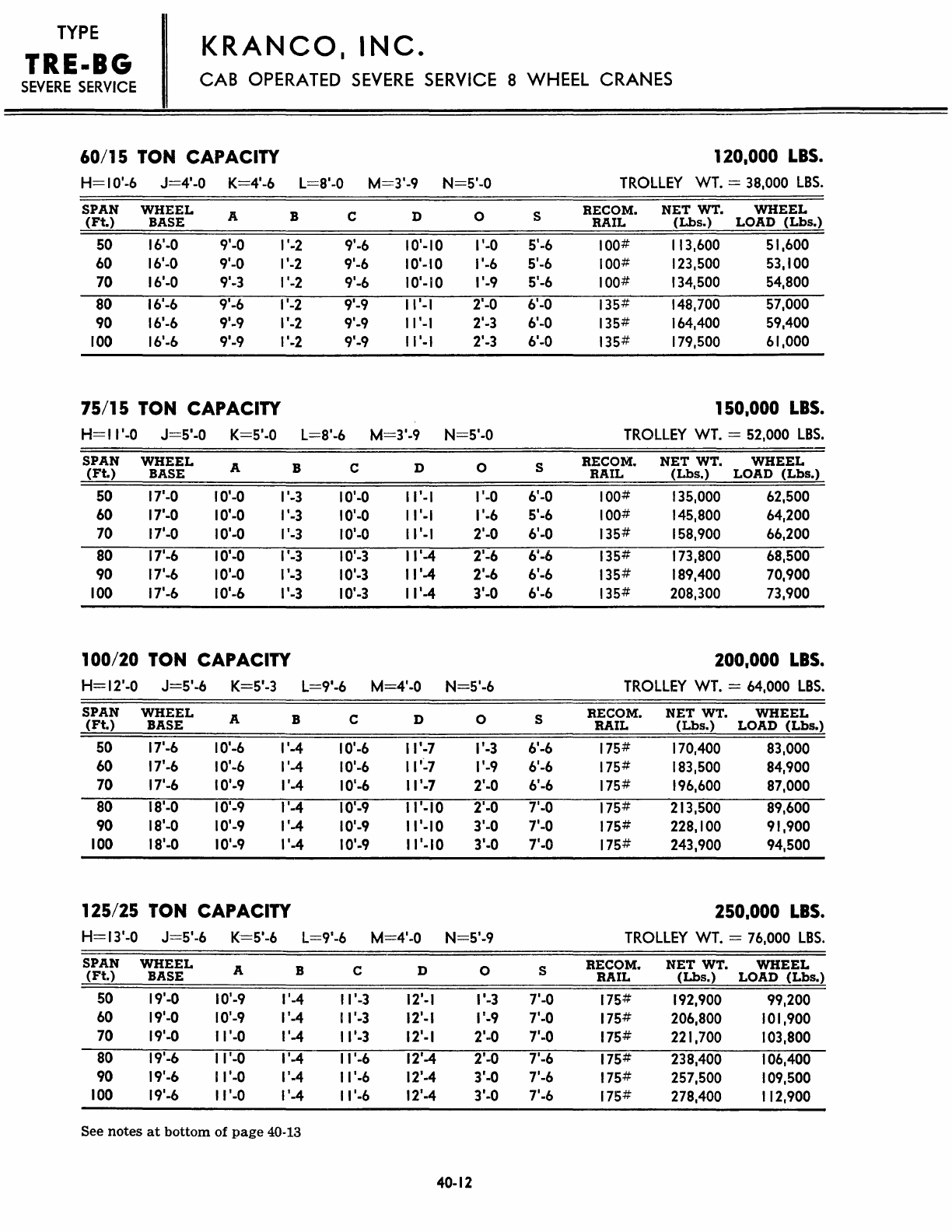 Kranco Overhead Cranes Engineering Data Catalog Bridge Crane With Weights