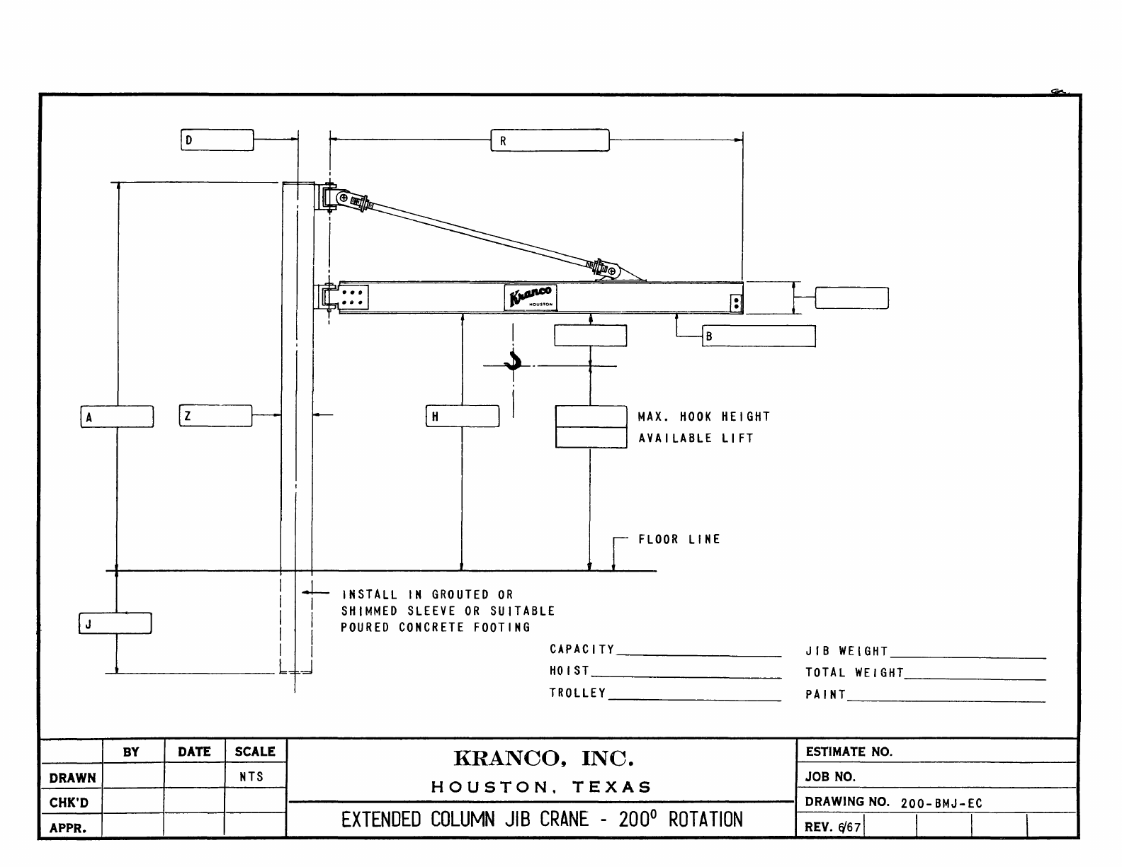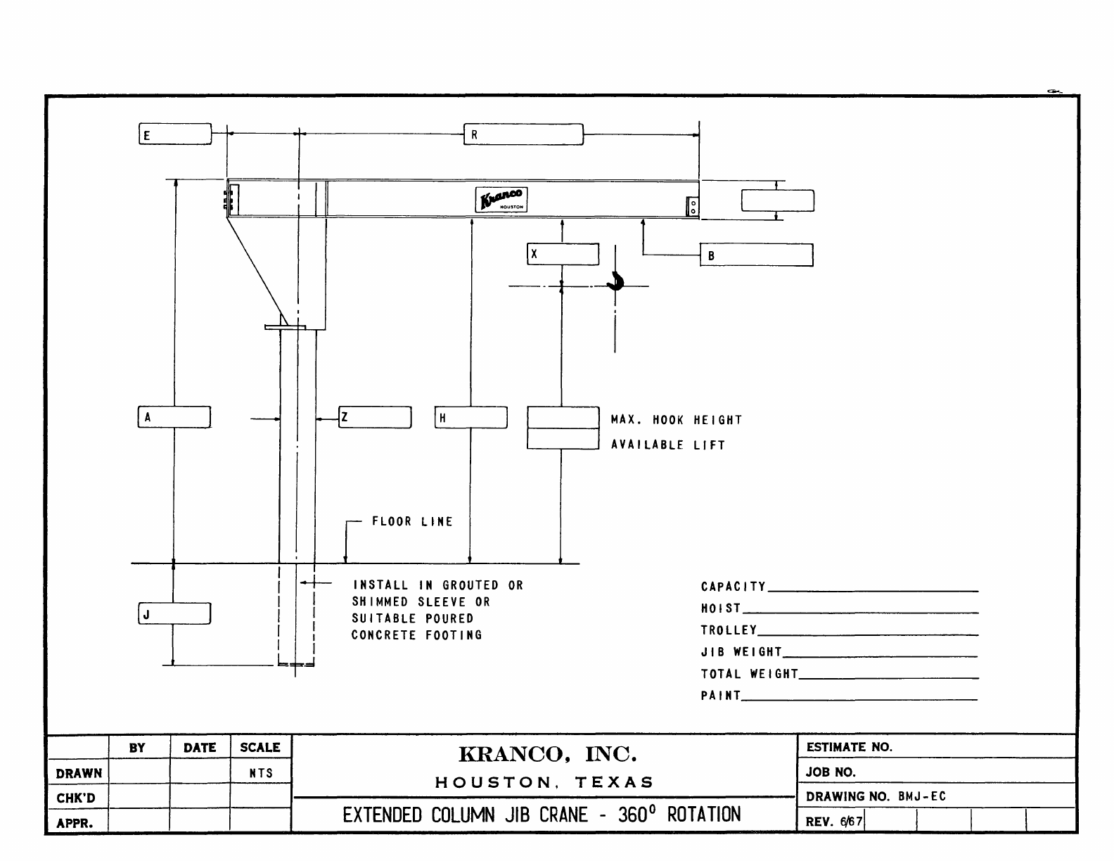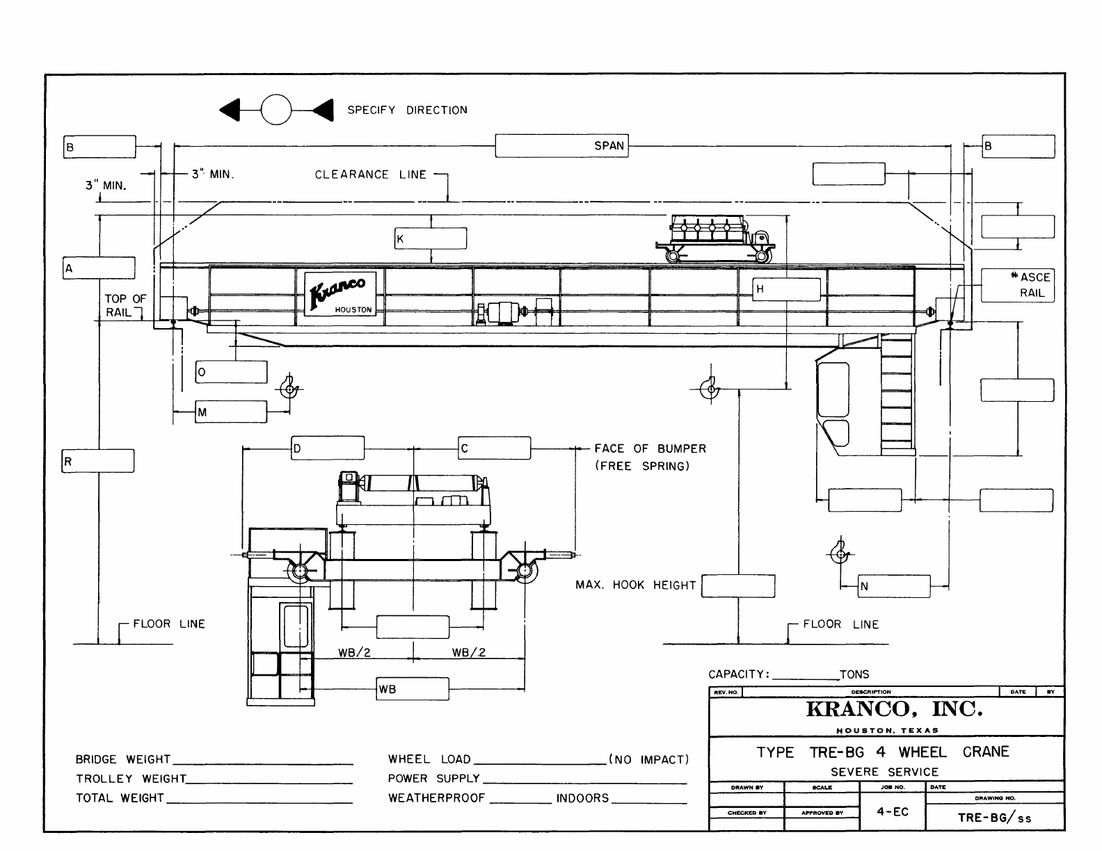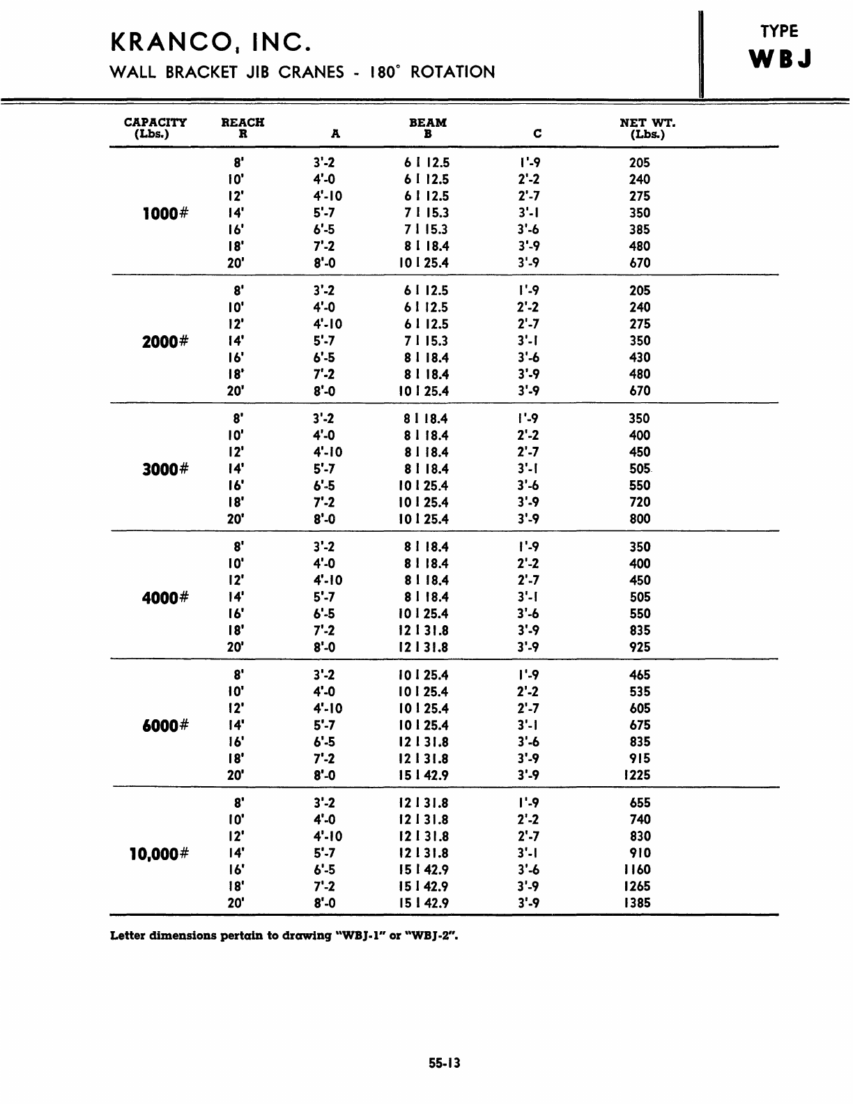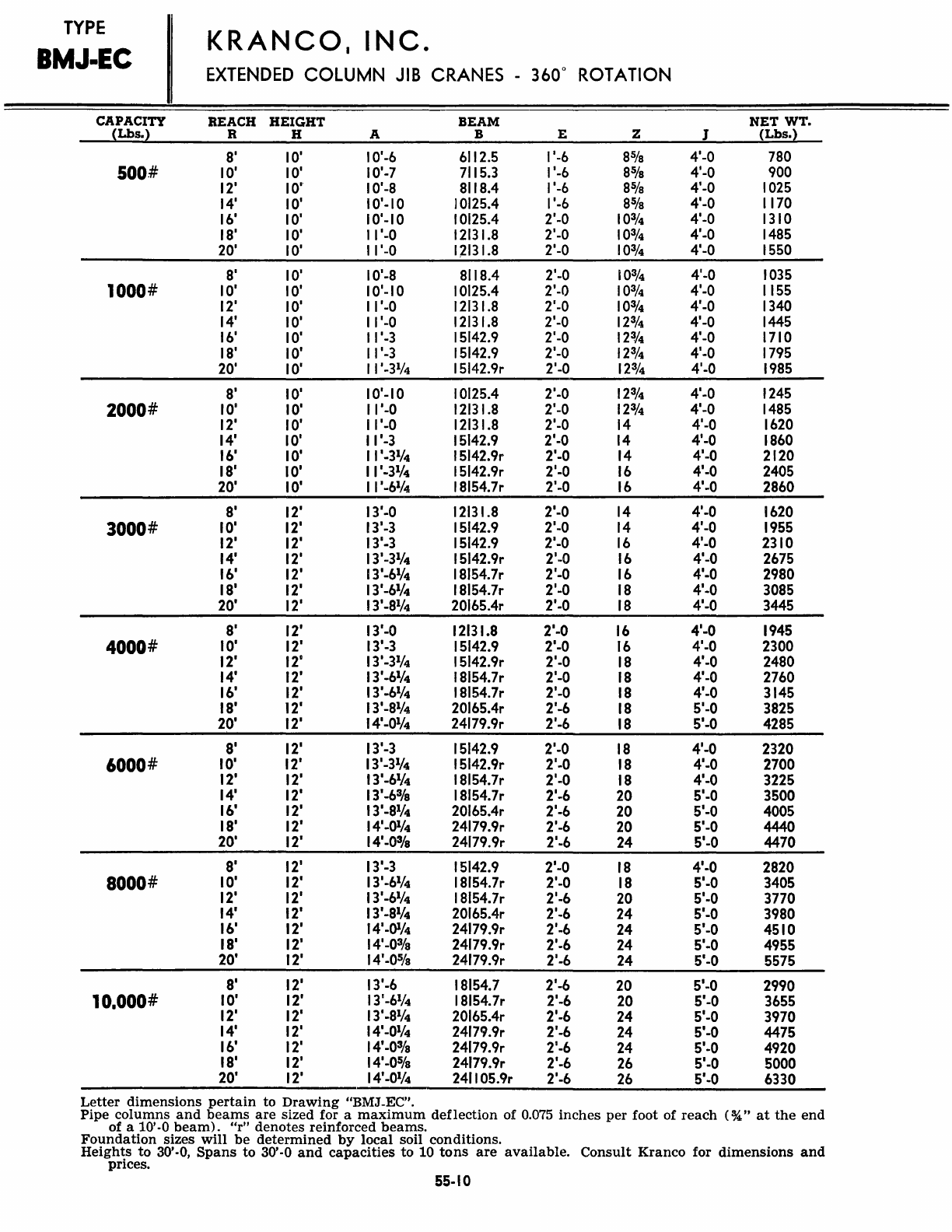 Kranco Overhead Cranes Engineering Data Catalog Bridge Crane With Weights