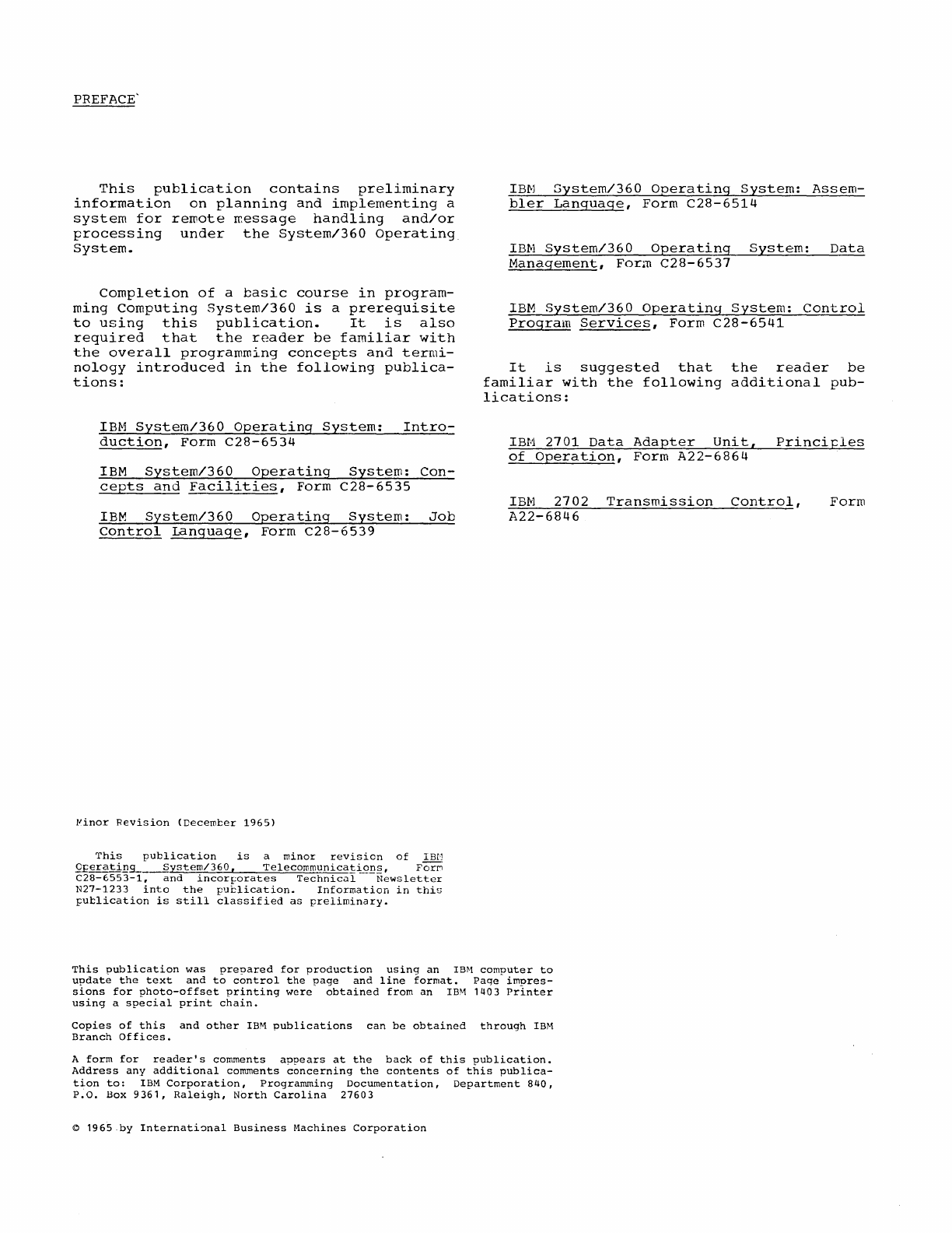 C28-6553-2_Telecommunications_Preliminary_Specifications_Dec65 C28-6553-2_Telecommunications_Preliminary_Specifications_Dec65