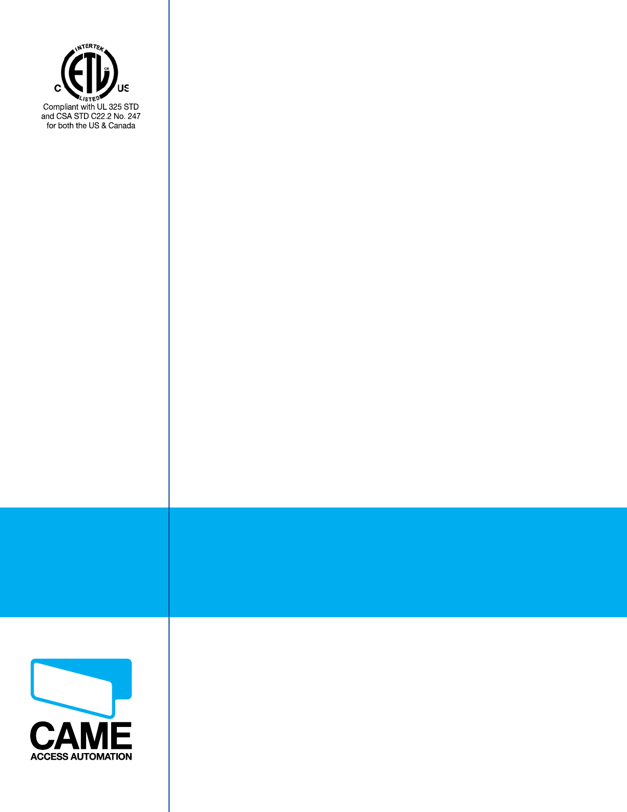 The information indicated in this brochure should be considered subject to change at any time without forewarning by CAME Americas Automation.
