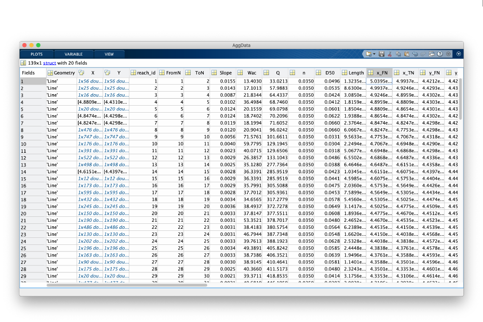 •Network: Scalar struct containing information on the network connectivity for each reach
