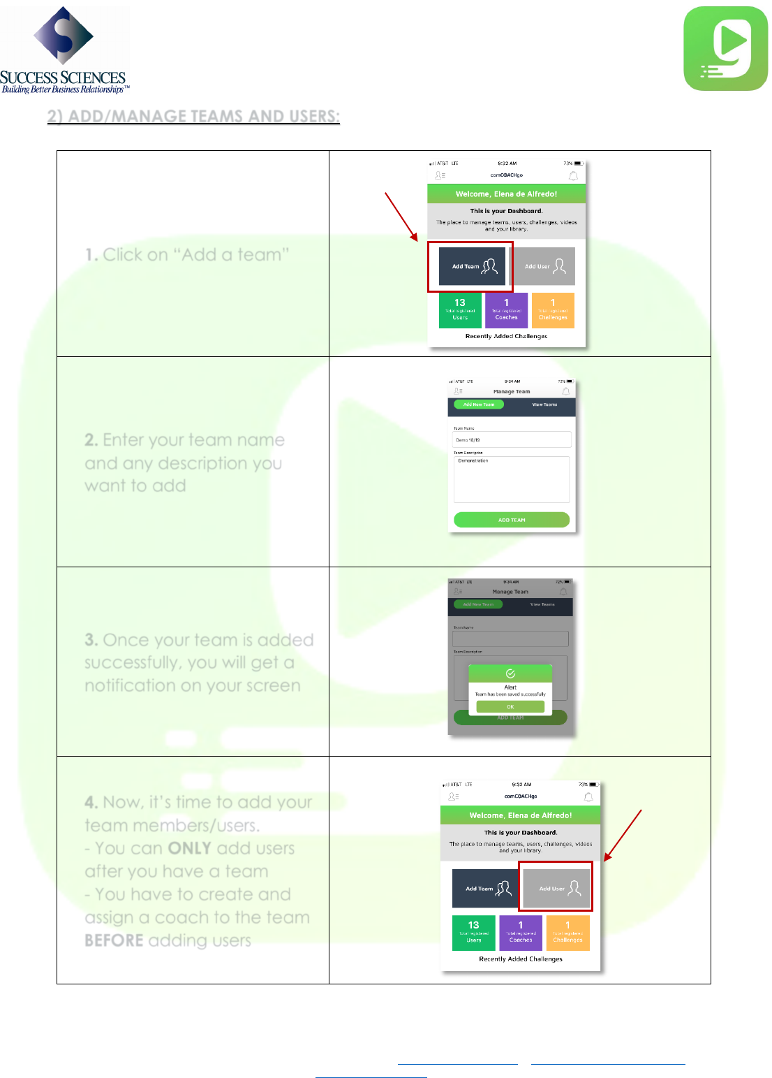 2. ADD/MANAGE TEAMS AND USERS ………………………..………………….… 6-8