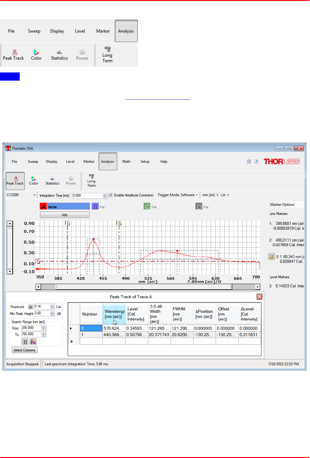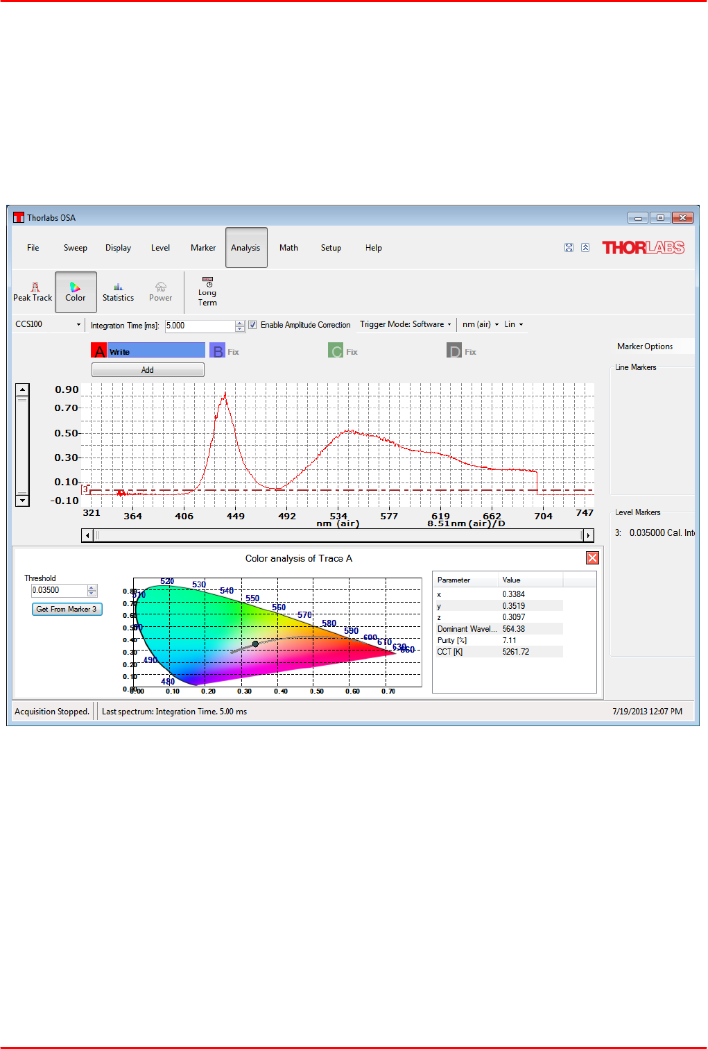 acquiring direct, transmittance and absorbance measurements in conjunction with Thorlabs' optical