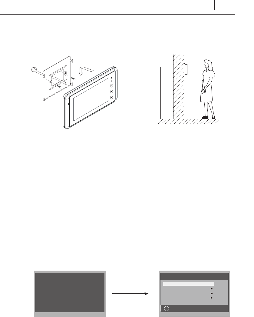 2. Wire the system correctly(see the later connection chapter) then hang the Monitor