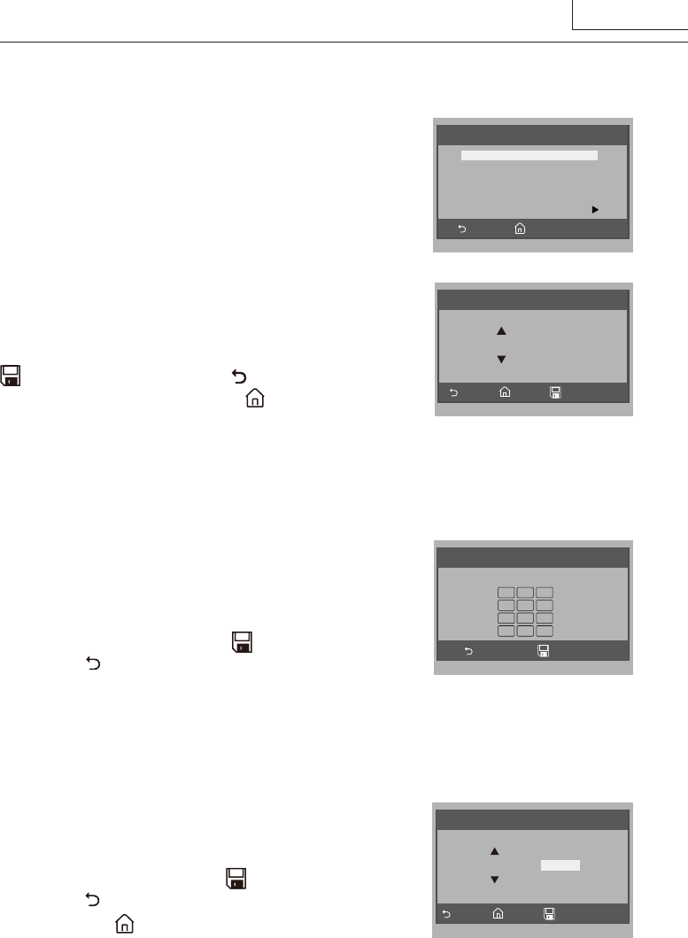 Touch and select the adjustment item you want; touch / icon to decrease / increase