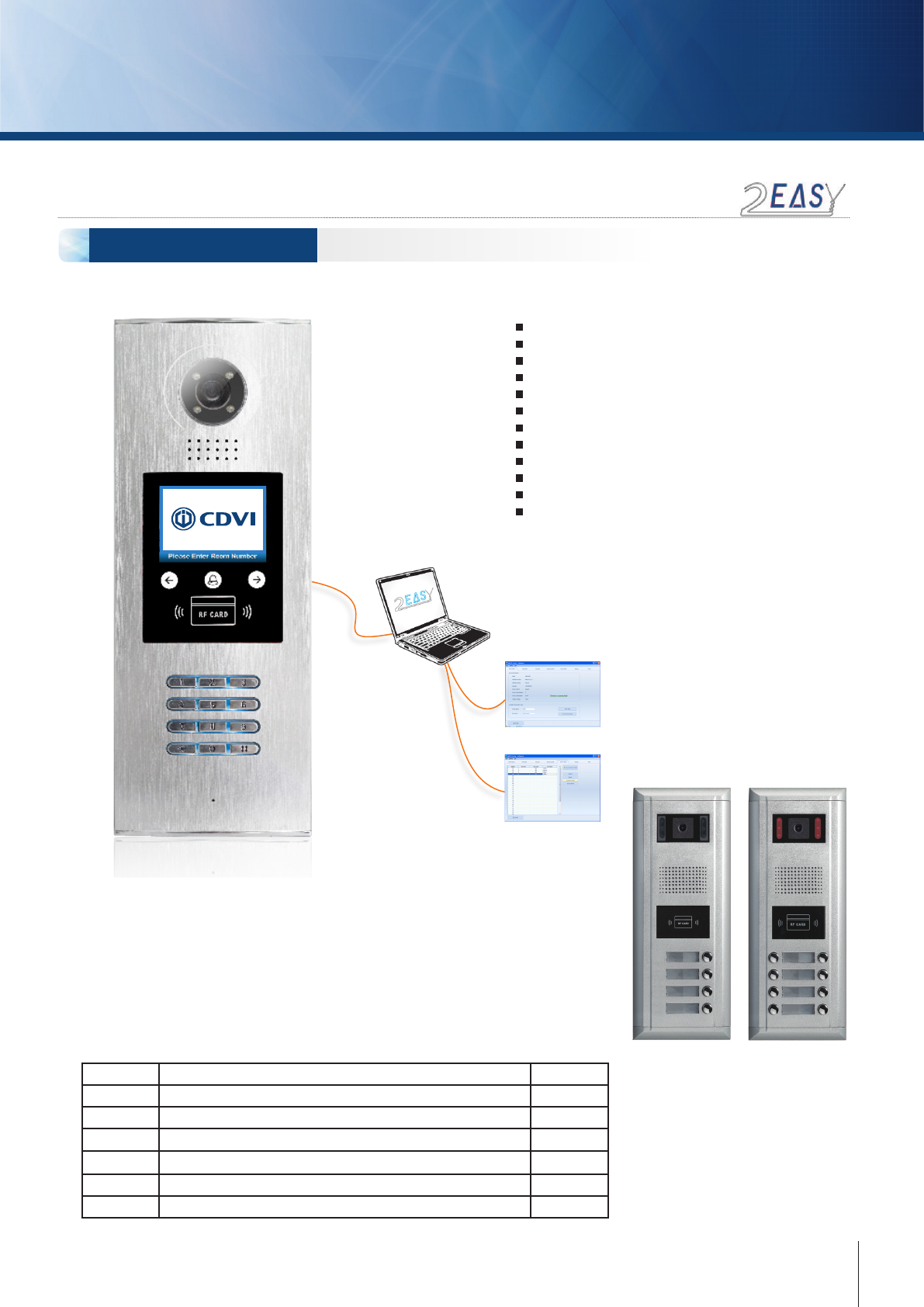 The 2EASY audio from CDVI oer convenient and high quality audio entry. Connecon throughout is 2-wire, non polarised, so installaon