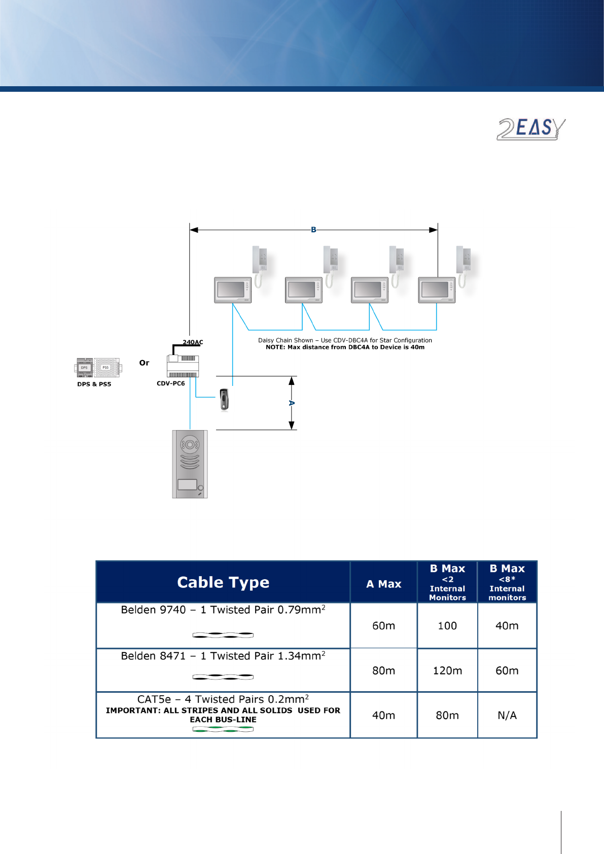 The 2EASY video entry systems from CDVI oer convenient and high quality video entry. Connecon throughout is 2-wire, non polarised,