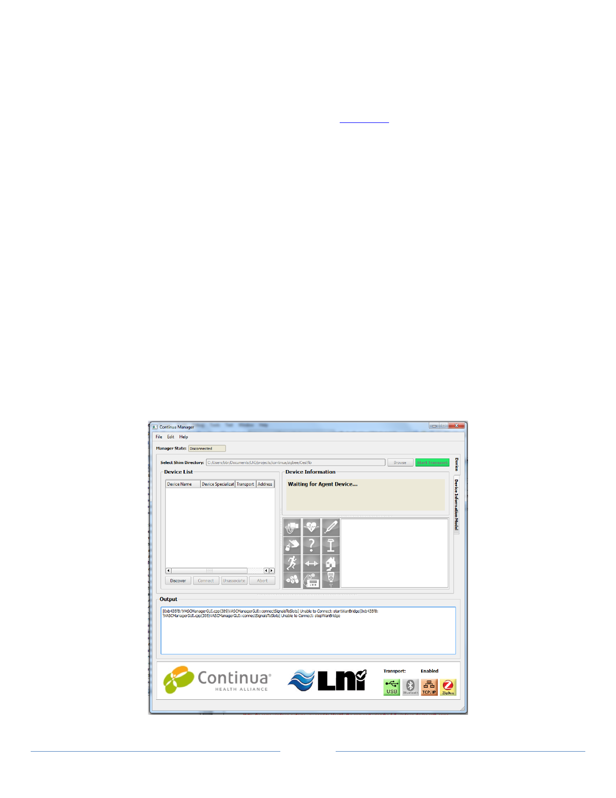 2. Start the Manager Application and continue with the transport specific instructions in this guide.