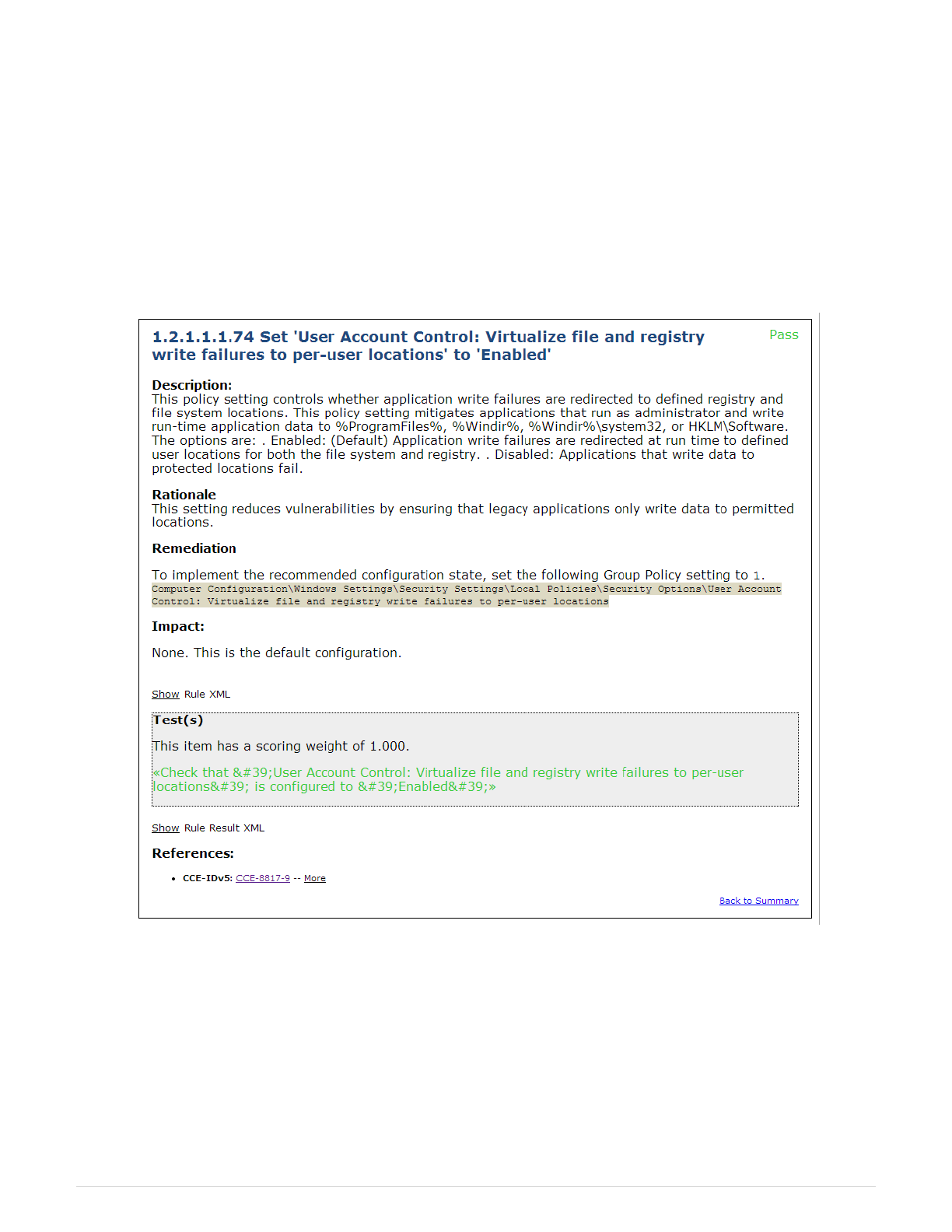 benchmark item as links to the National Vulnerability Database (NVD) CCE database, providing an