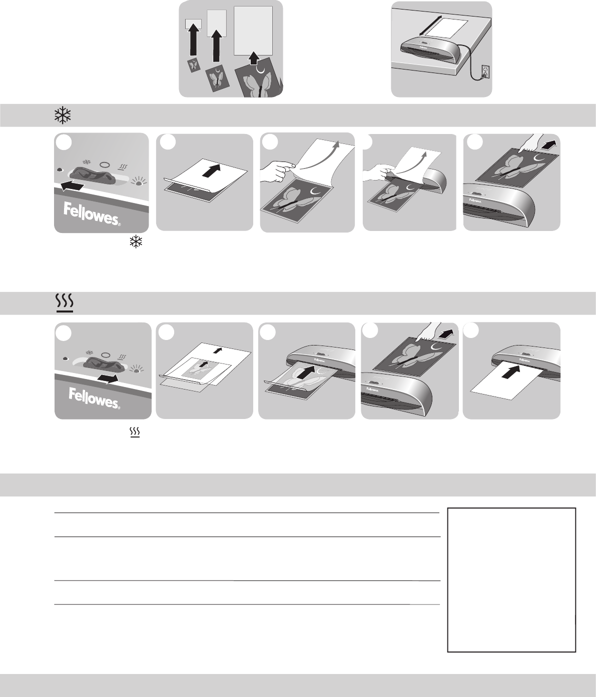 • Only use pouches specifi cally designed for the lamination setting (Hot or Cold) you intend
