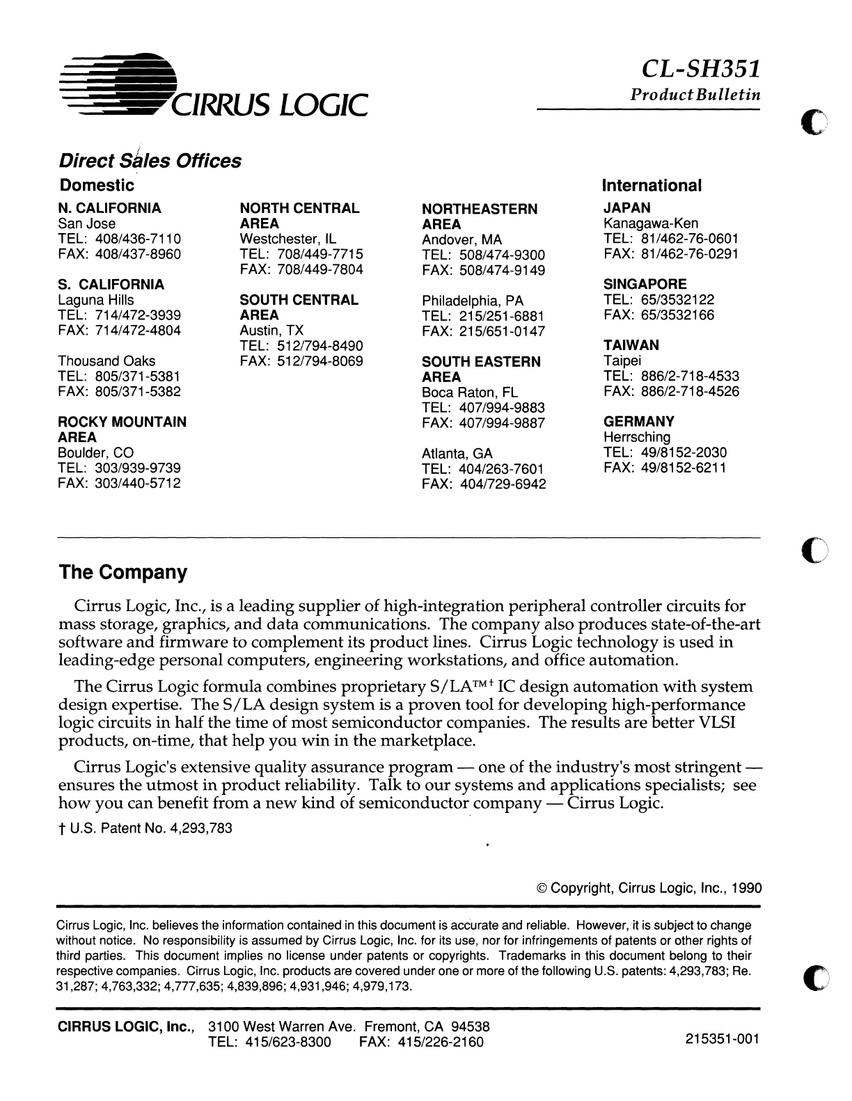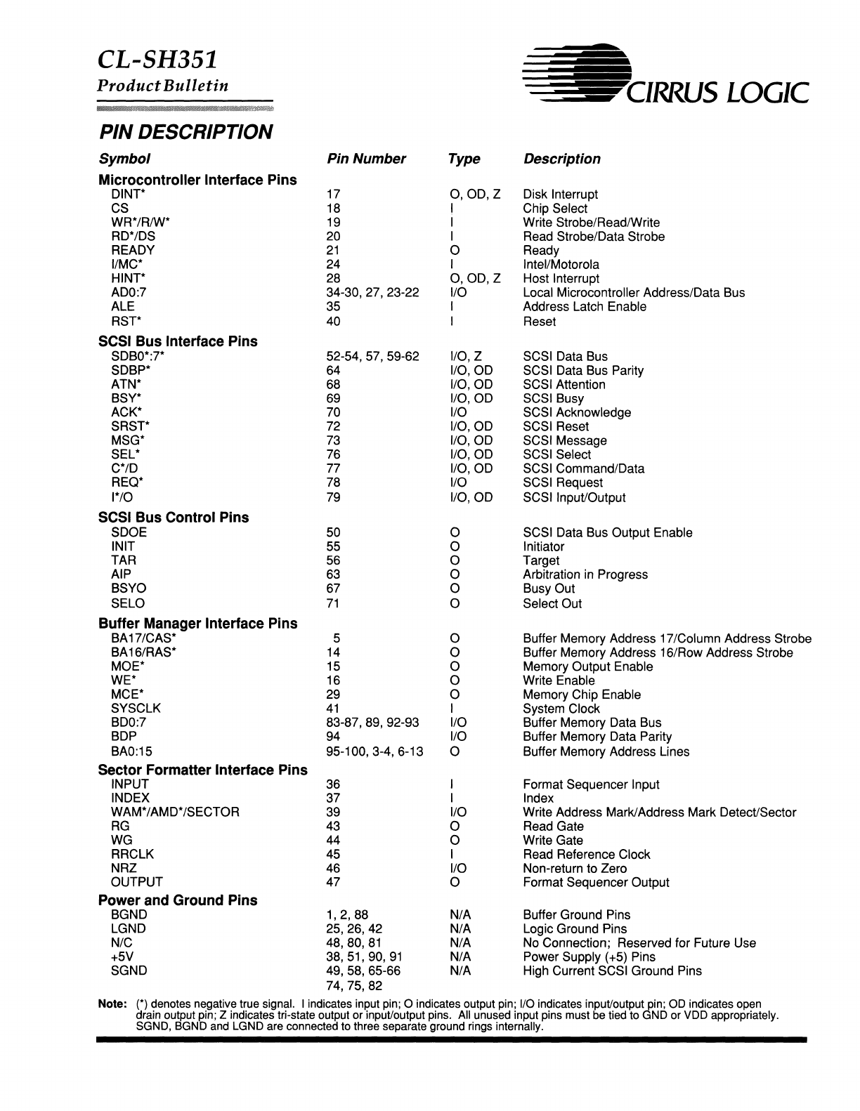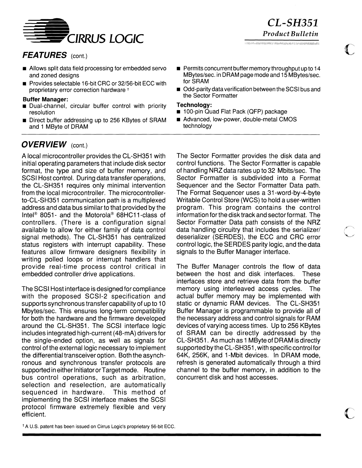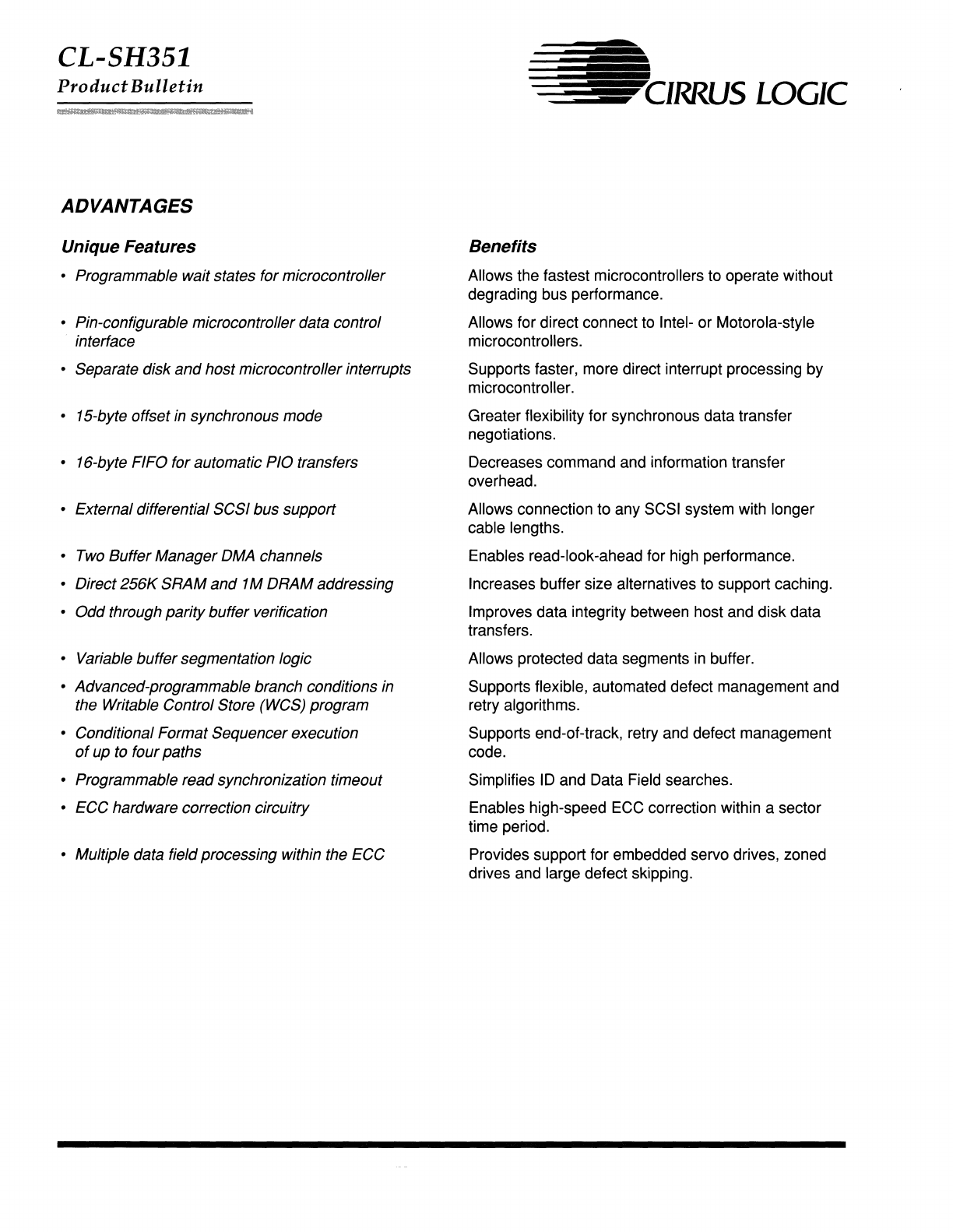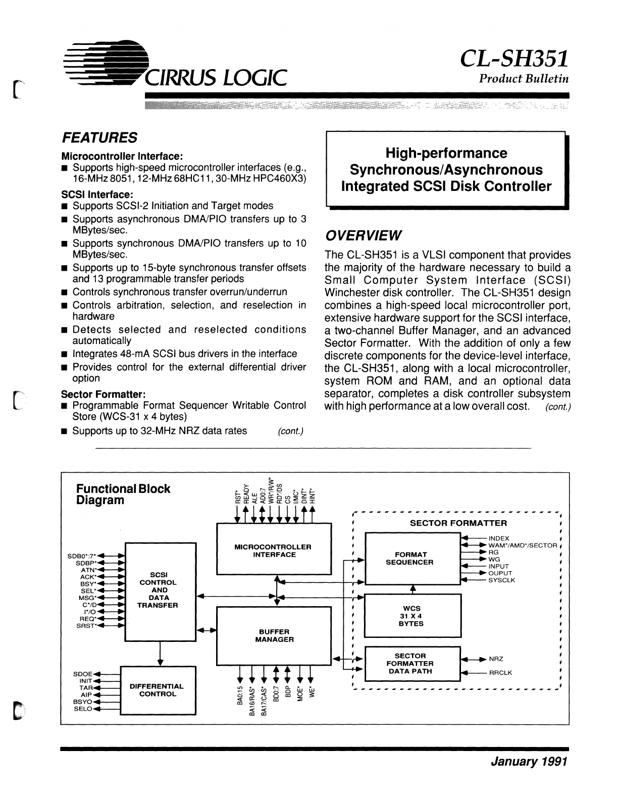 User Manual: CL-SH351_High_Perf_Sync_Async_Integrated_SCSI_Disk_Ctlr_Product_Bulletin_Jan91