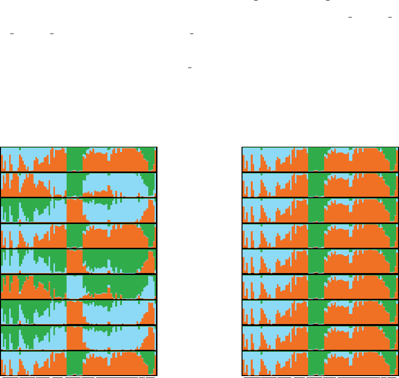 coefficients as in A, permuted using CLUMPP so that cluster labels match across runs.