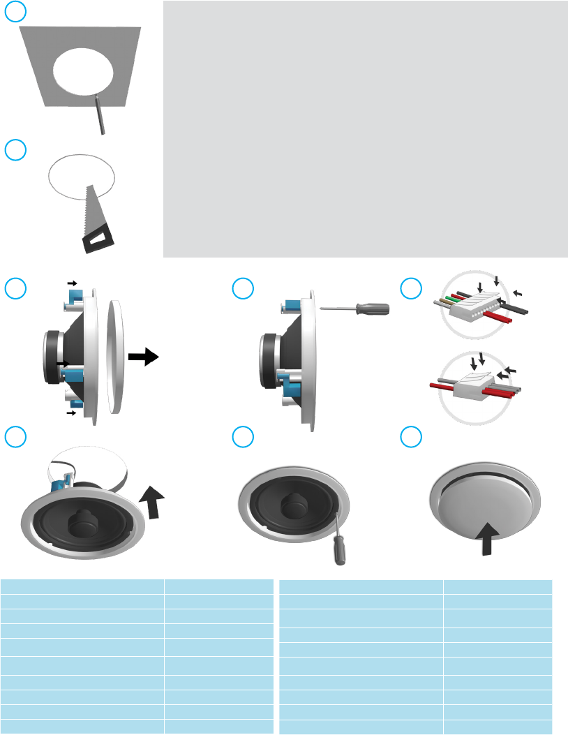 (5) Connect the speaker wires and (6) insert the speaker in the precut speaker opening.