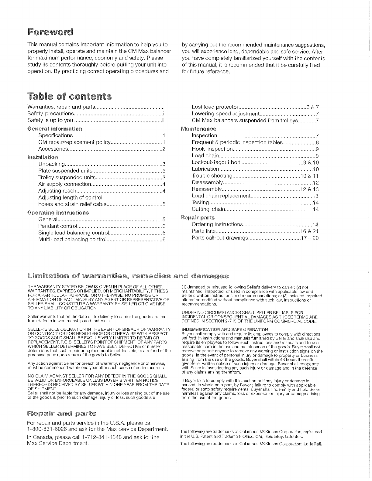 User Manual: CM-Max-Air-Tool-Balancer-Manual Igor's of metalworking and electrical manuals