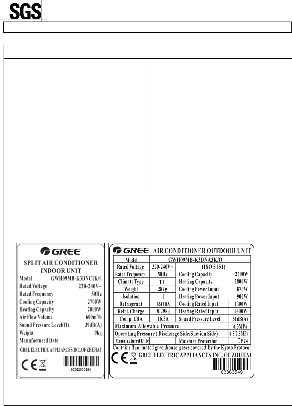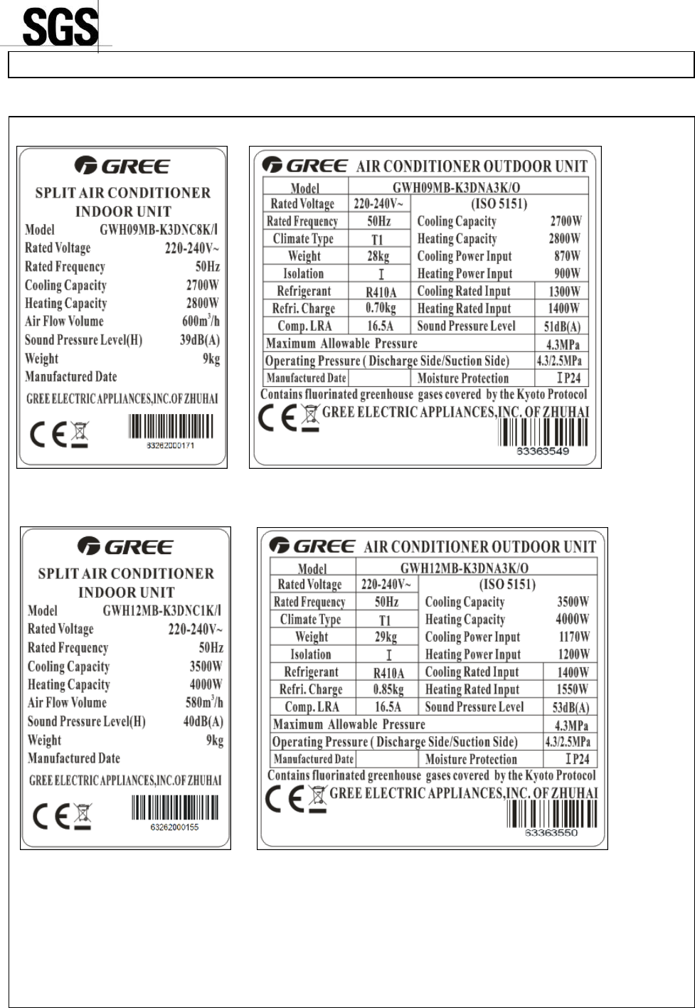 Model/Type reference ........................ : GWH09MB-K3DNA3K (Indoor unit: GWH09MB-K3DNA3K/I, Outdoor