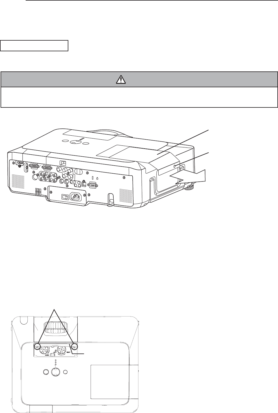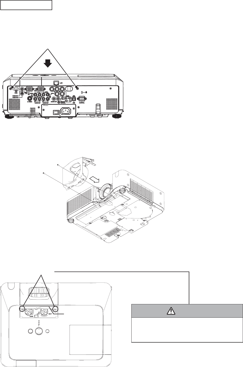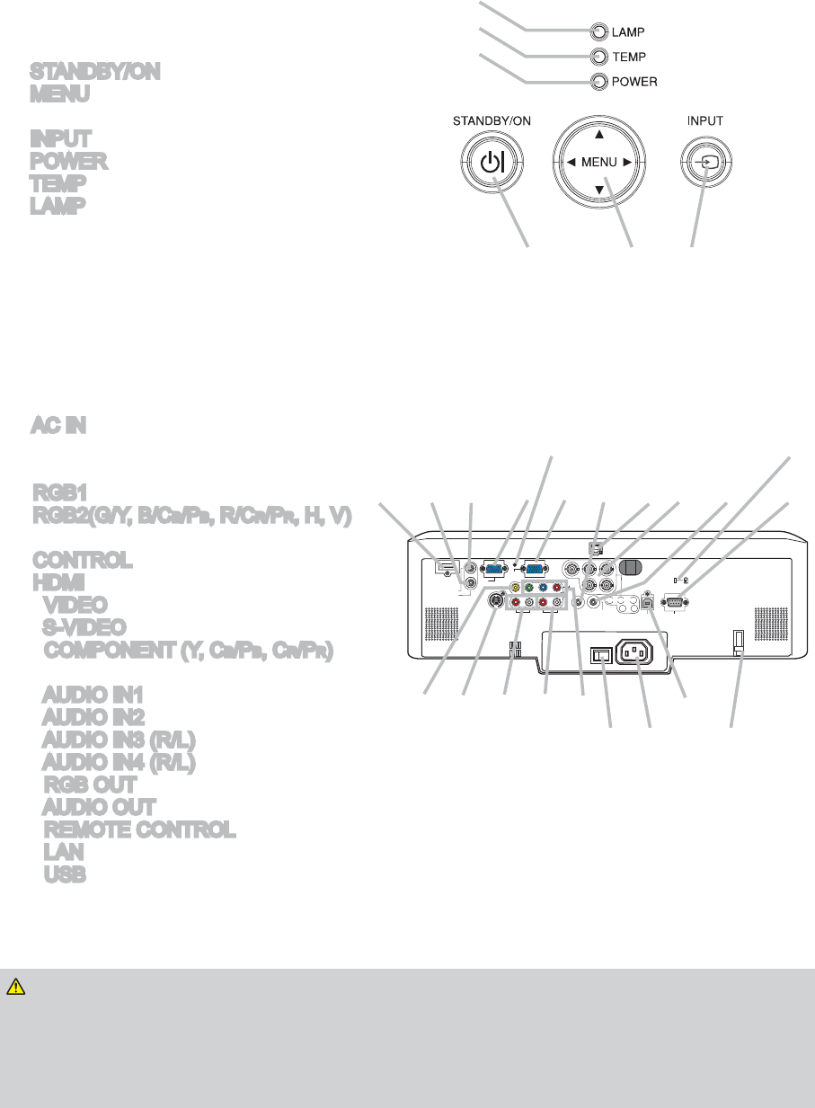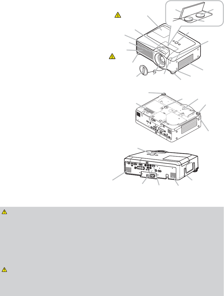 3. This projector is provided with a high voltage circuit for the lamp. Do not touch the electric parts of