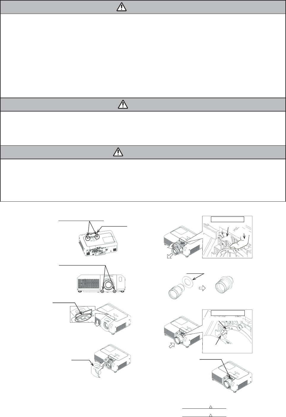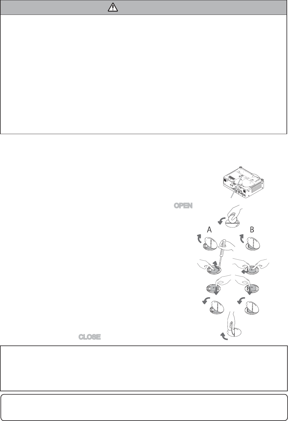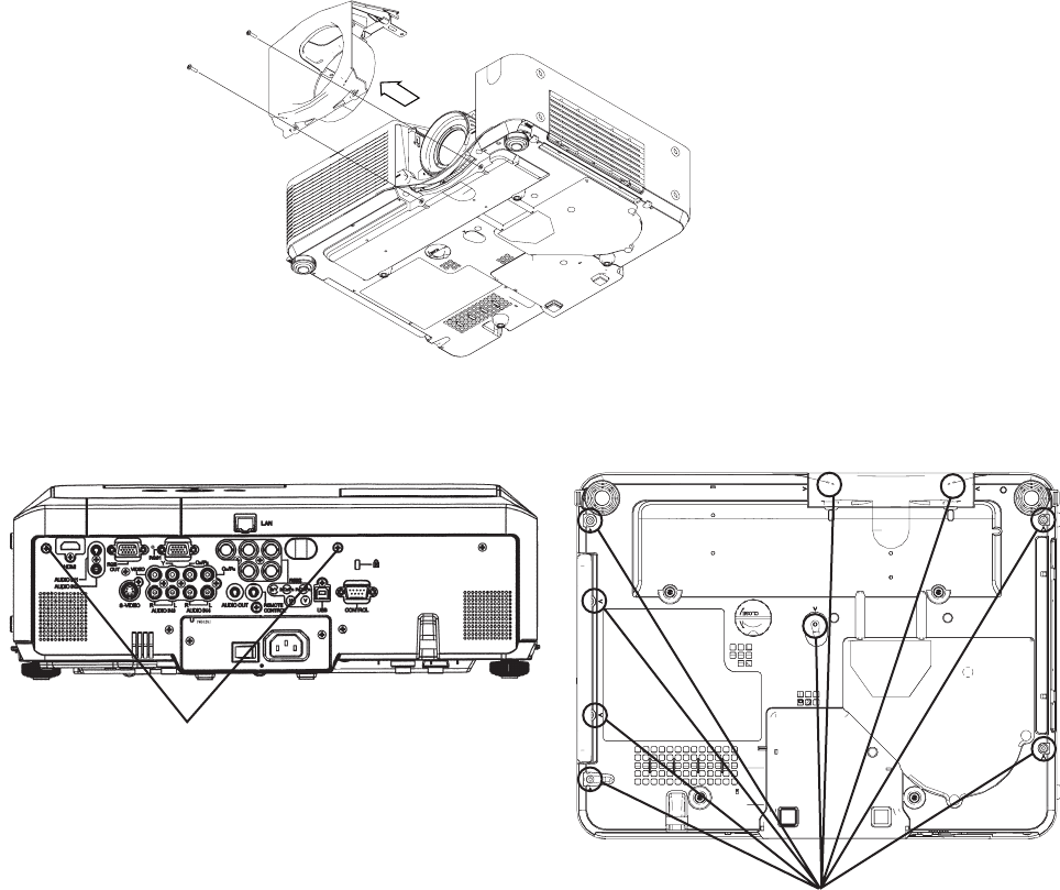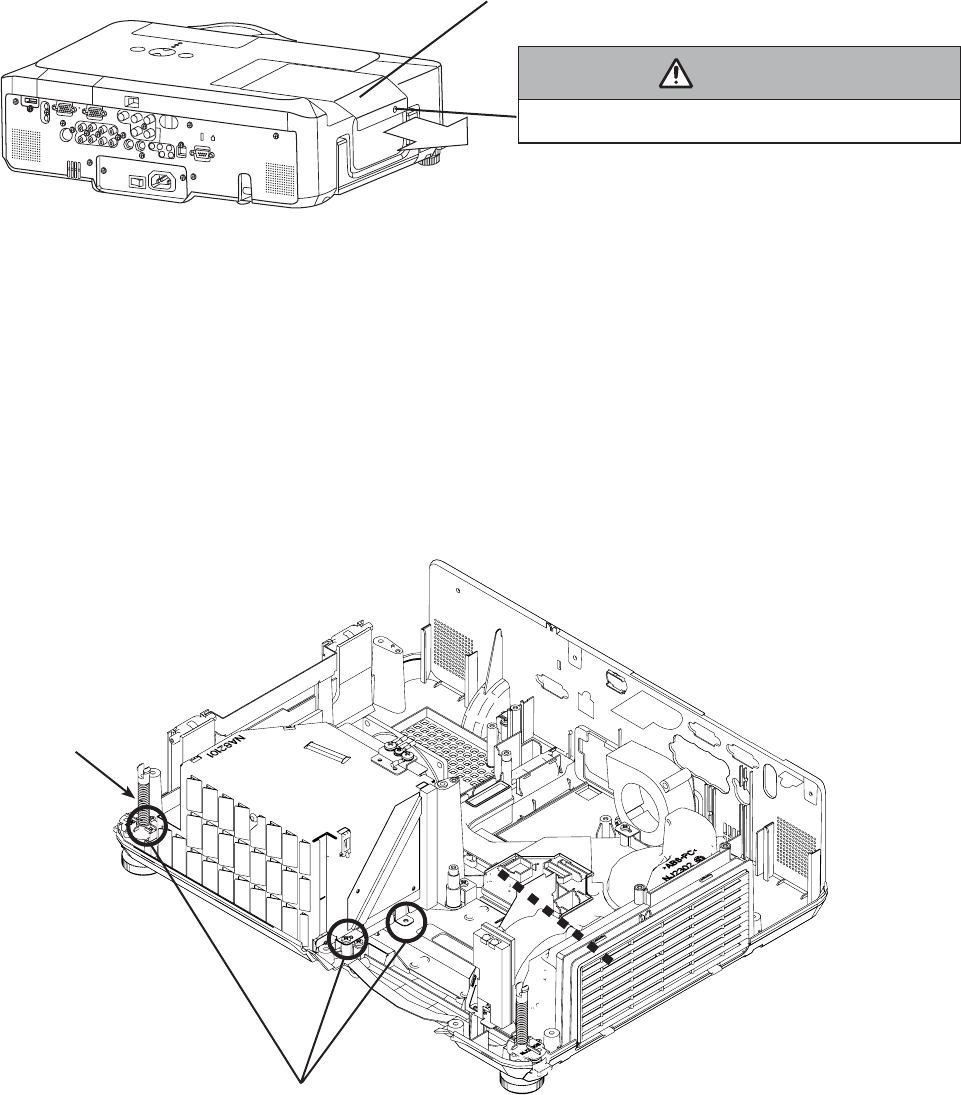 3. This projector is provided with a high voltage circuit for the lamp. Do not touch the electric parts of