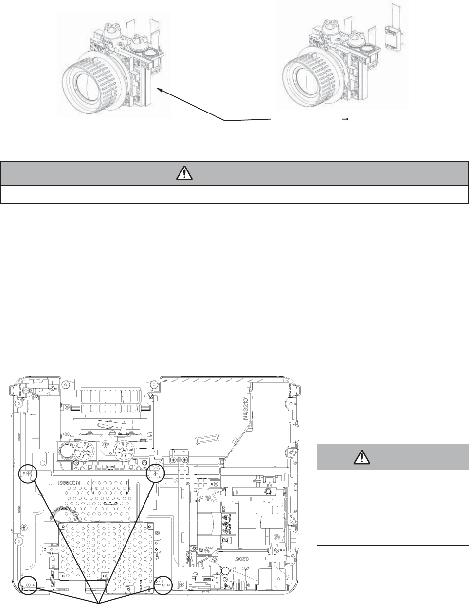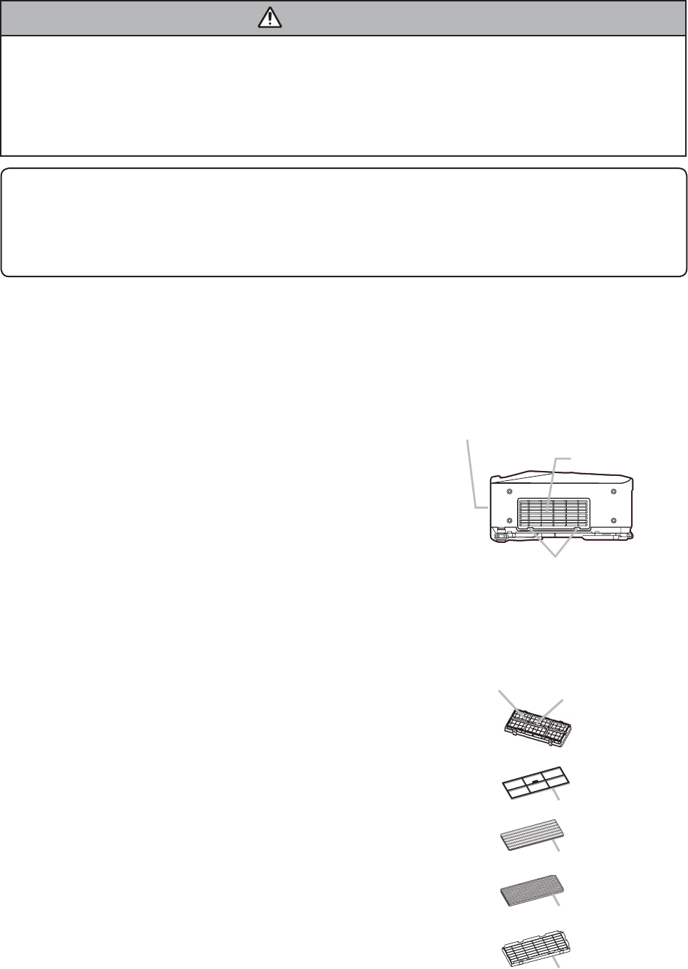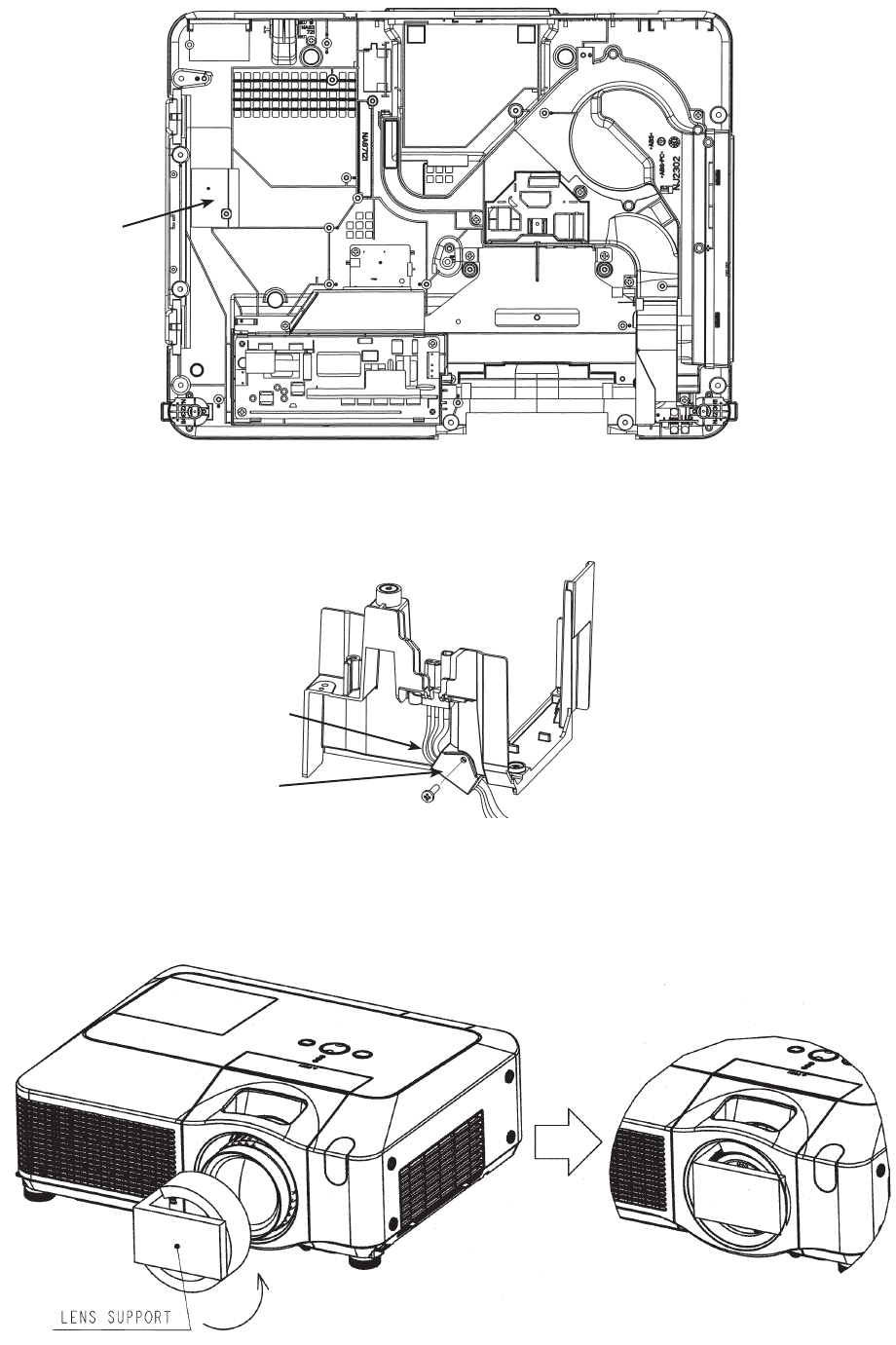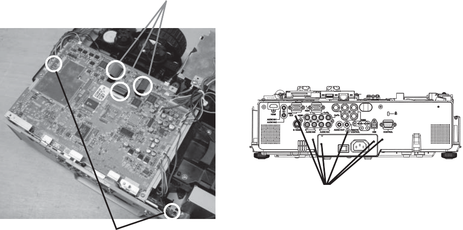 3. This projector is provided with a high voltage circuit for the lamp. Do not touch the electric parts of