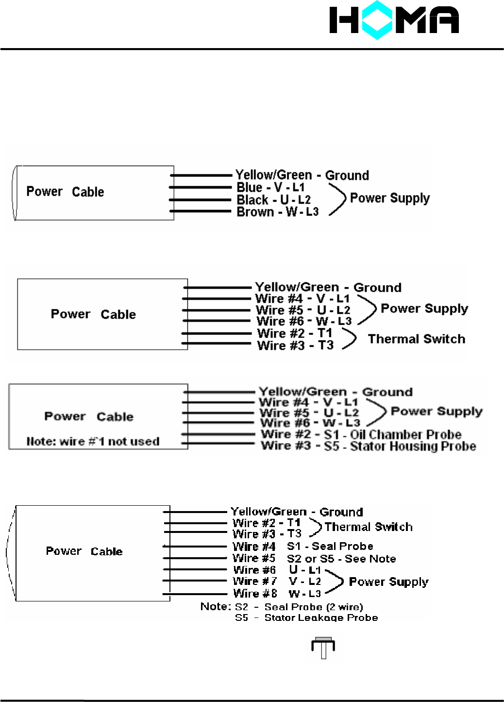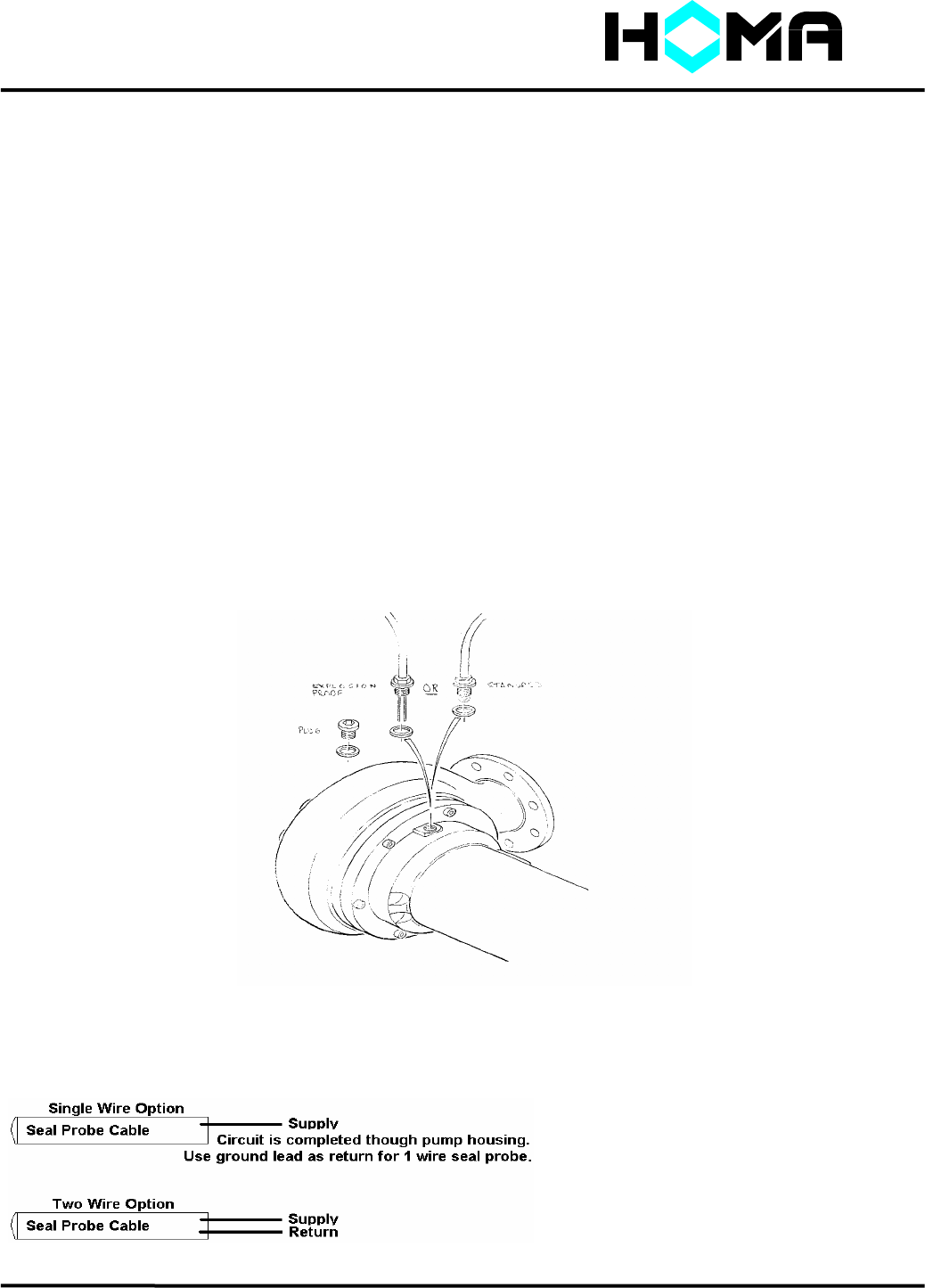 7) Secure seal probe cable to pump body and power cable with tyraps before installing pump.