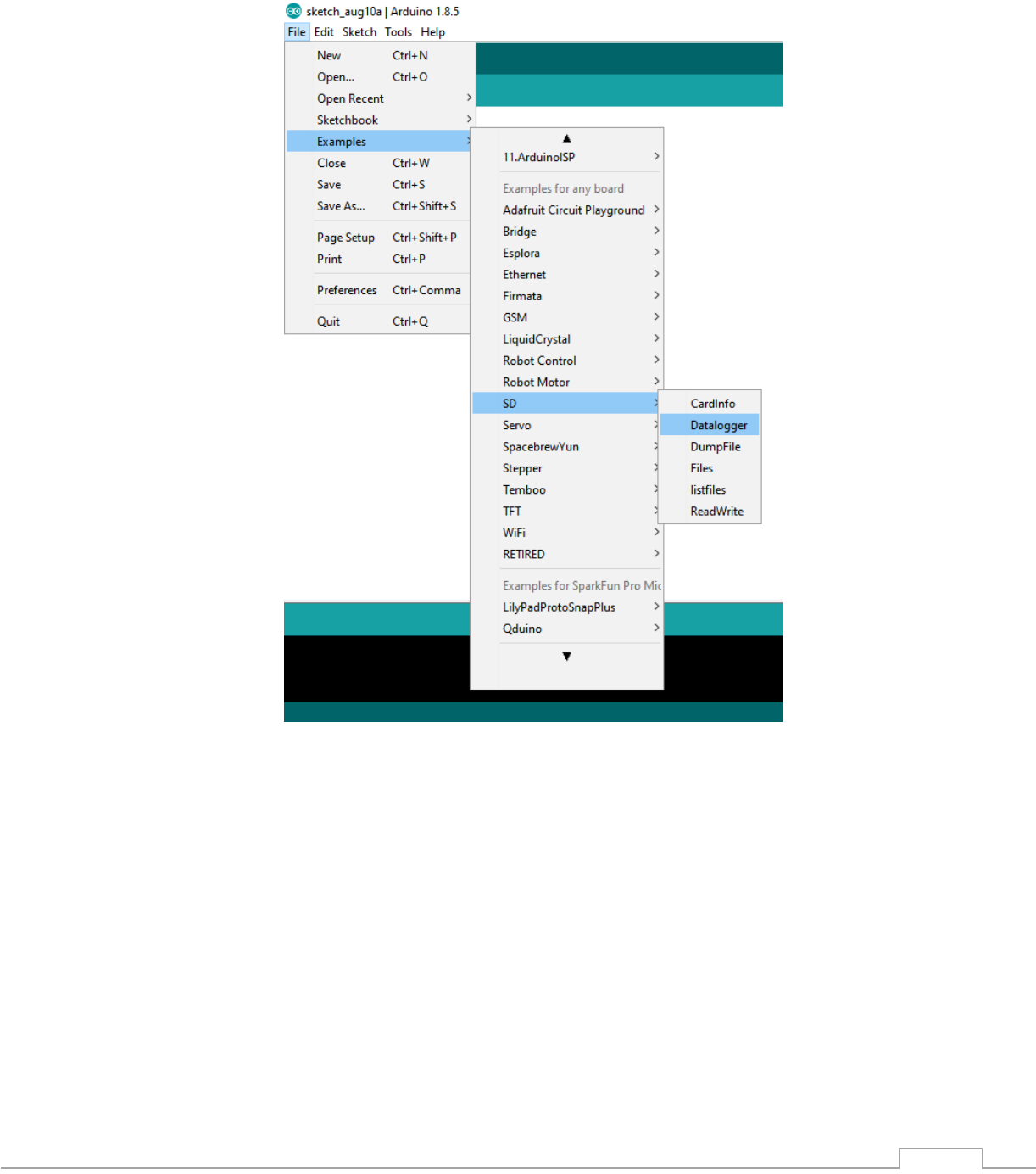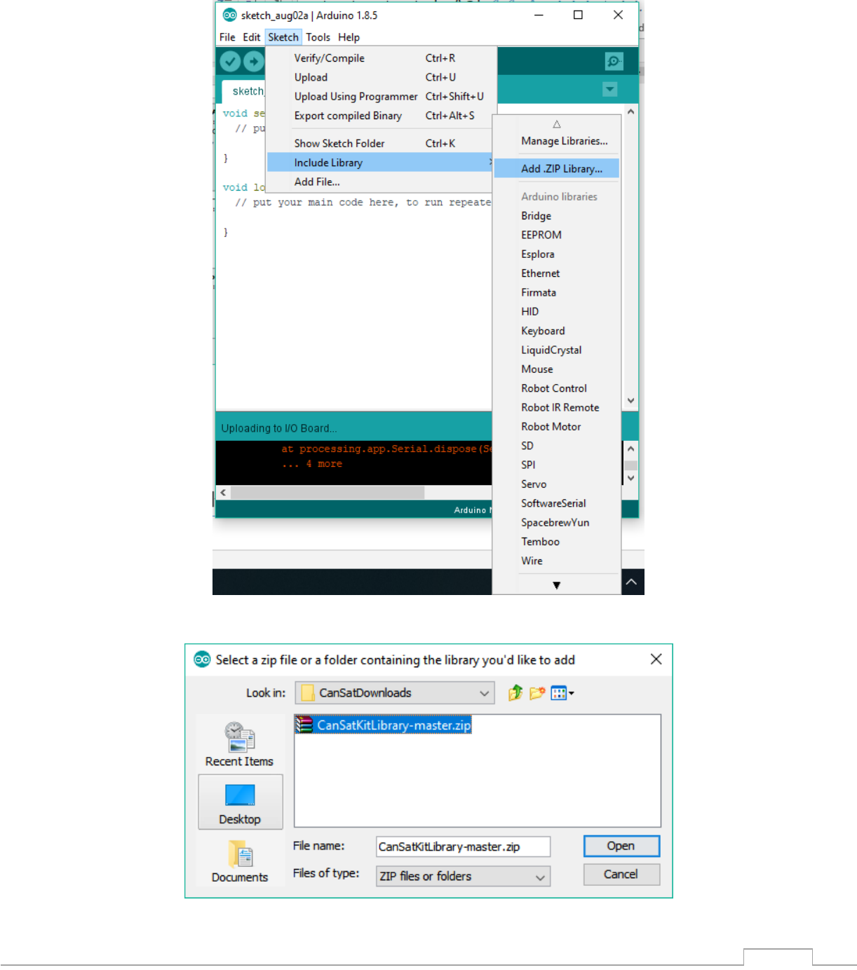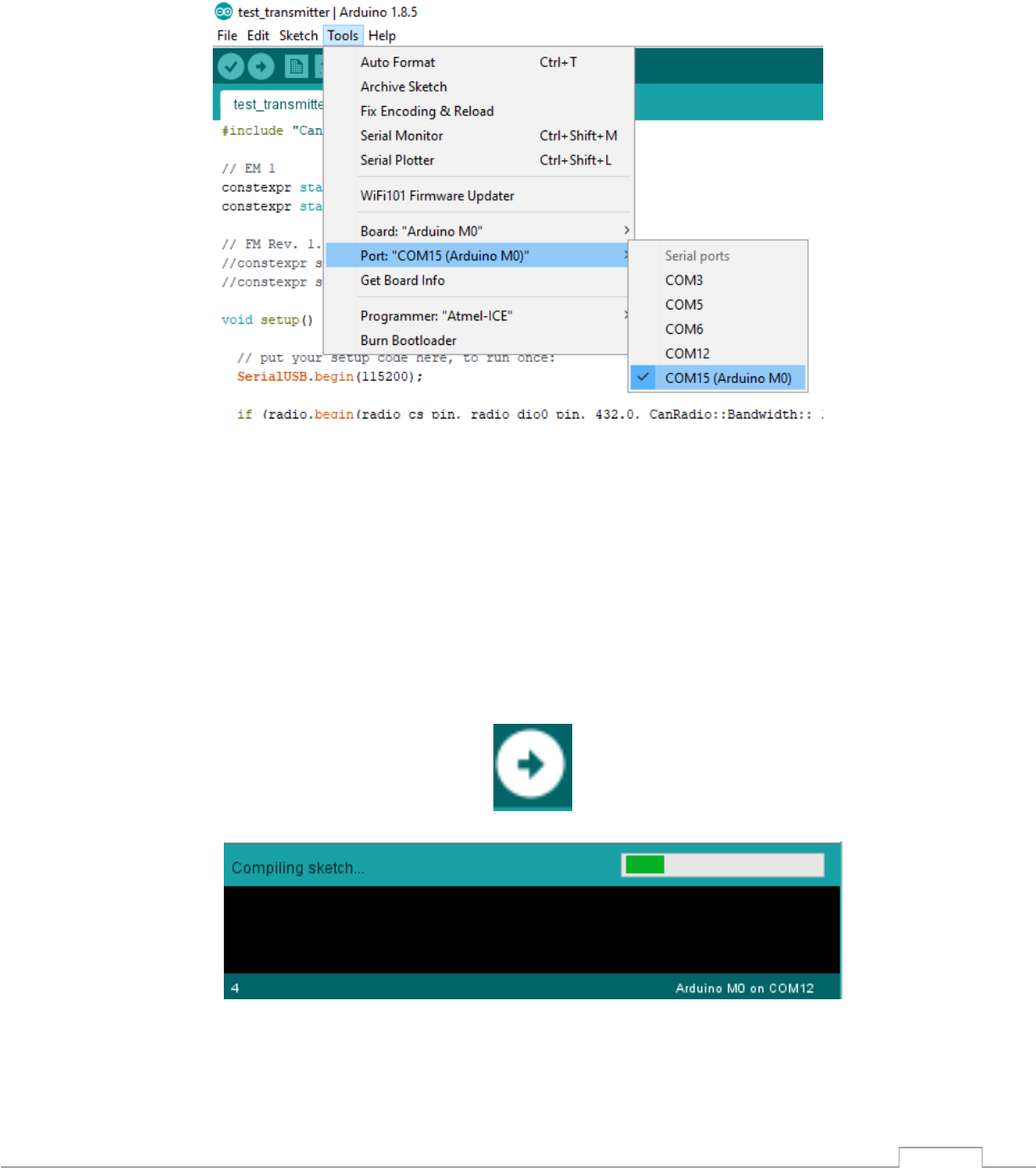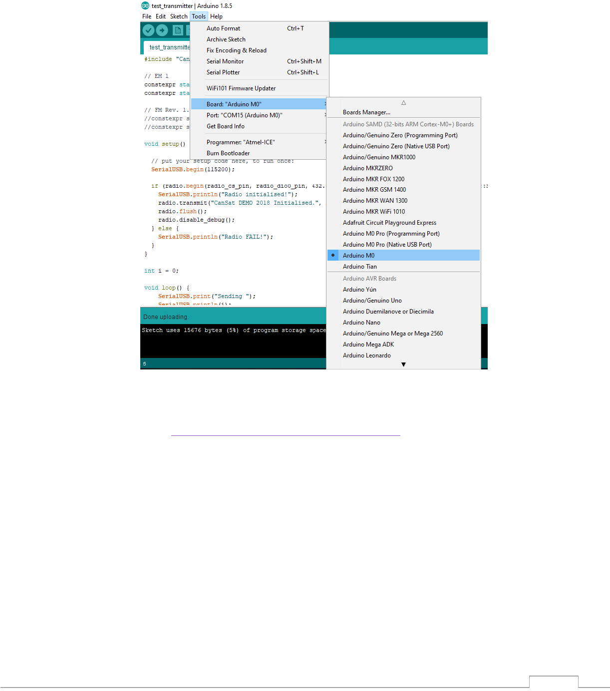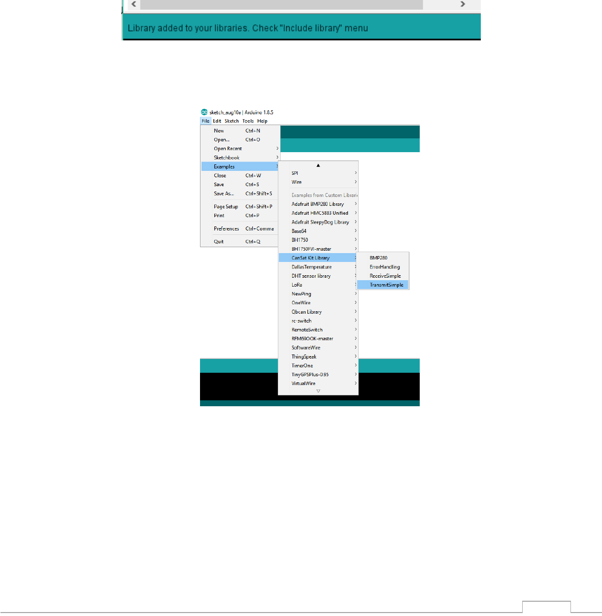 1) Otwórz przykładowy program „File → Examples → CanSatKit →