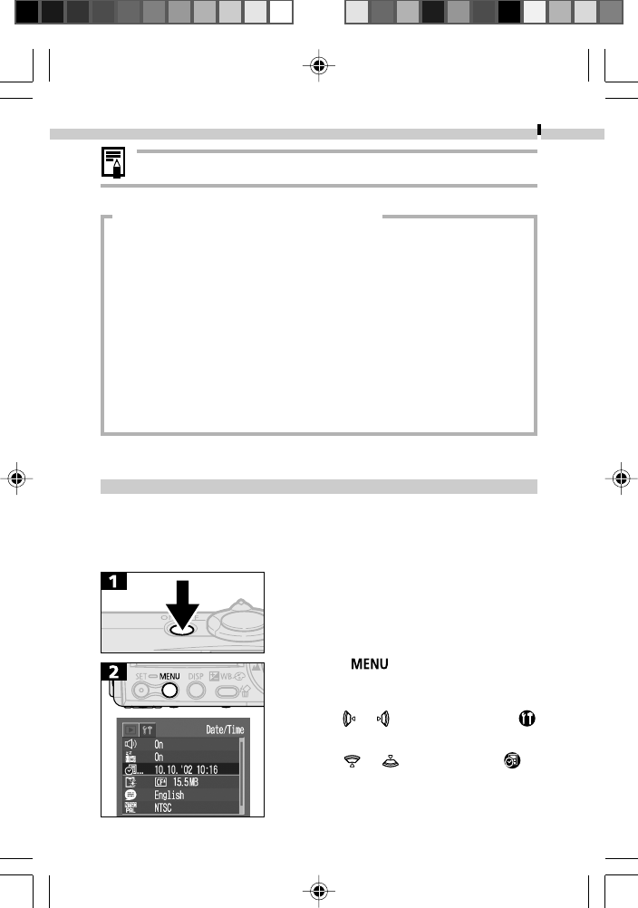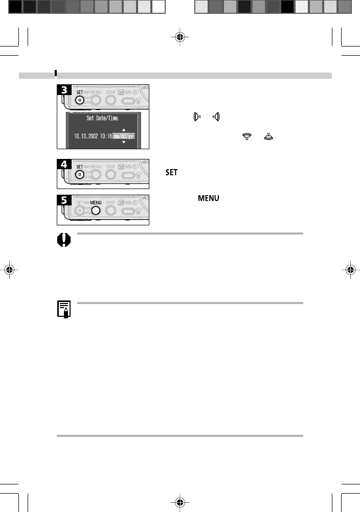 • If the Set Date / Time menu appears when the camera power is turned
