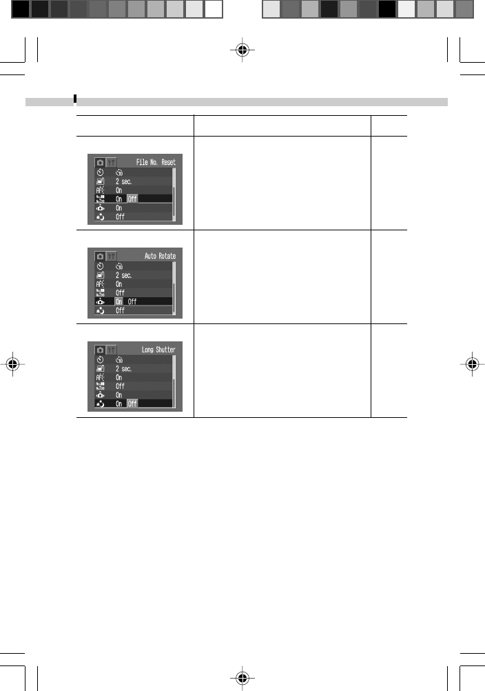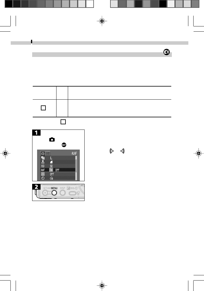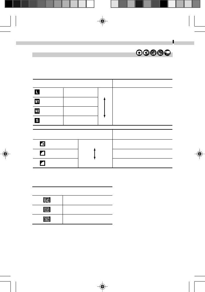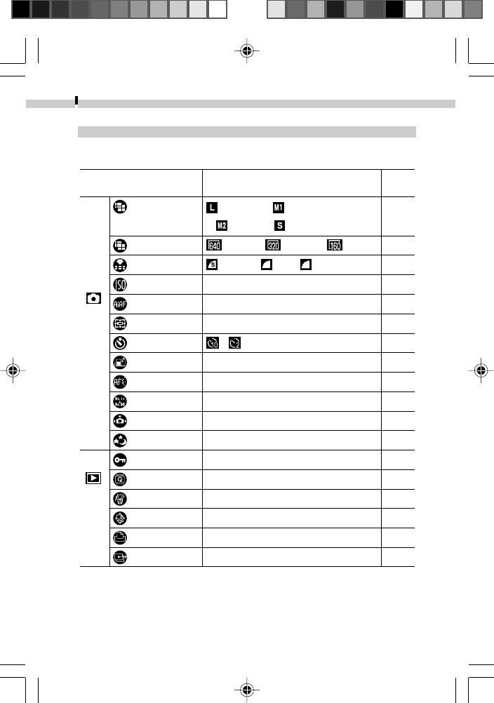 (Shaded Area): Setting is memorized even when the camera power is
