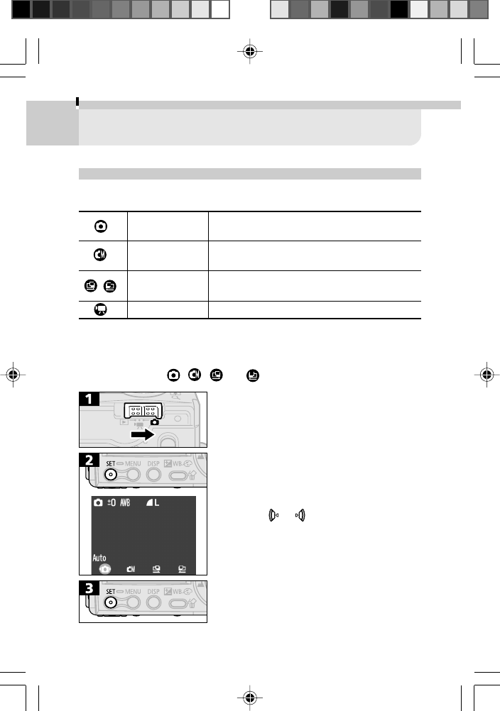 modes. As in the example below, the mode dial should be set to ,