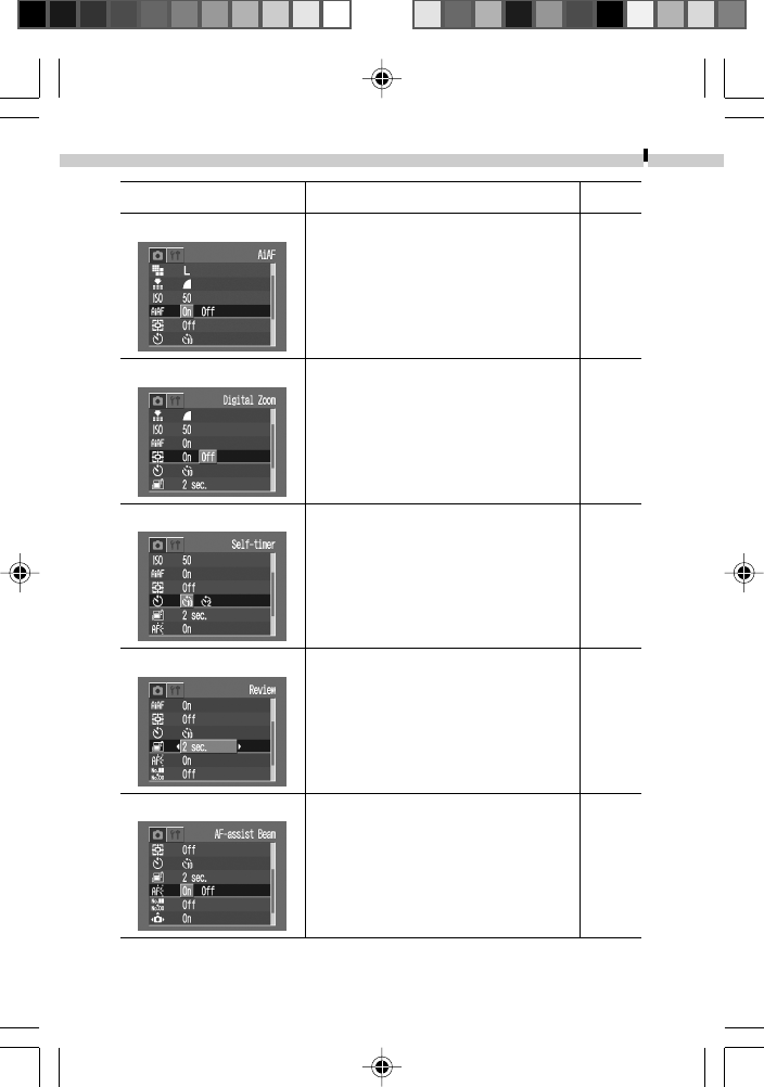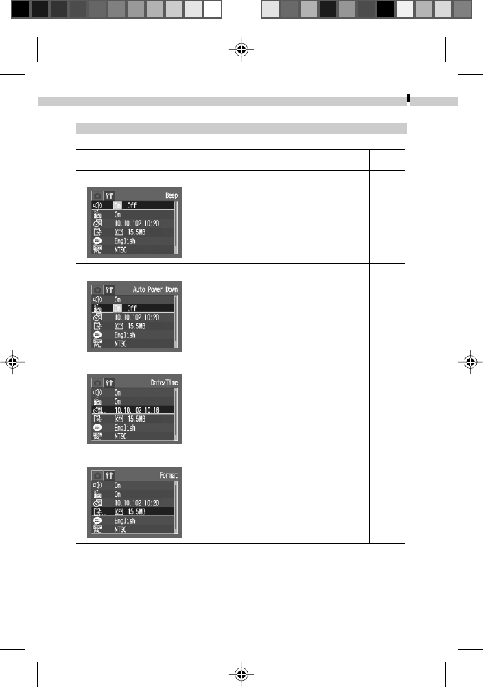 ■What settings are available under each function?