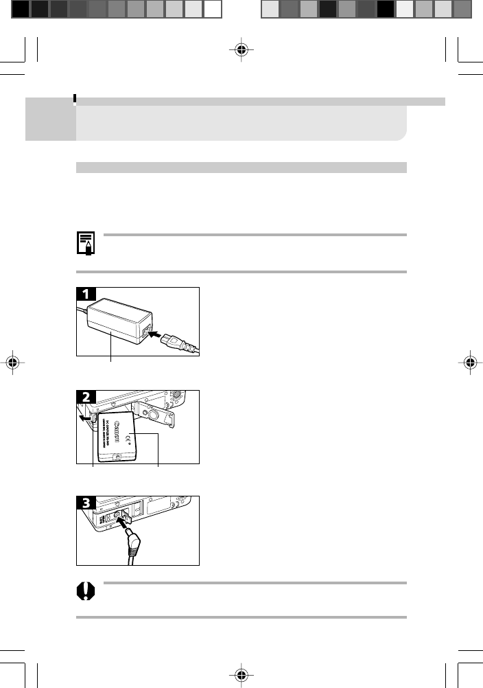 purchase the camera, place a charged battery pack in it or use the AC
