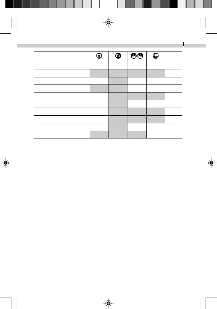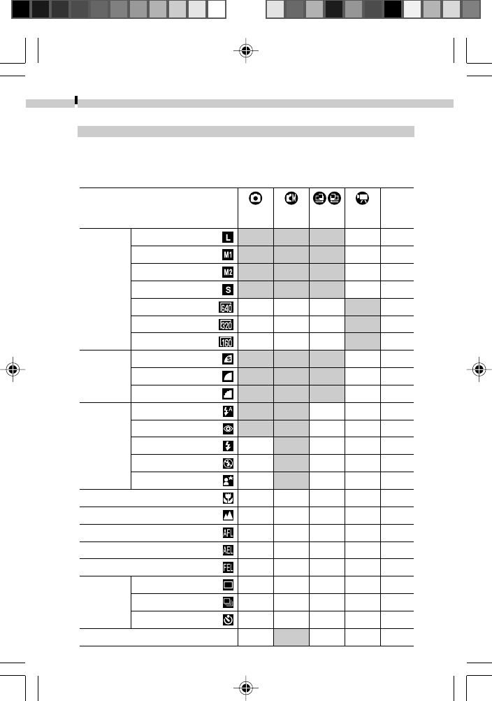 Functions Available in Each Shooting Mode