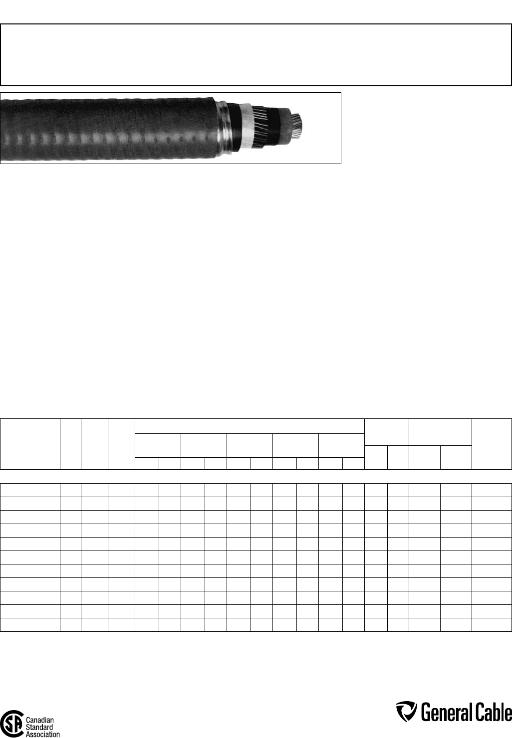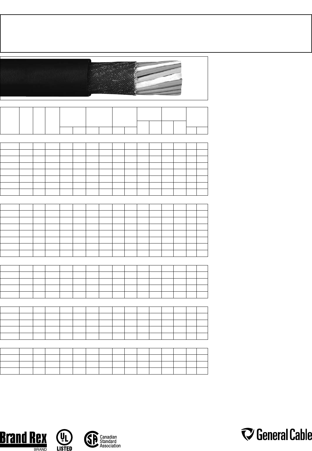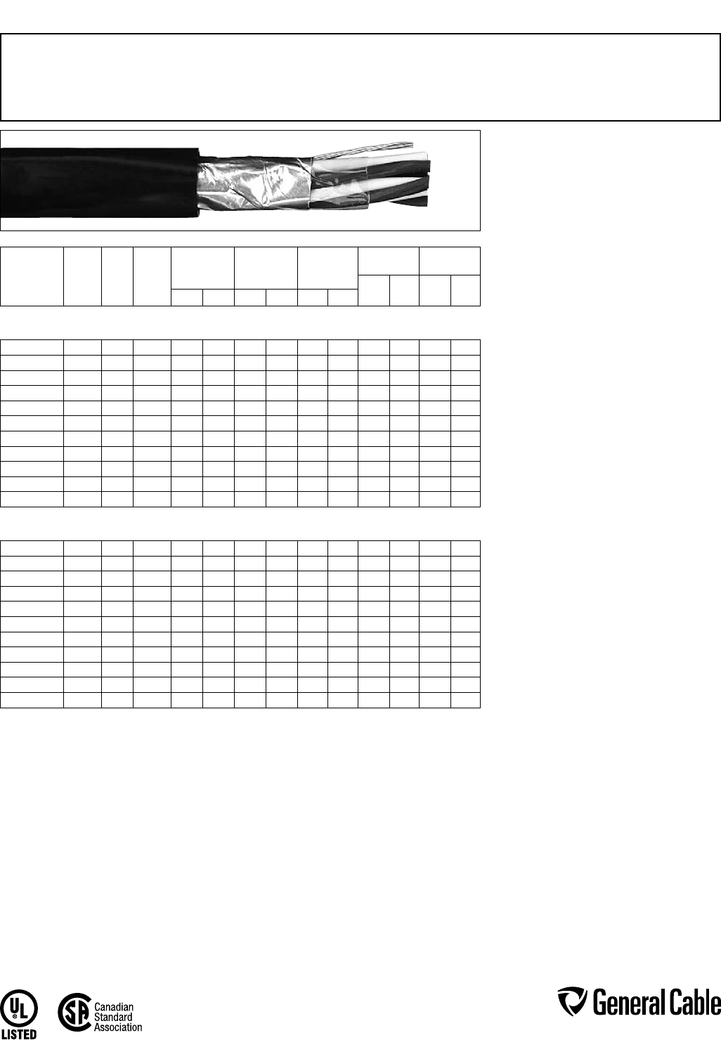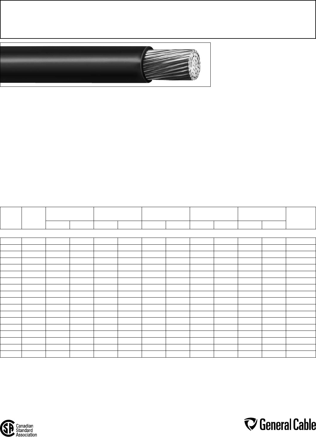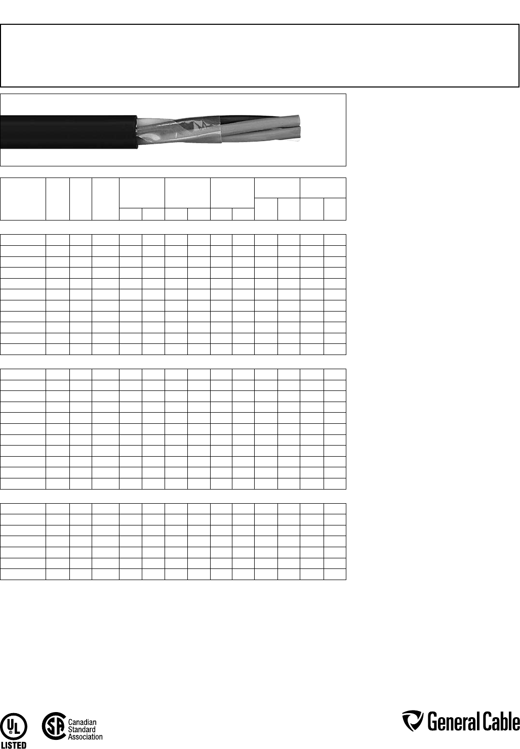 600V, UL Type TC-ER, CSA Type RW90 XLPE, CSA TYPE TC