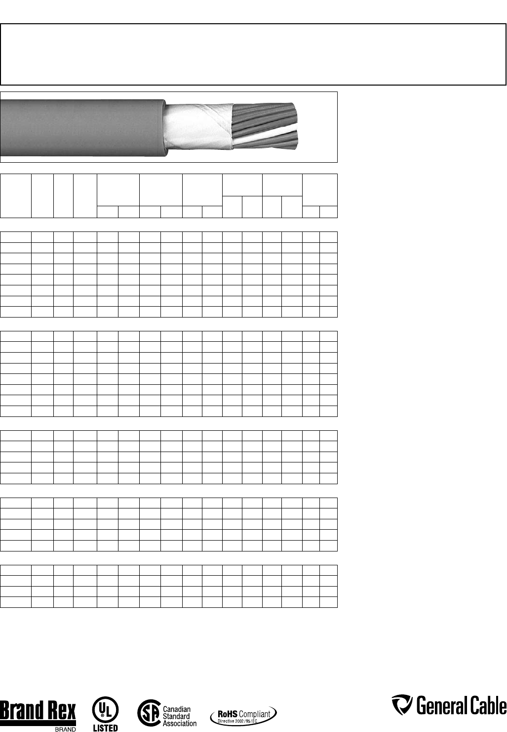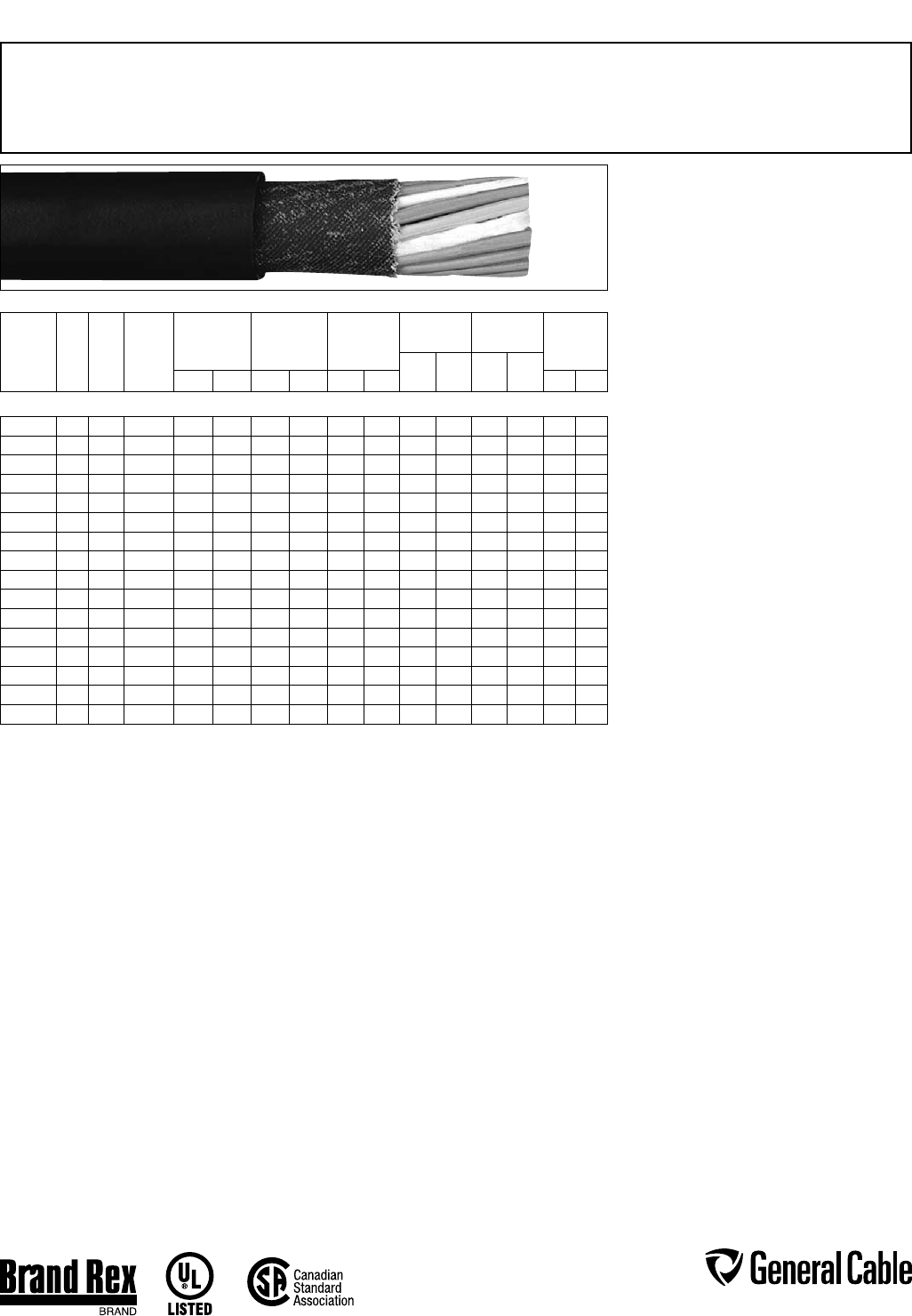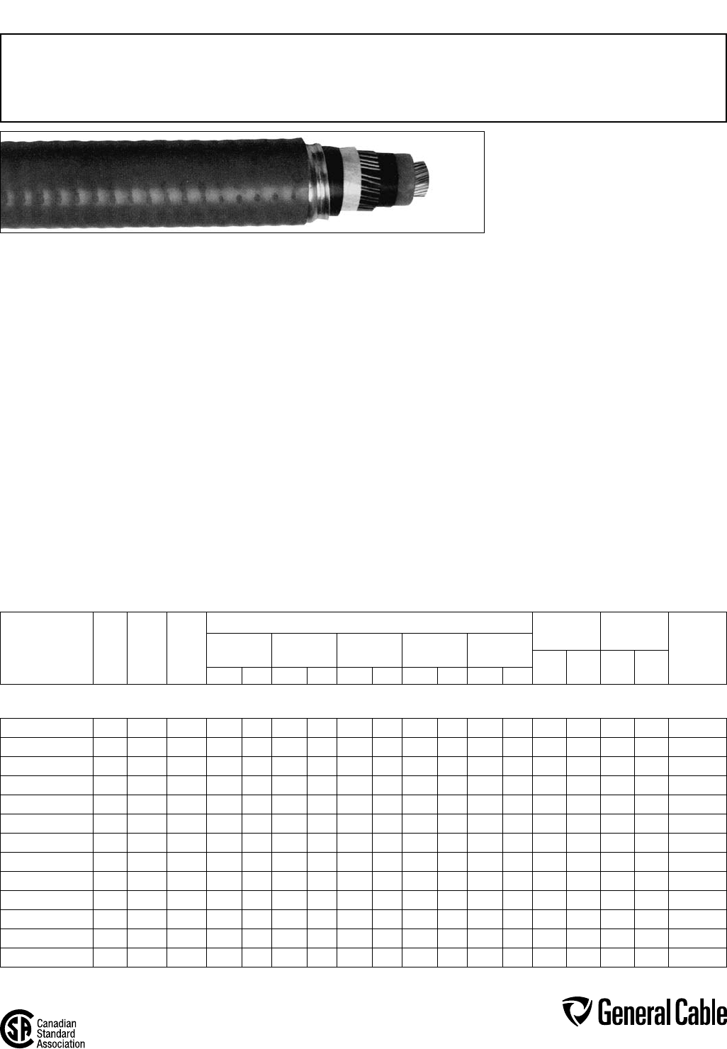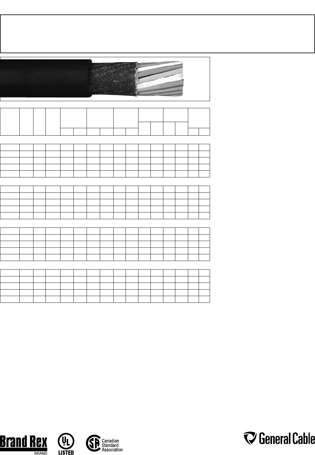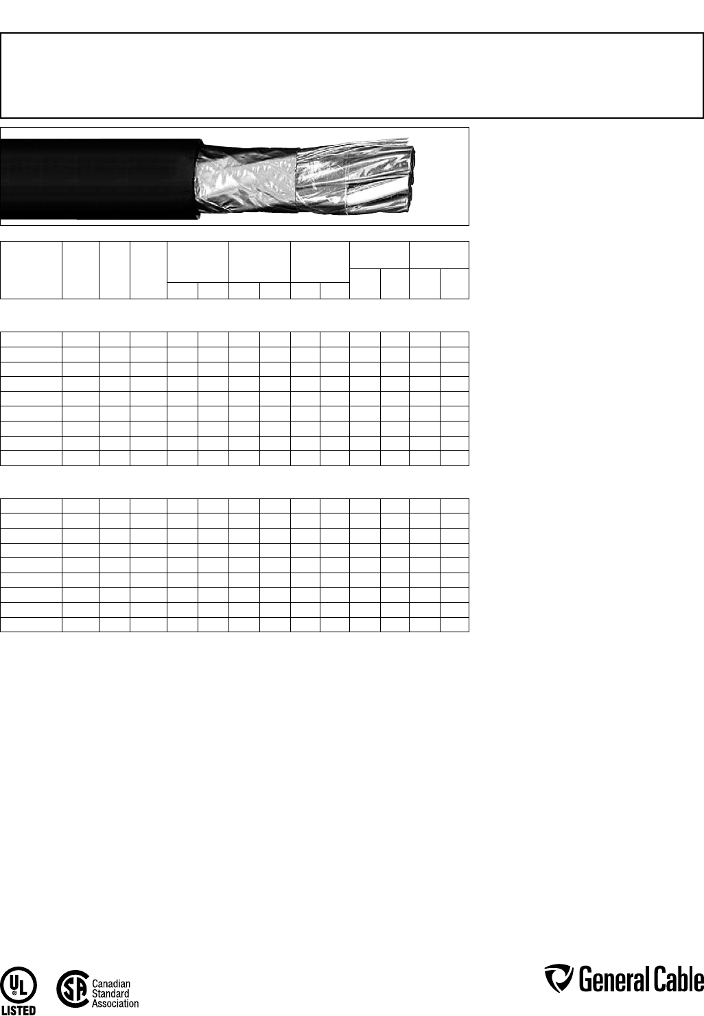 600V, UL Type TC-ER, CSA Type RW90 XLPE, CSA TYPE TC