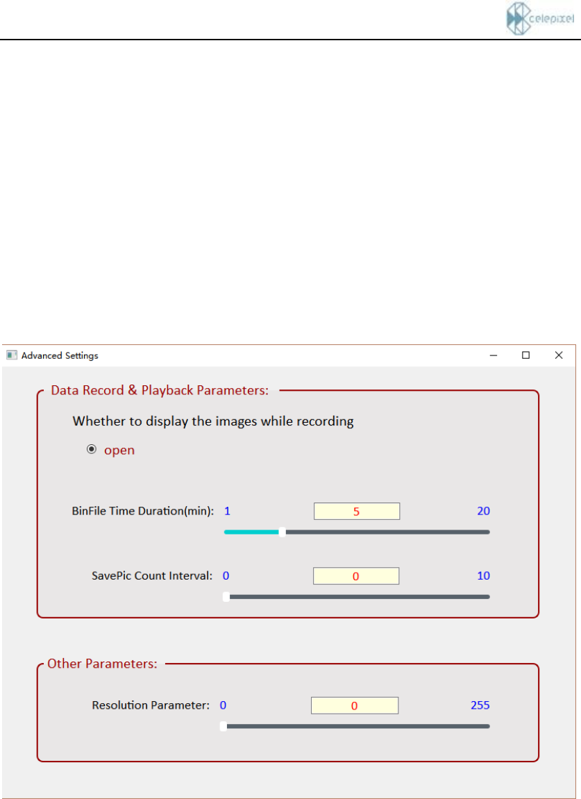 set the “BinFile Time Duration” (in minutes) for recording each Bin file. Once the Bin file reaches